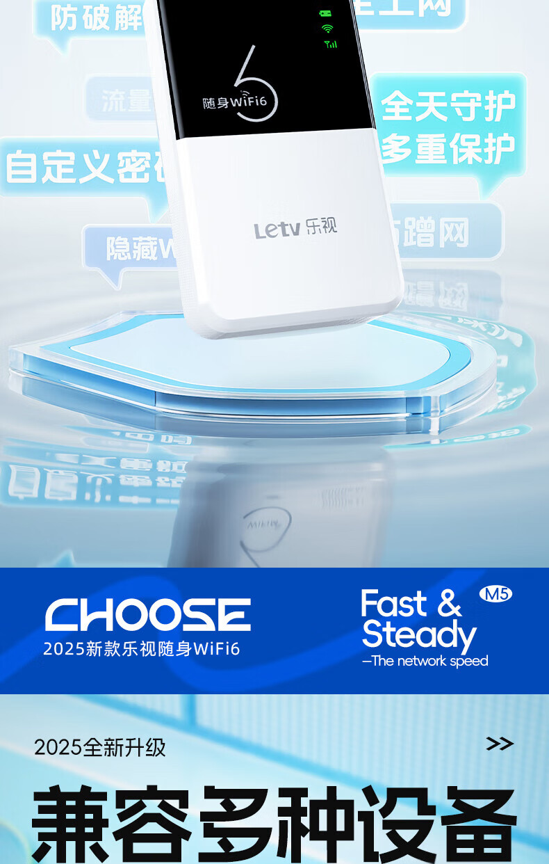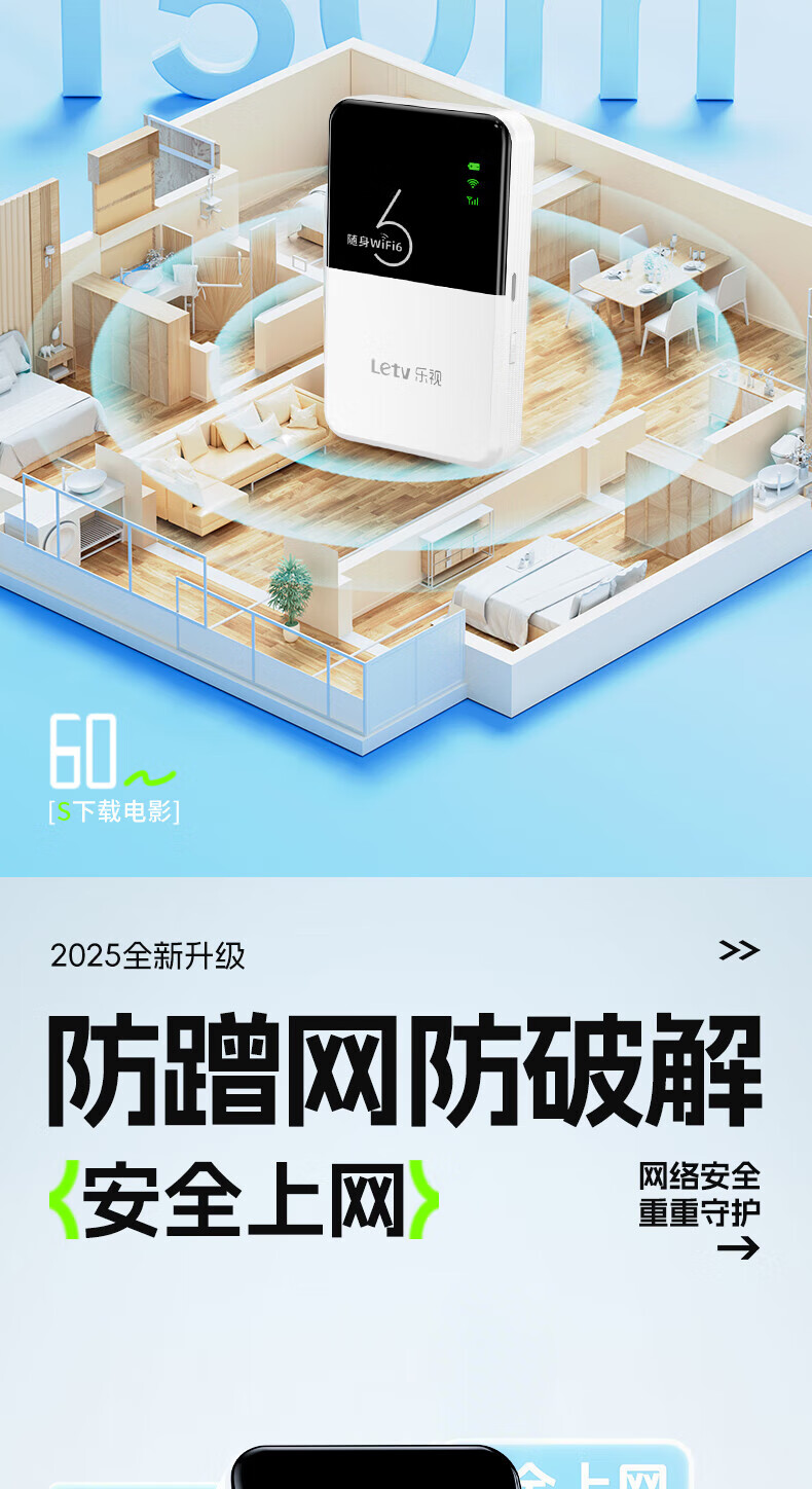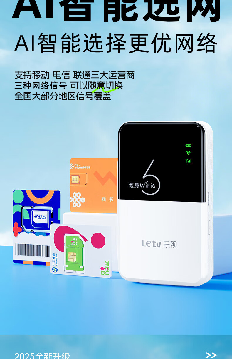 乐视【送免费流量】移动随身wifi6无限流量2025年新款5Ghz三网通高速流量无线网 【增强充电宝款】8000毫安续航72小时