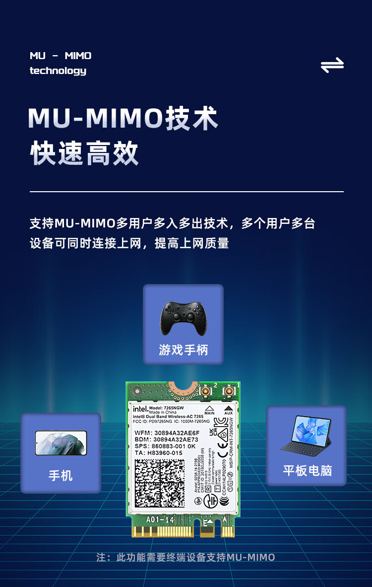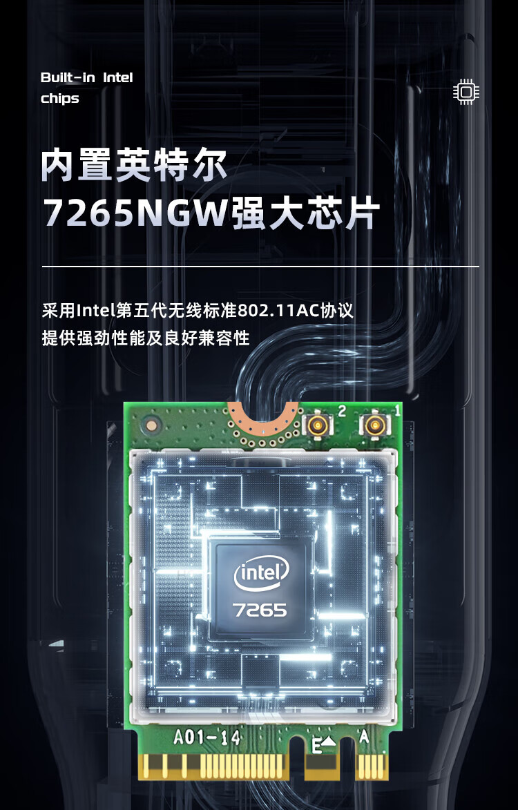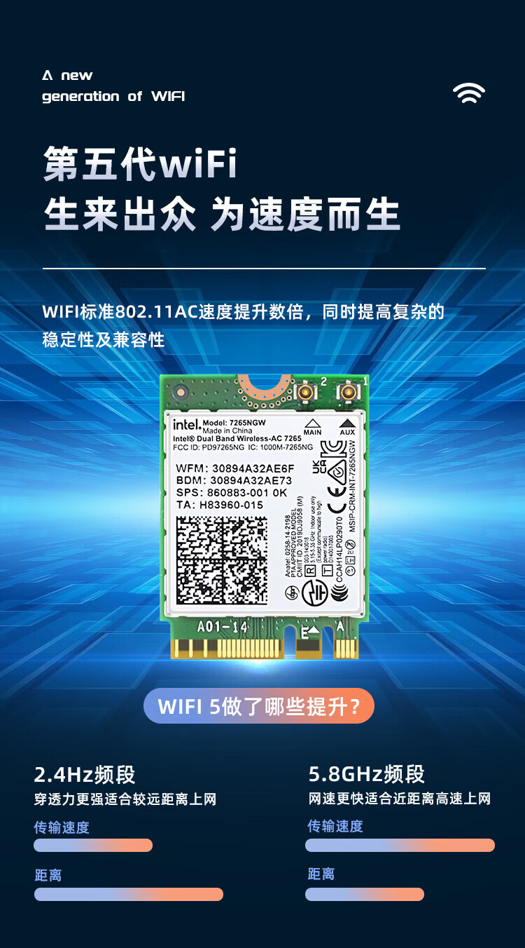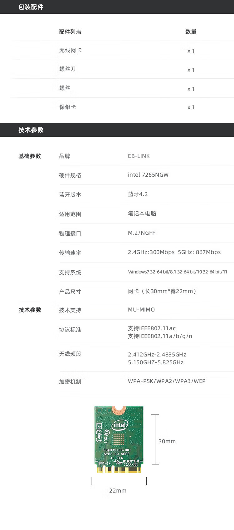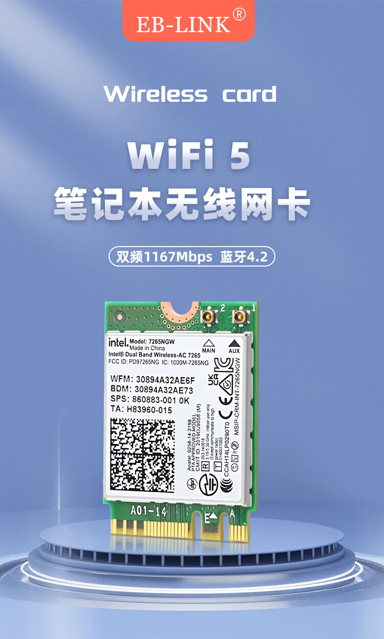 EB-LINK Intel 7265芯片笔记本无线网卡1167M M.2接口WiFi5千兆双频网卡蓝牙4.2电脑内置模块