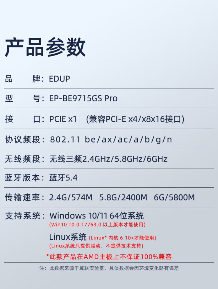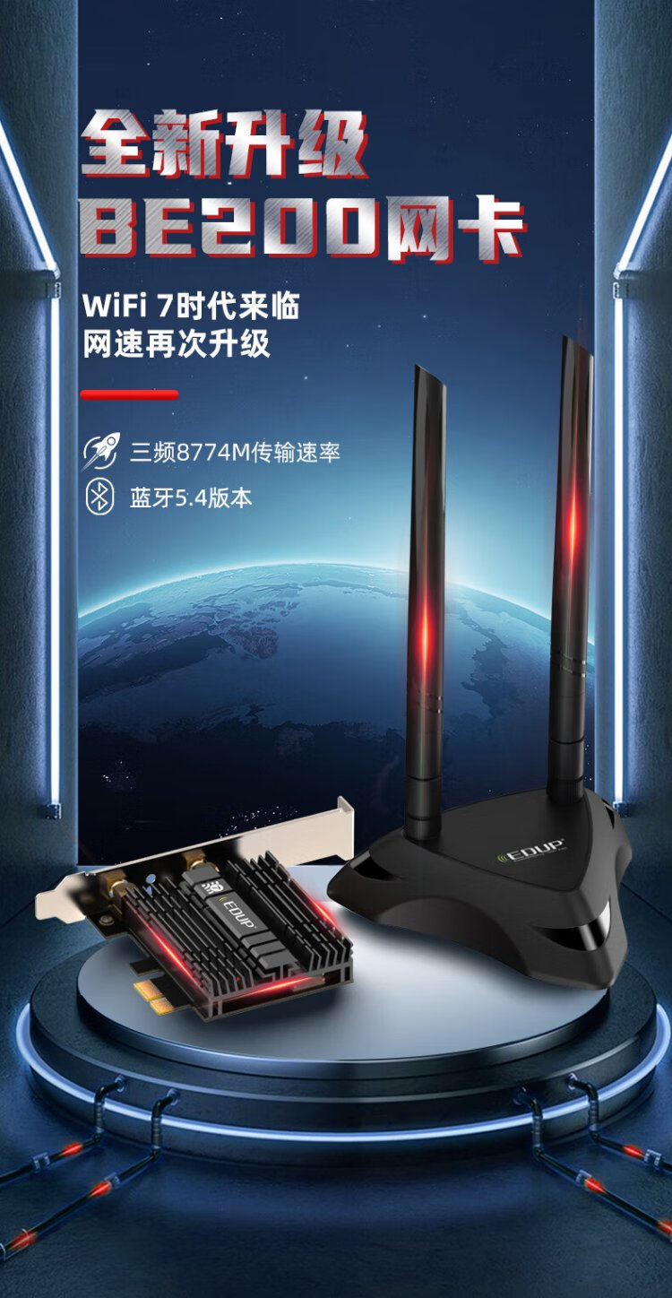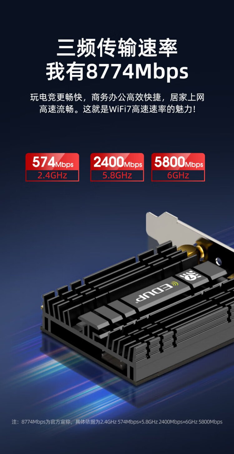翼联(EDUP)WIFI7无线网卡台式机专用wifi接收器BE200内置PCIE网卡蓝牙5.4 支持win10/11系统EP-BE9715GS Pro