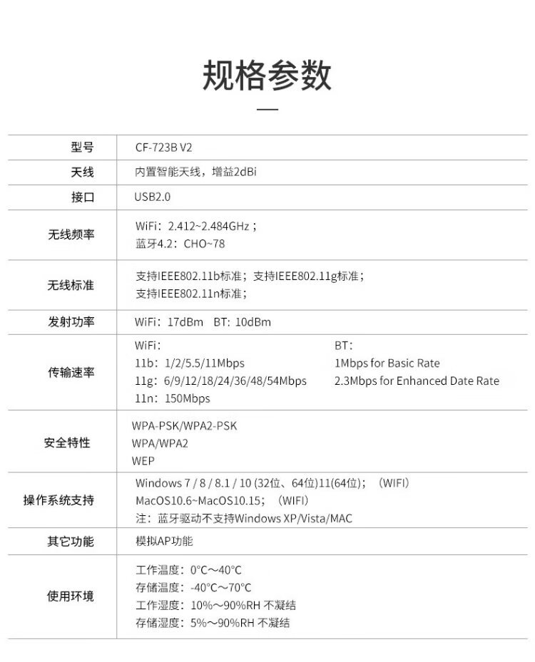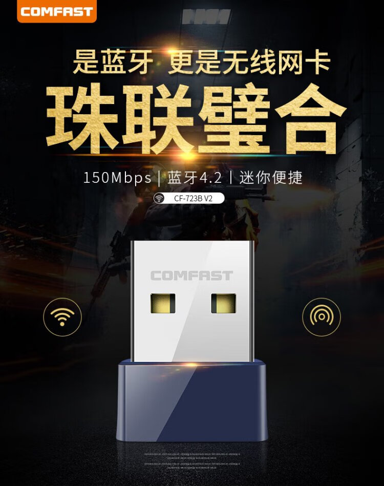 COMFAST CF-723B Mini-USB-Wireless-Netzwerkkarte Desktop-Spezial-Bluetooth-Adapter 4.2 Desktop-Notebook-Empfänger und Sender Two-in-One Mini 150M+4.2 Bluetooth