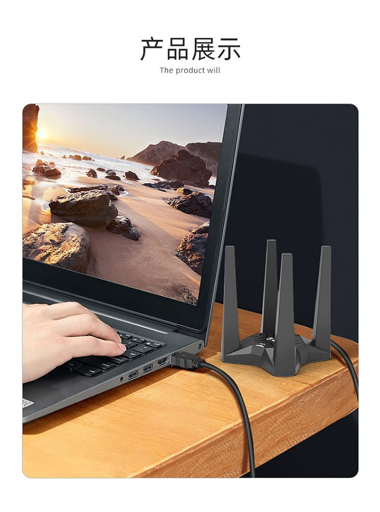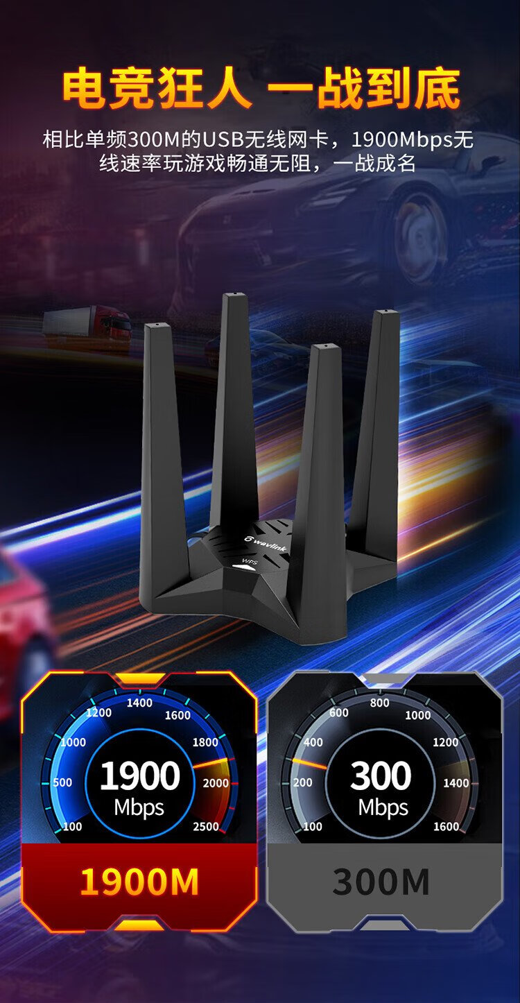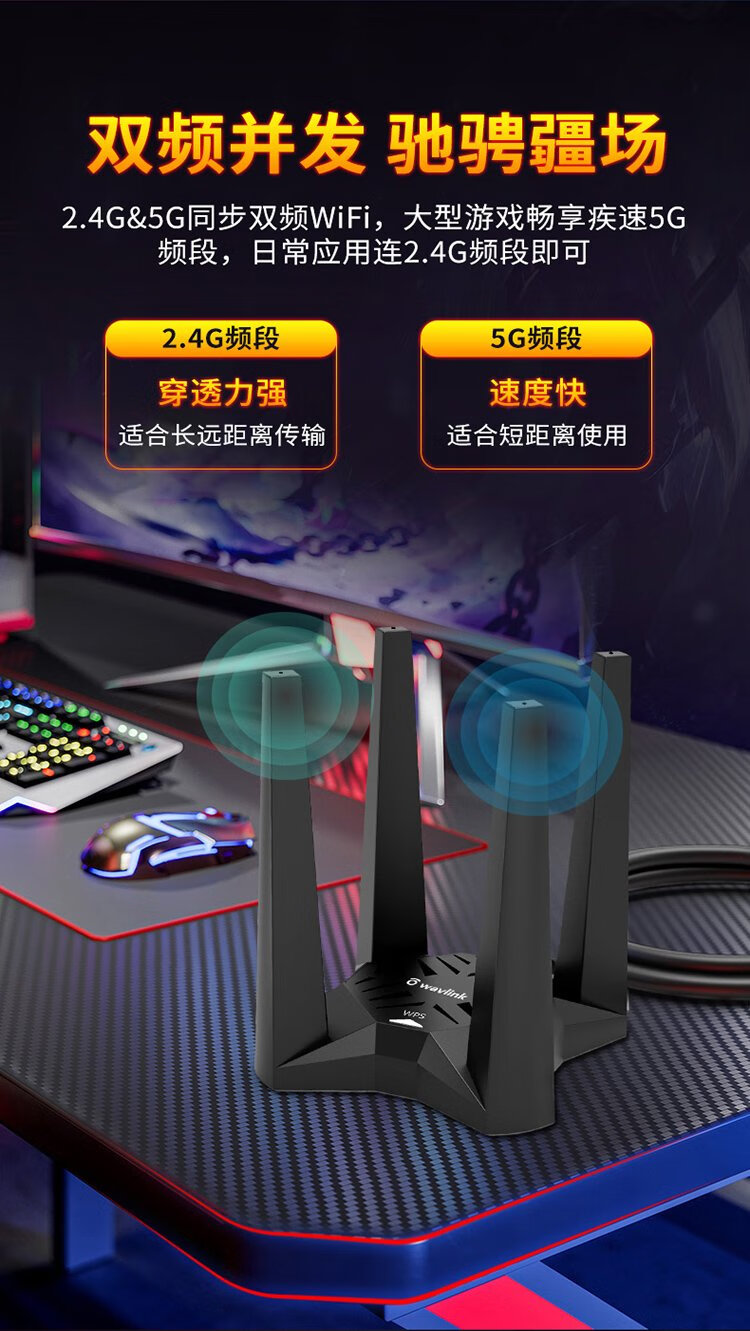睿因(Wavlink) 1900M双频USB无线网卡台式机笔记本无线信号WIFI接收发射器游戏千兆低延迟 1900M电竞外置四天线款