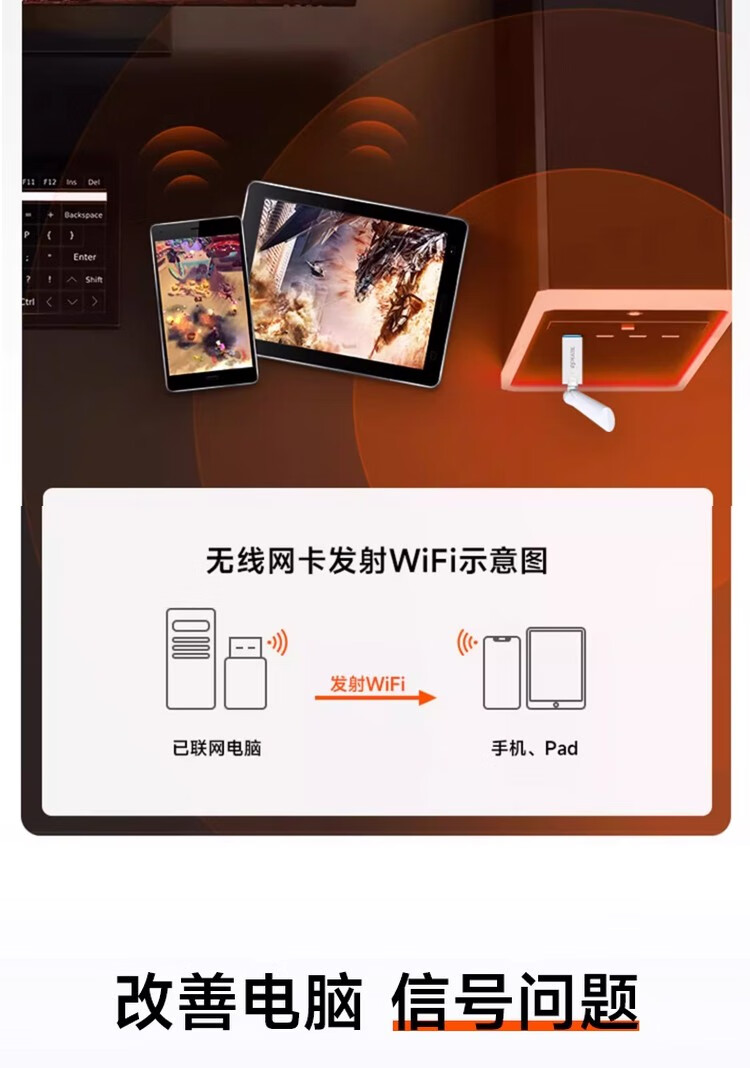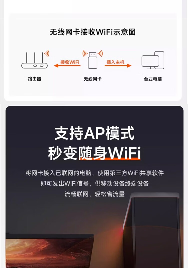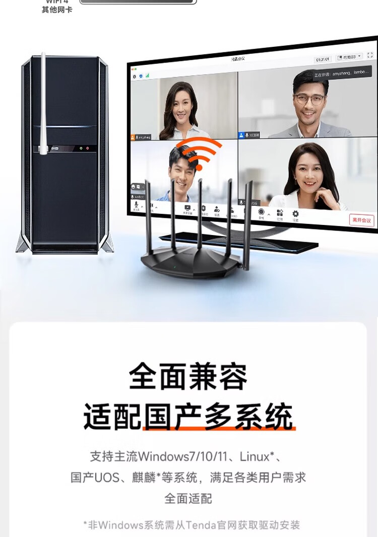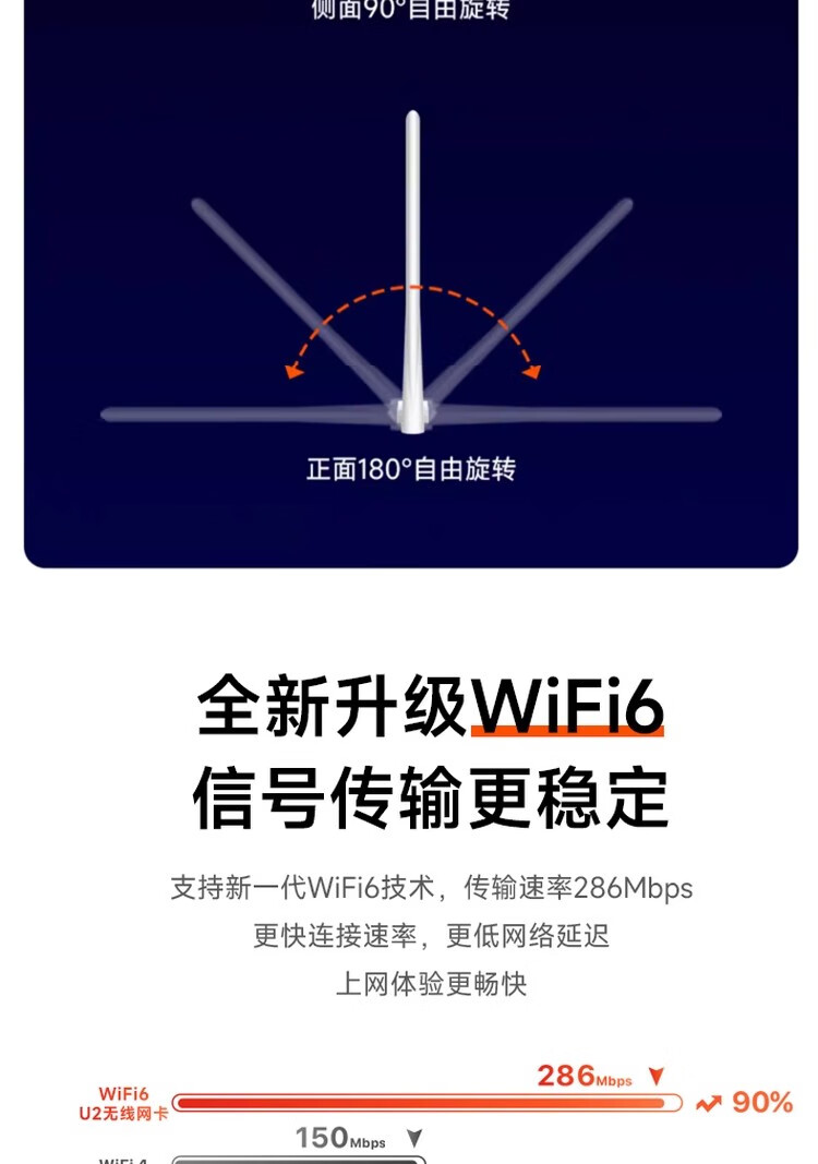 腾达(Tenda)WiFi6智能免驱台式机笔记本电脑无线wifi usb无线网卡 外置高增益天线 WIFI6无线网卡AX300免驱