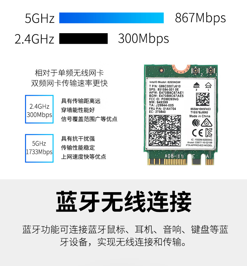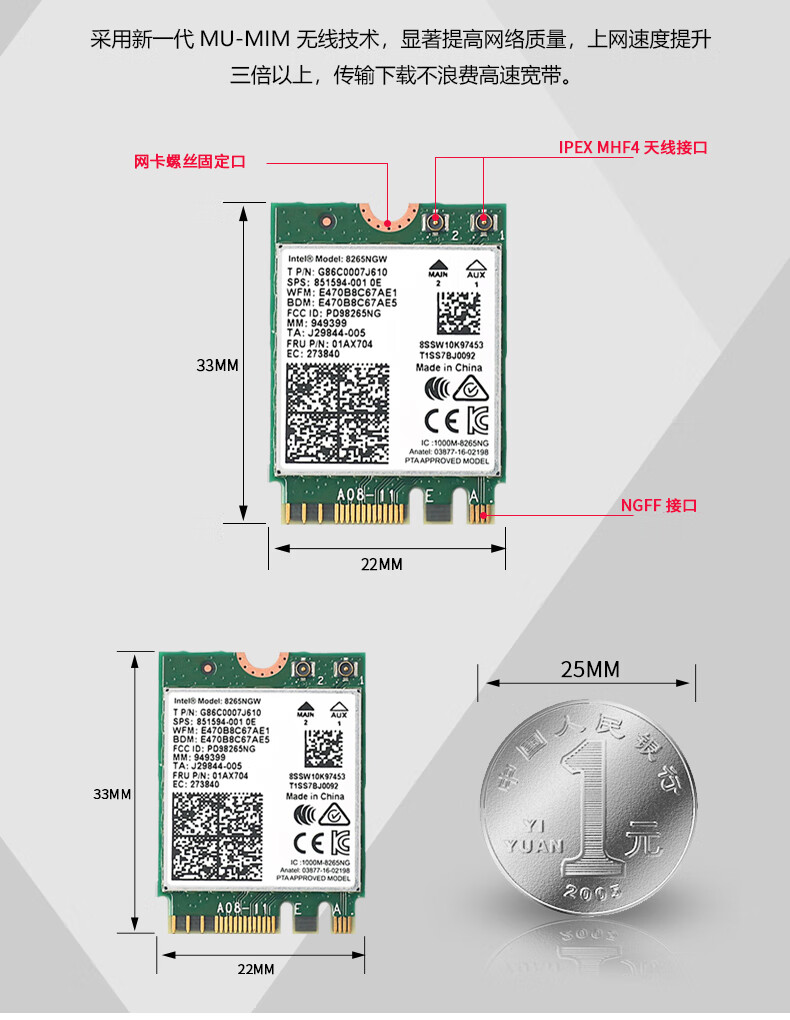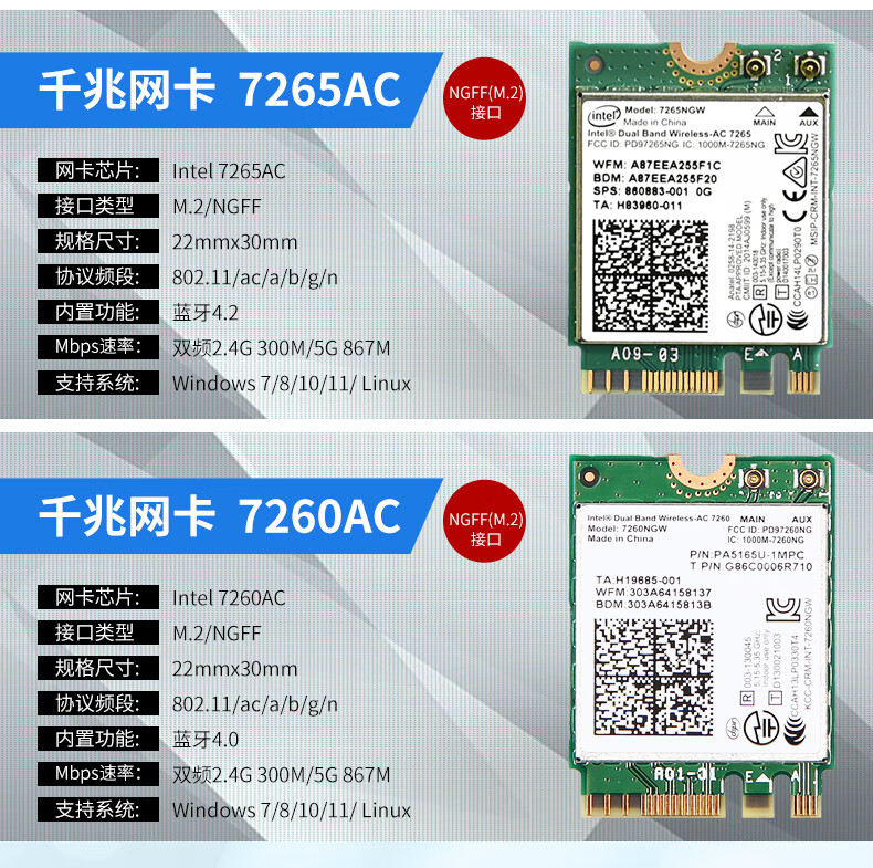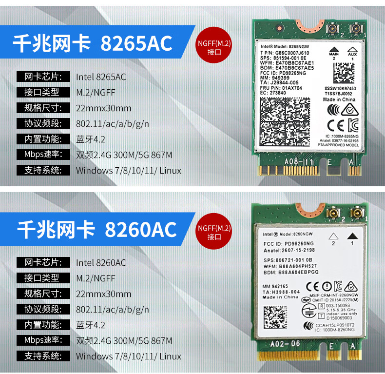 Gxlinkstar Intel8265 8260 7265 7260 5G dual-band 1200Mbps built-in M.2 wireless Bluetooth 4.2 two-in-one network card notebook desktop WiFi receiver set 8265AC network card + external antenna *1