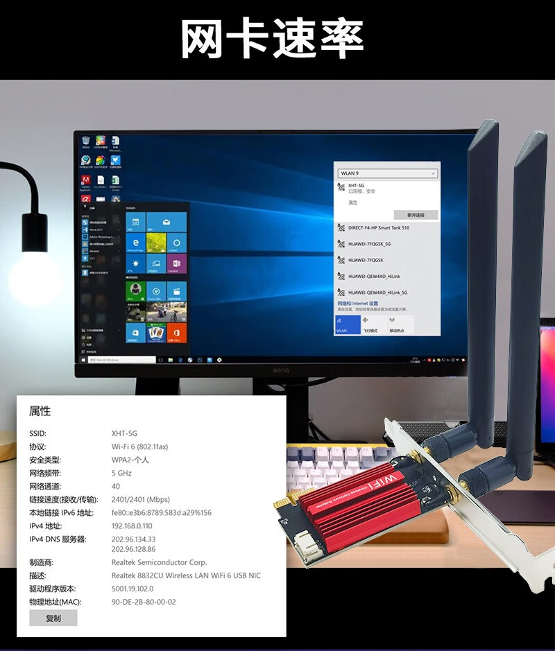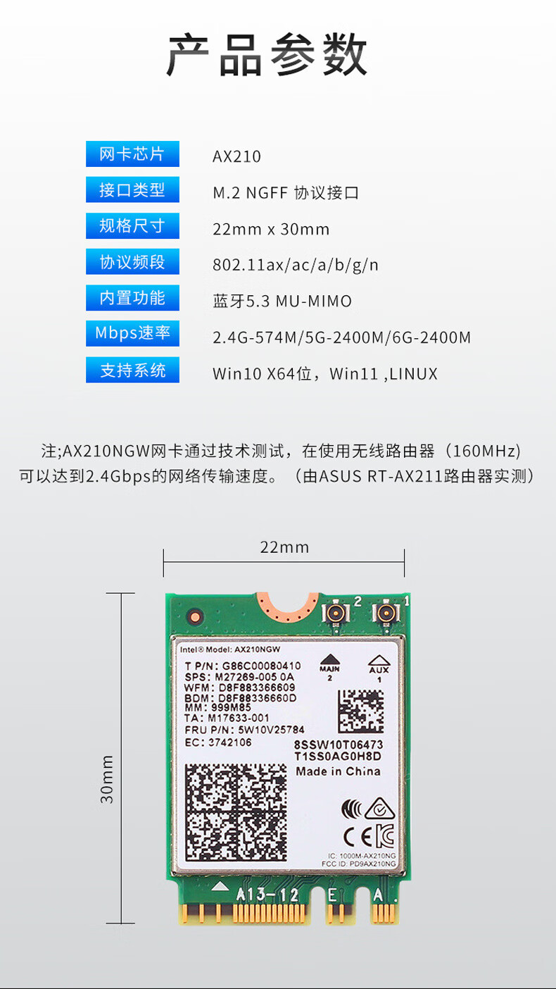 PERCKO AX210 wireless network card Intel ax200 network card BE200 pcie wireless network card Bluetooth two-in-one WiFi6E Gigabit 5gWiFi7 e-sports desktop dedicated WiFi6E AX210Pro+ Bluetooth 5.3 (Jingcang)