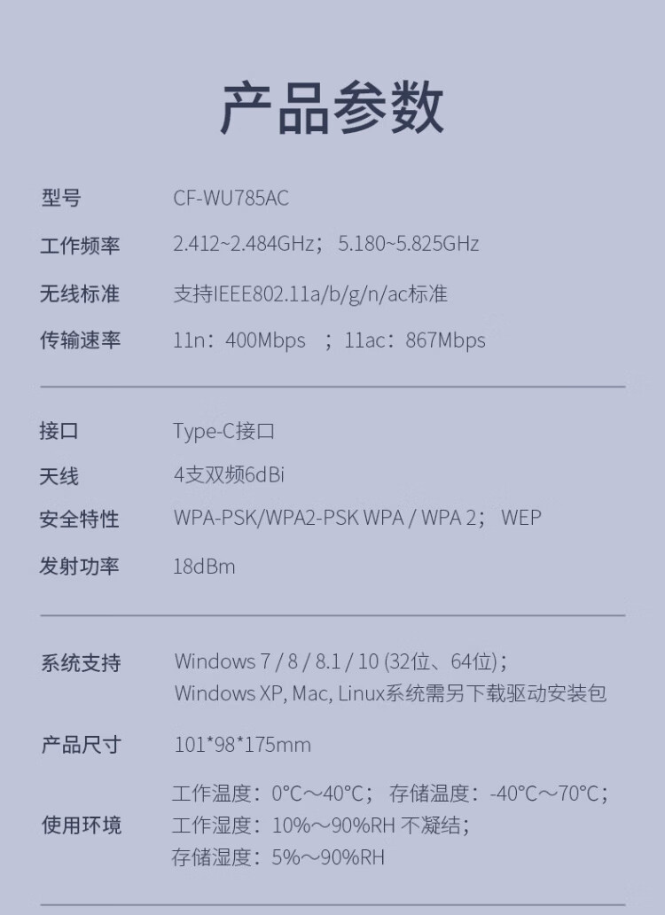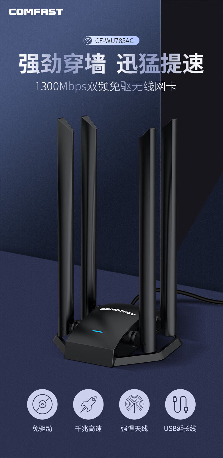 COMFAST CF-785AC 1300M穿墙USB无线网卡台式机专用免驱动笔记本游戏电竞千兆网卡无线wifi接收发射器 【6500M】WIFI7四天线性能怪兽款