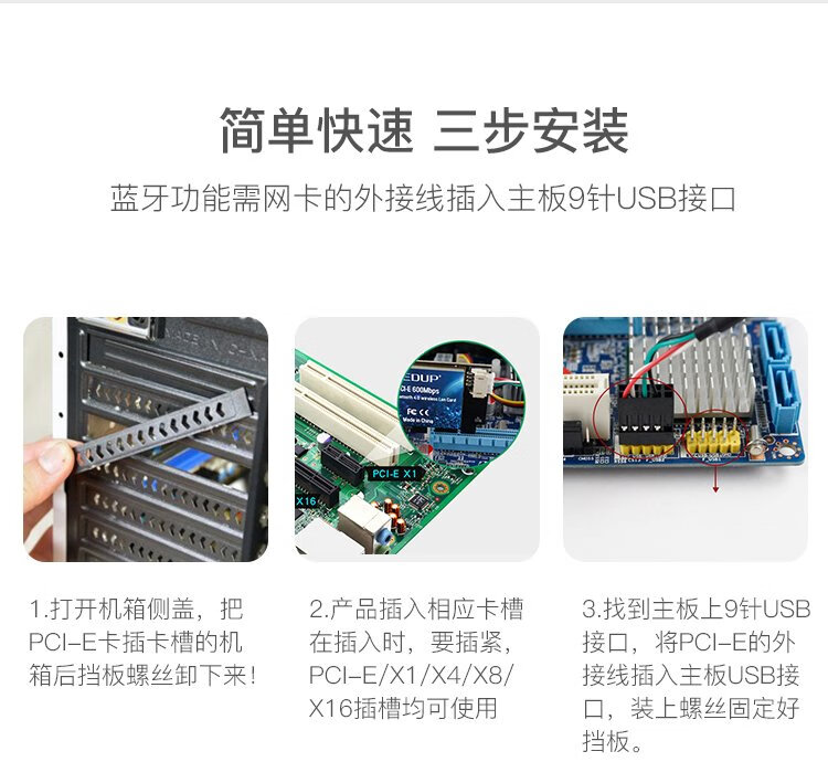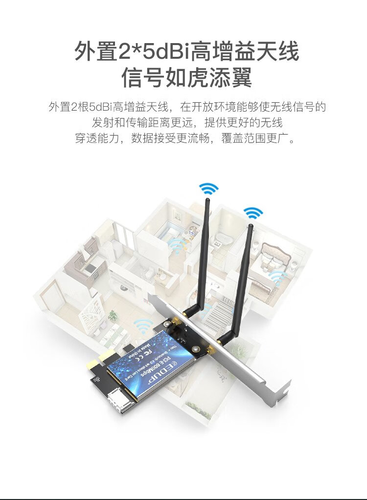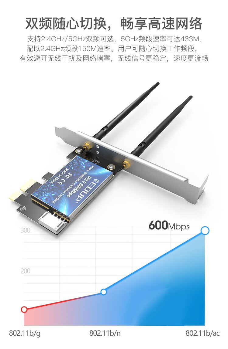 翼联(EDUP) 600M PCI-E双频无线网卡 蓝牙4.0适配器 台式机电脑WIFI接收/发射器