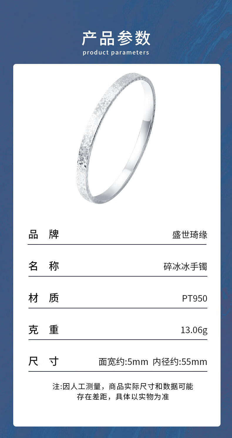 盛世琦缘(SHENGSHIQIYUAN)铂金手镯女pt950铂金白金手镯女半实心新款碎冰冰手镯手环手饰 内径54mm 重20.87克 粗约5mm