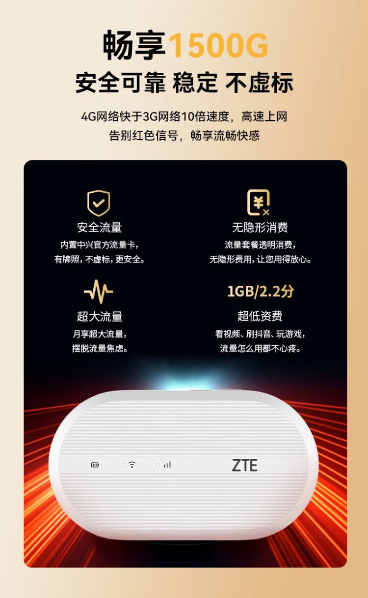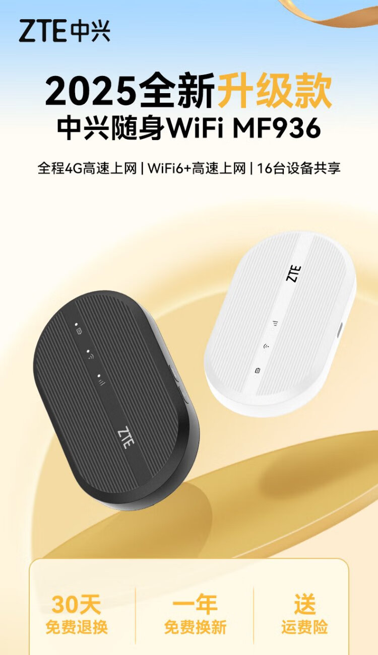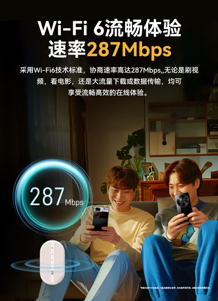 中兴原装随身wifi6【送1500G】2025款支持5G 4G设备免插卡移动随行无线网卡热点无限全国通用流量便携 黑色+一年全国流量套餐