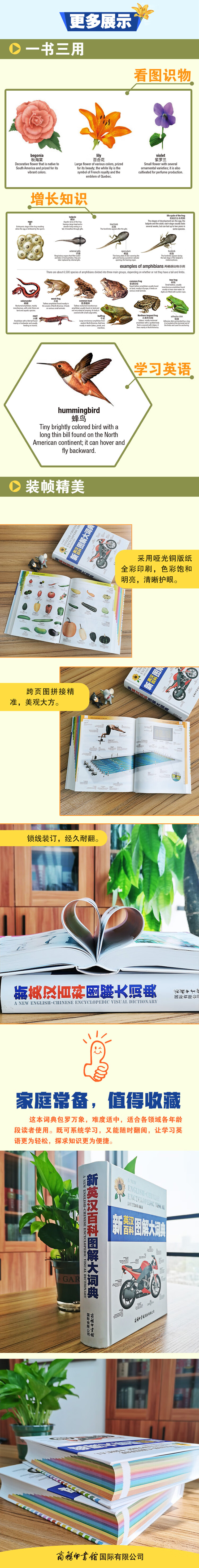 The New English-Chinese Encyclopedia Illustrated Dictionary is a collection of pictures and texts, all daily things are included in the collection of science and technology, and the encyclopedia knowledge is often read and updated. Edited by QA International Inc. of Canada. The Commercial Press International Co., Ltd.