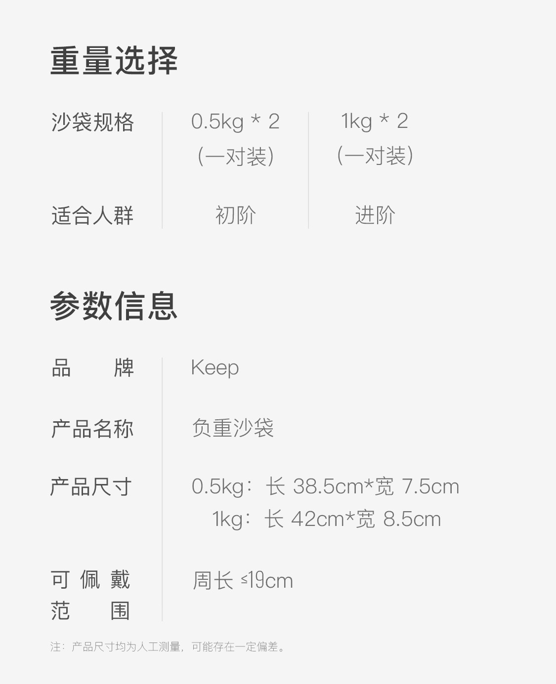 Keep负重手环脚环绑腿沙袋运动健身拳击舞蹈跑步学生家用力量训练