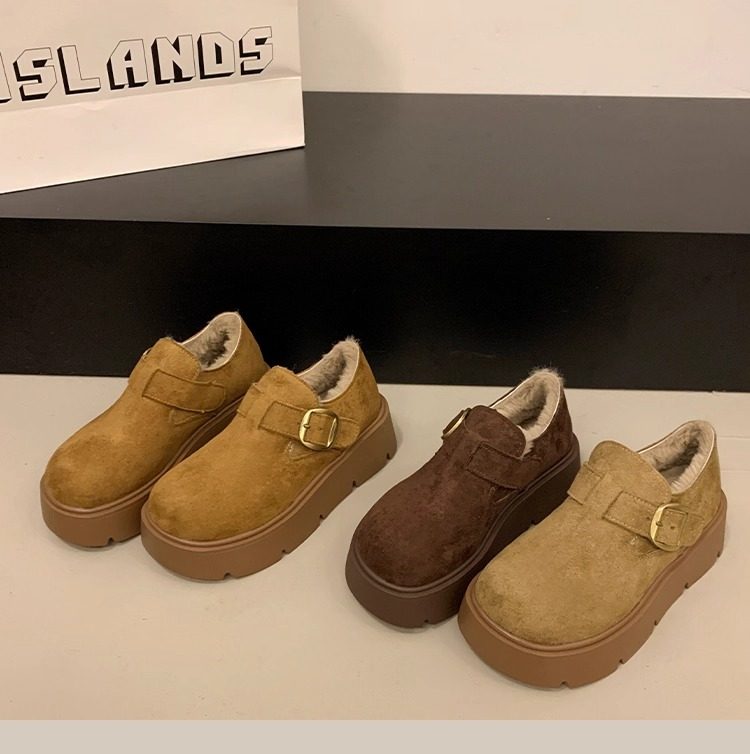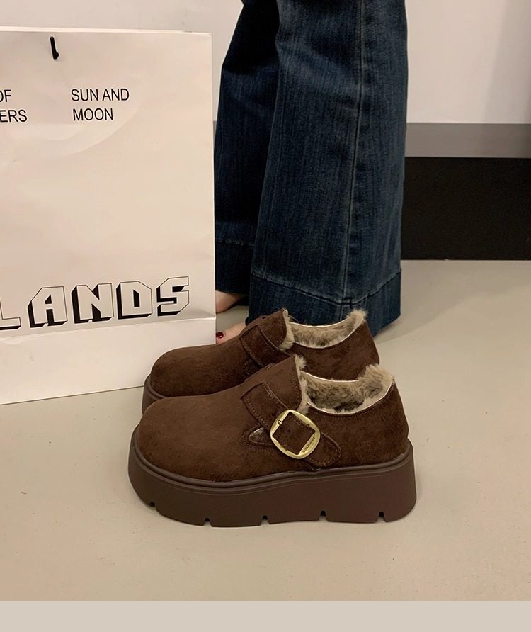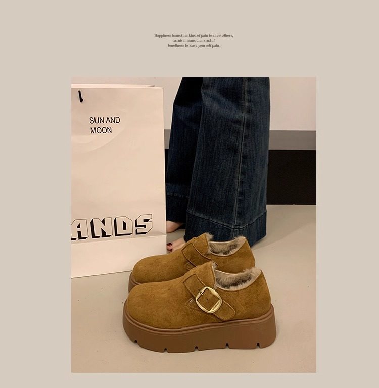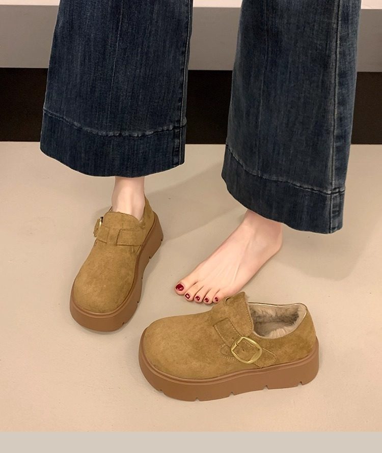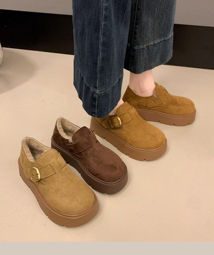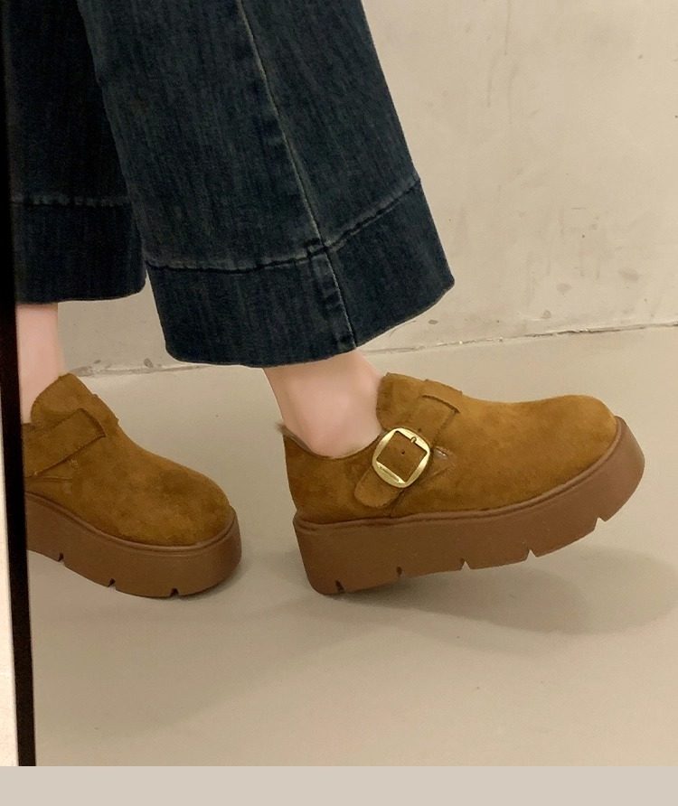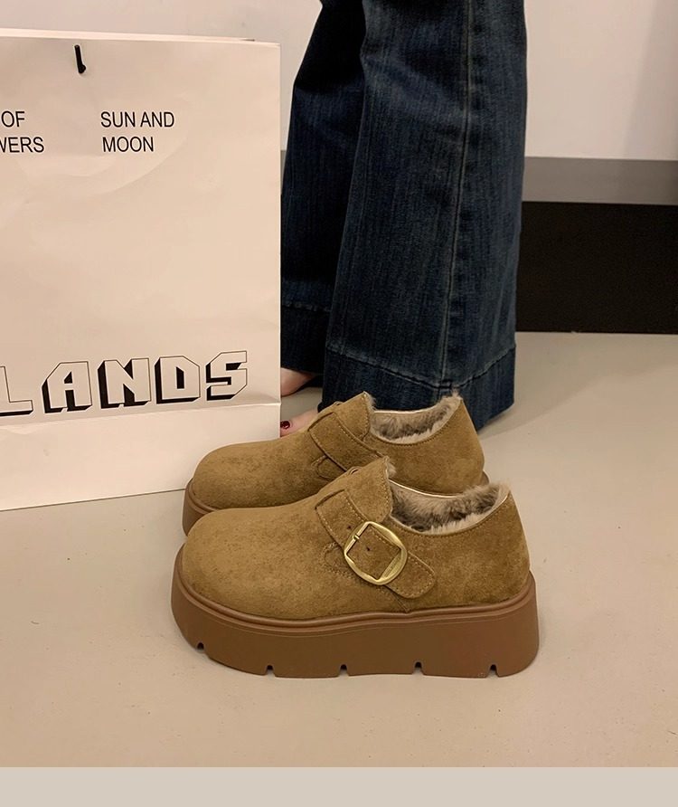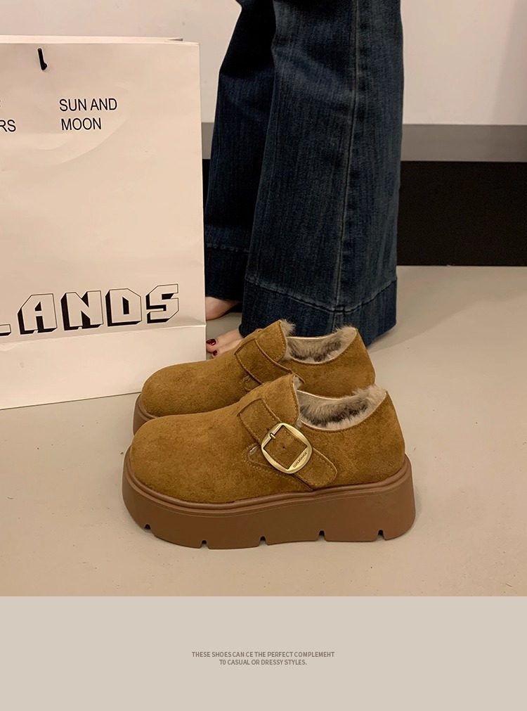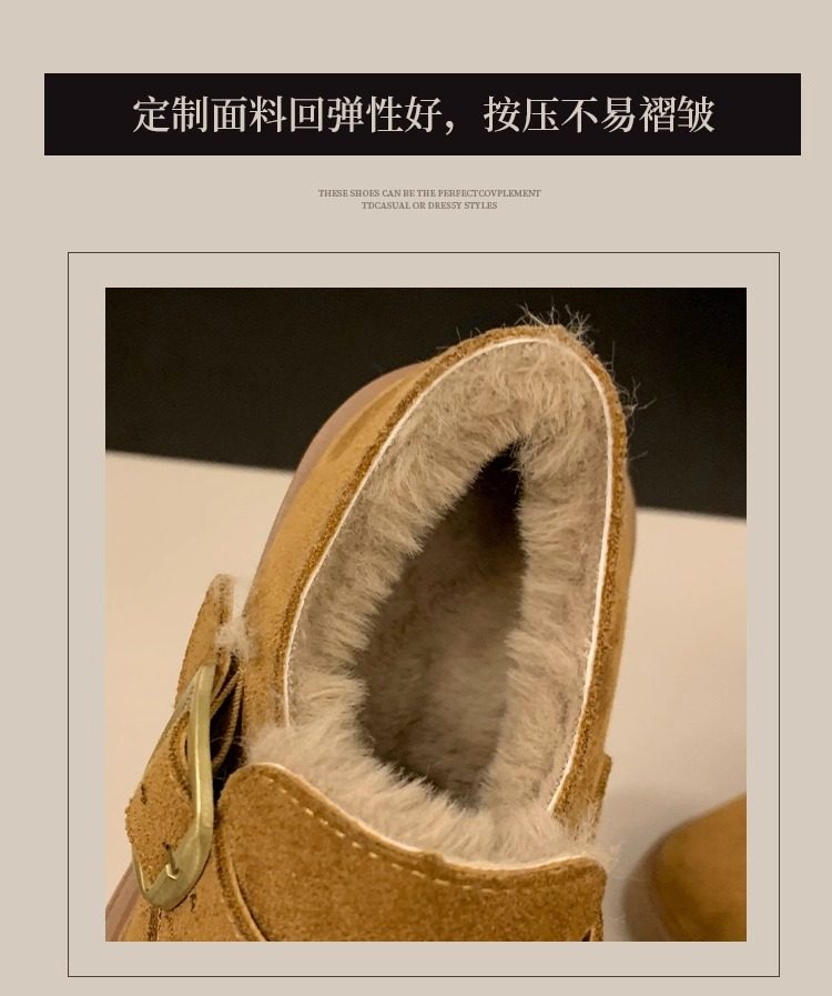 Thick-Soled Fleece-Lined Birkenstock Shoes for Women 2025 New Winter Slip-On Loafers Thickened Warm Cotton Shoes Snow Boots