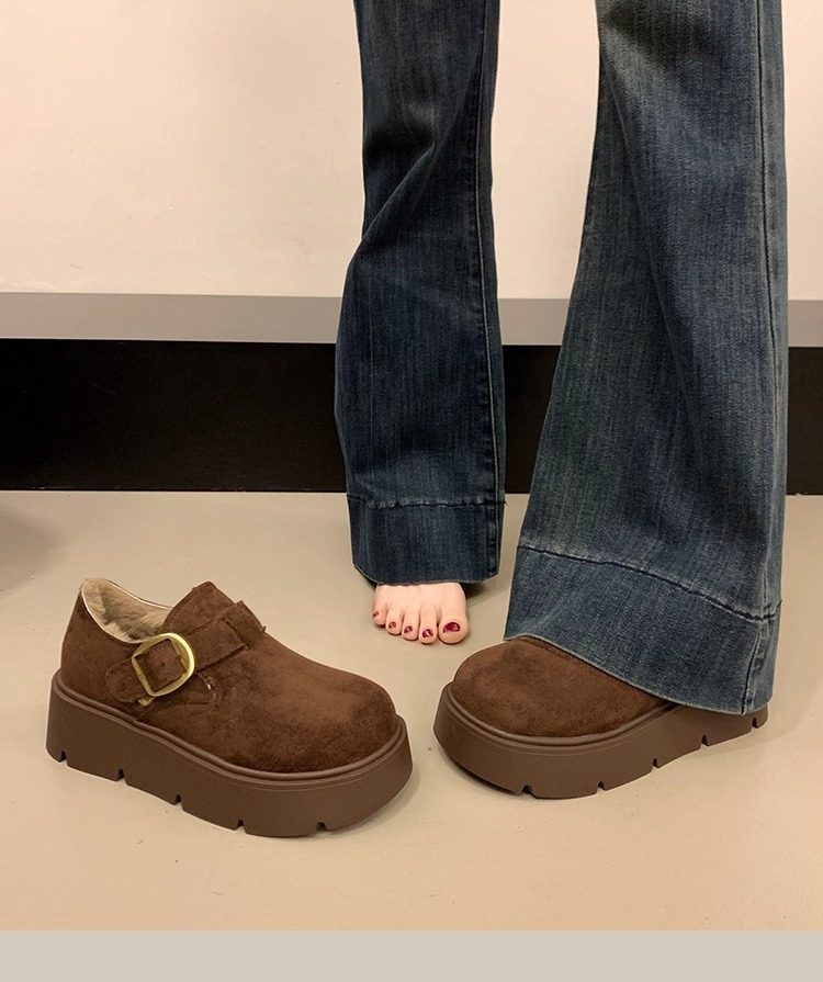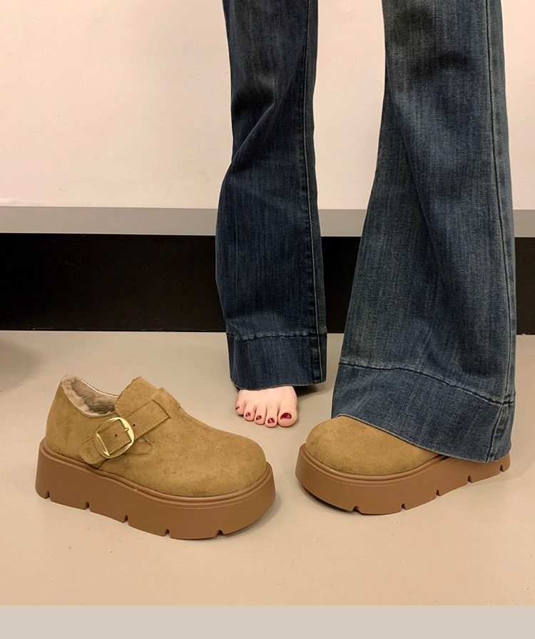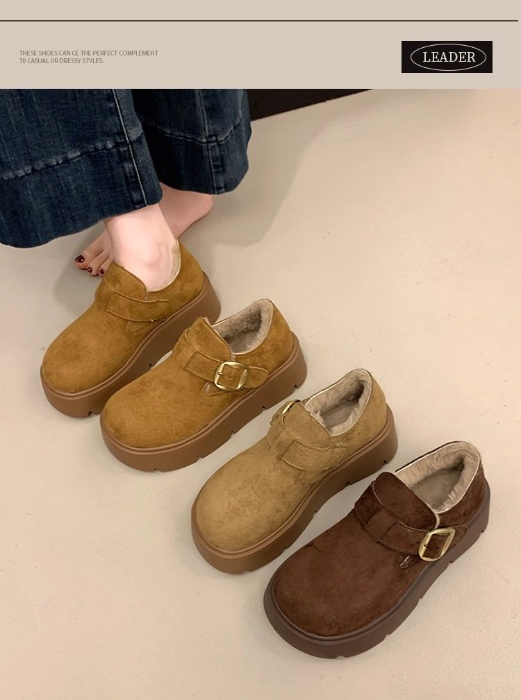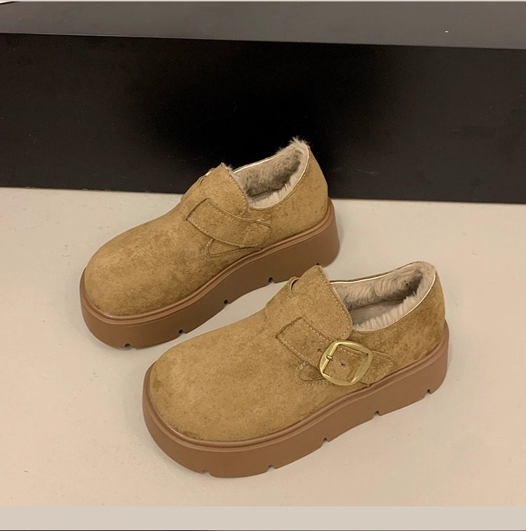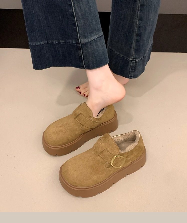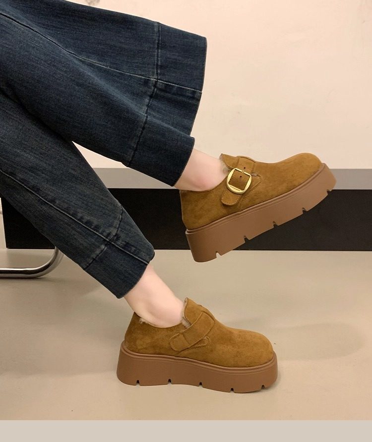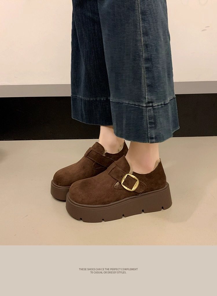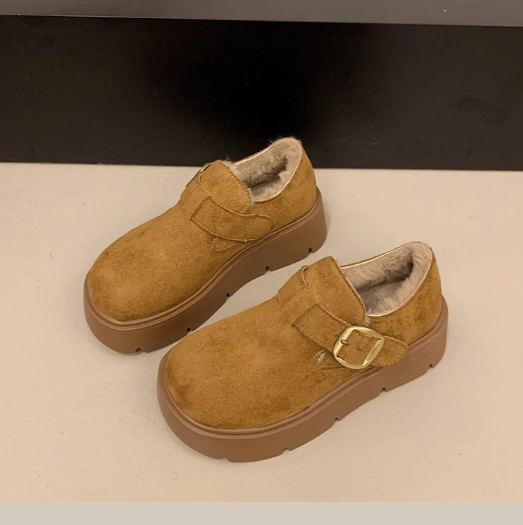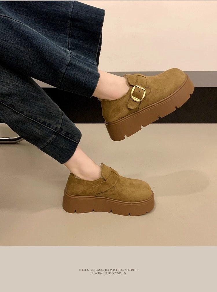Thick-Soled Fleece-Lined Birkenstock Shoes for Women 2025 New Winter Slip-On Loafers Thickened Warm Cotton Shoes Snow Boots