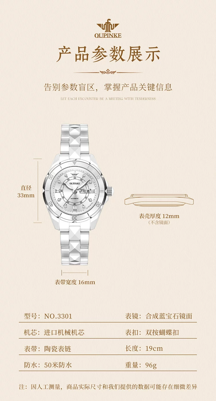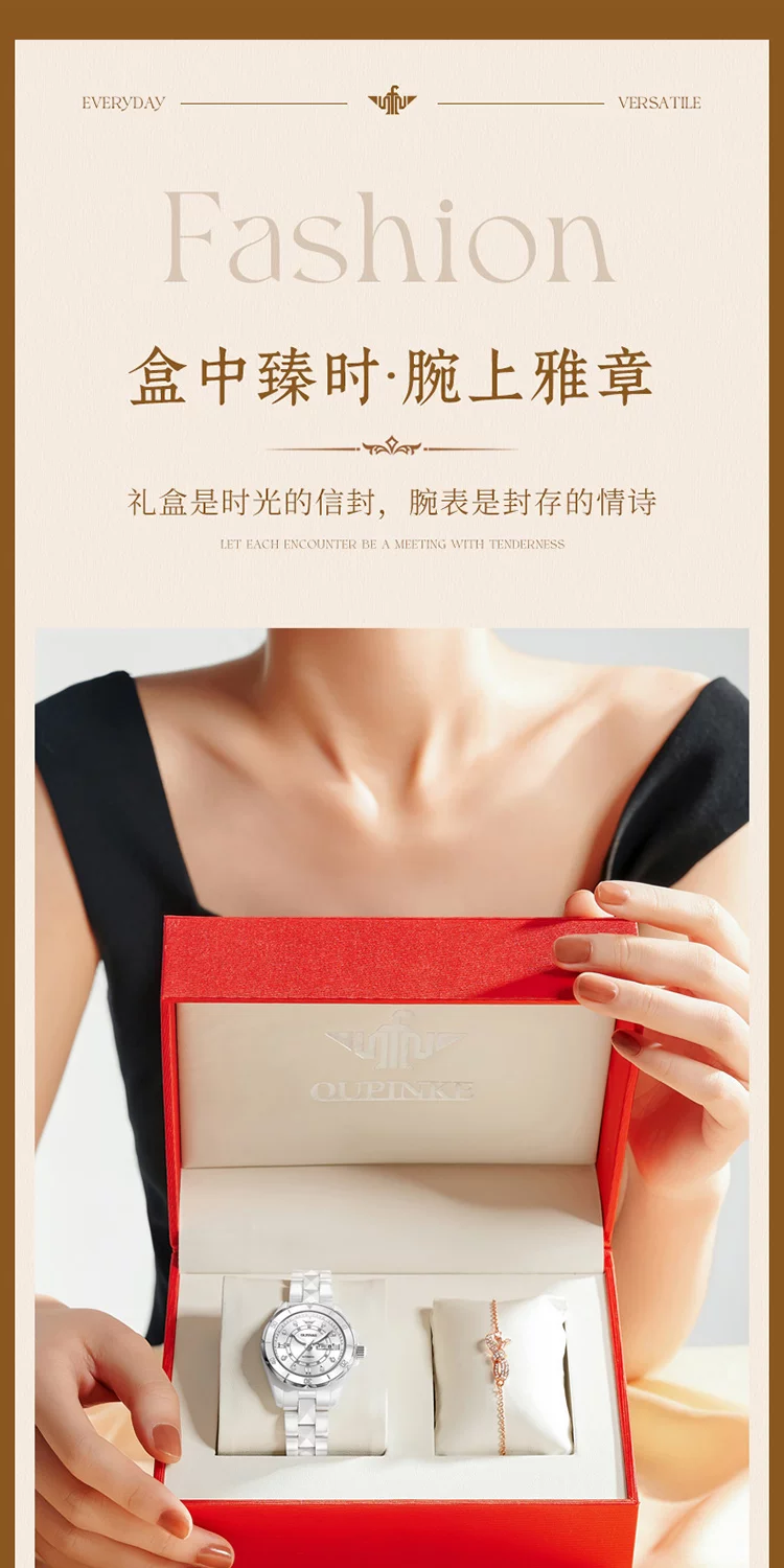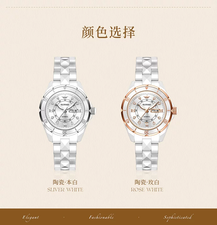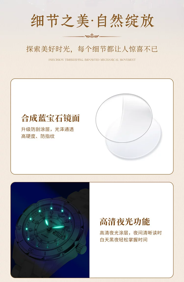 Swiss New Genuine Brand Women's Watch, Trendy and Elegant Ceramic Mechanical Watch with Dual Calendar, High-End and Premium Gift
