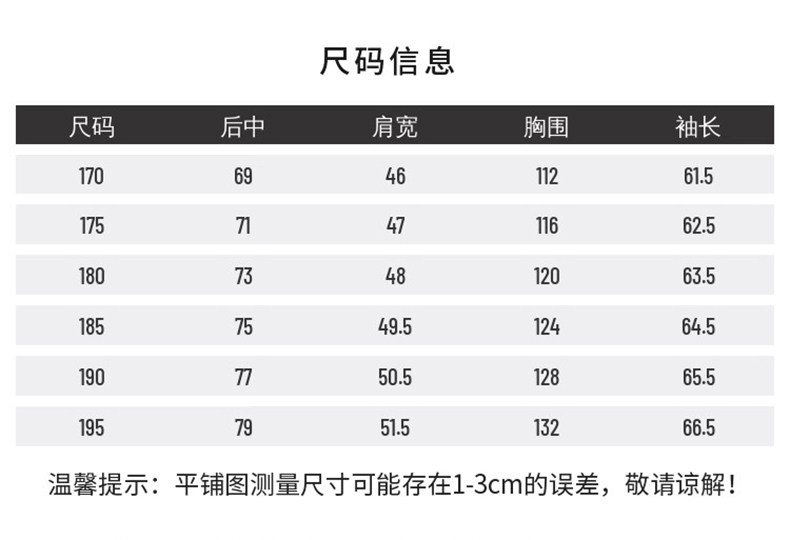 China (cm) 165 / 88-90 170 / 96-98 175 / 108-110 180 / 118-122 185 / 126-130