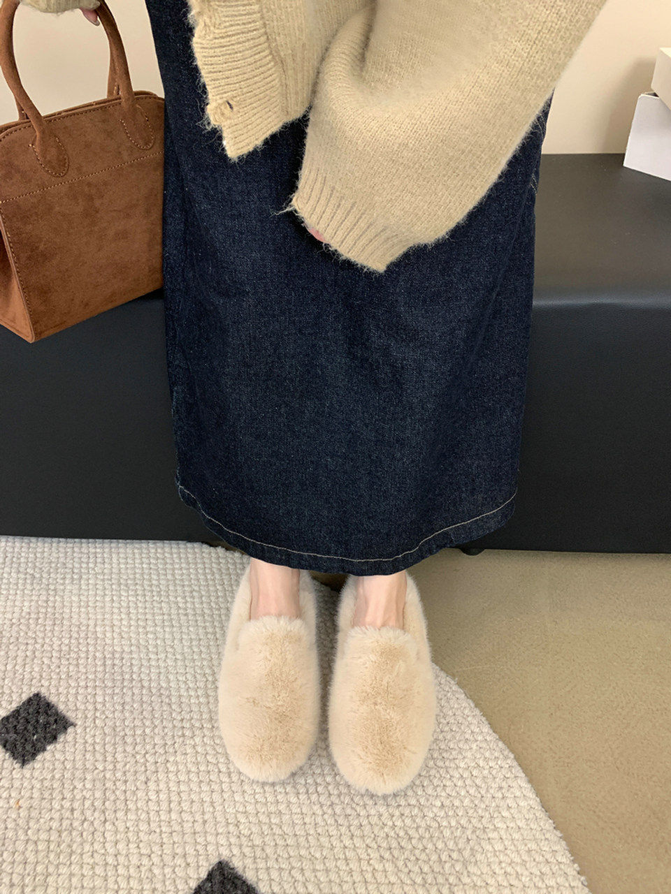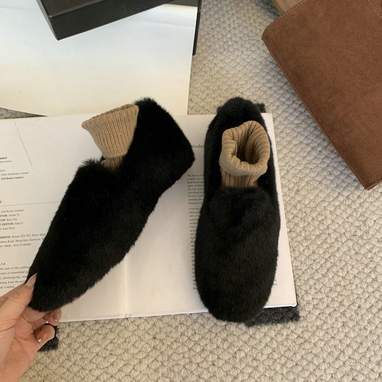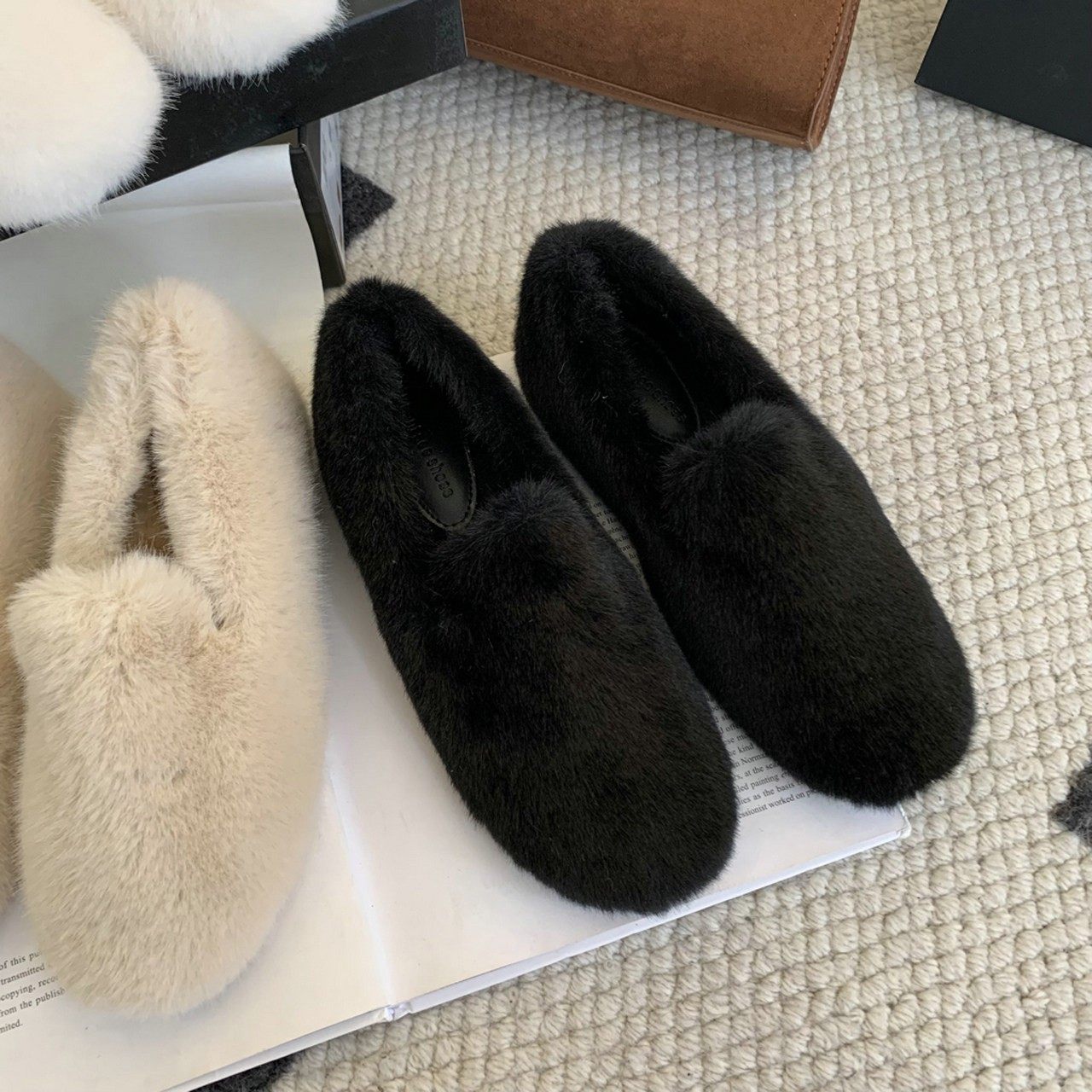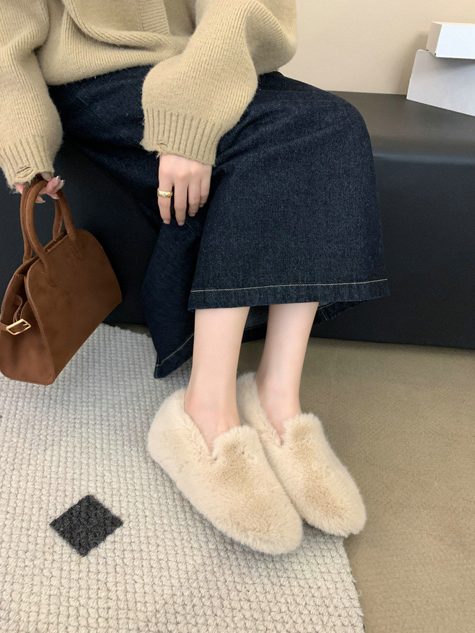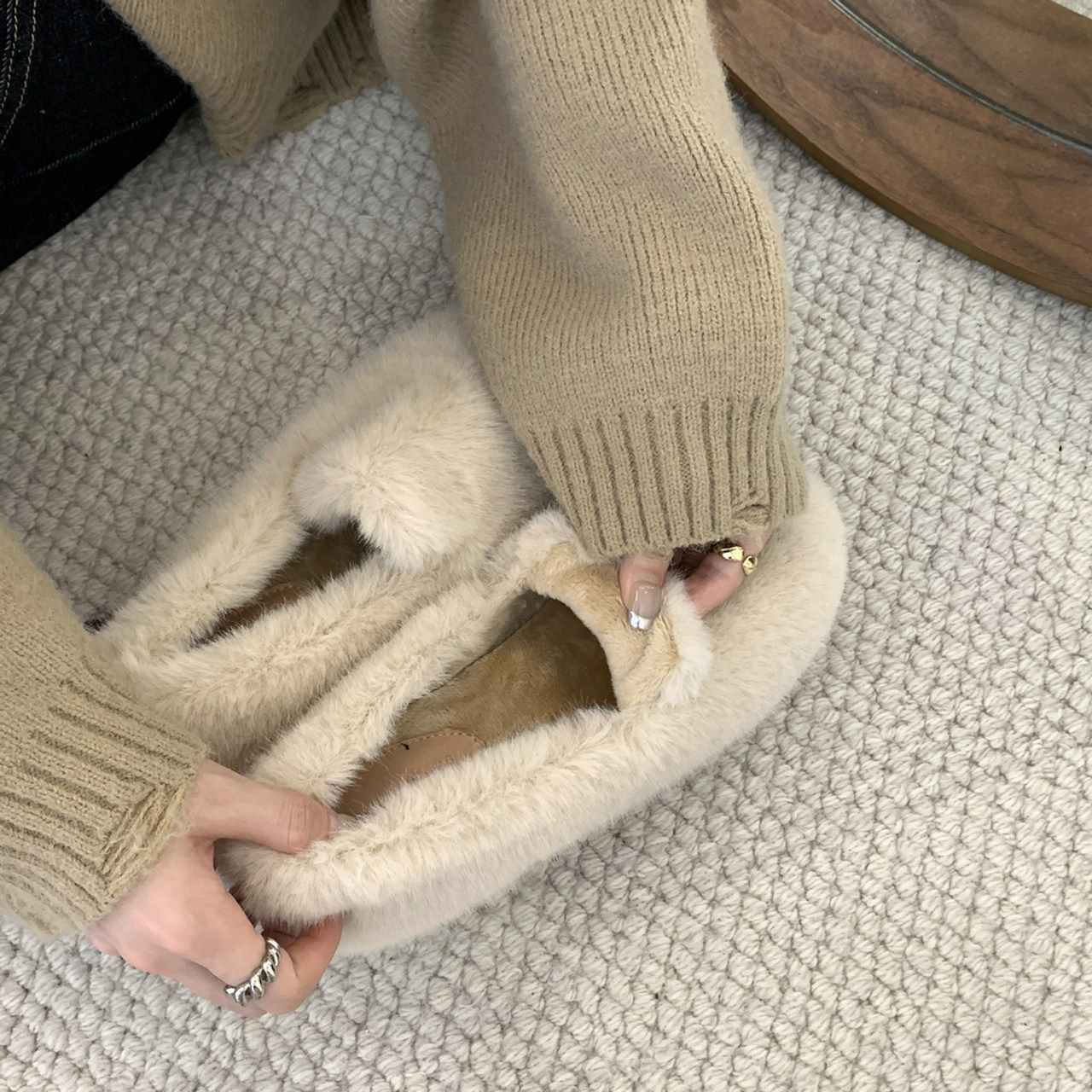 Trendy brand inner heightening thick-soled furry shoes Korean style retro plus velvet beanie shoes winter new outer wear round toe cotton shoes for women
