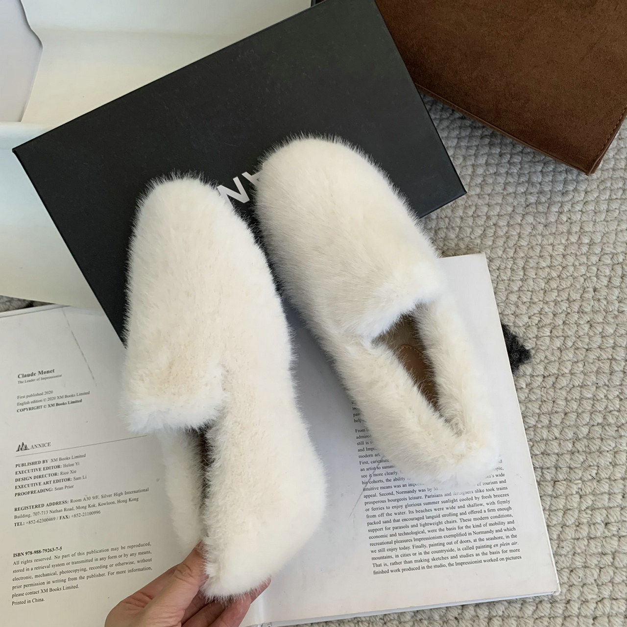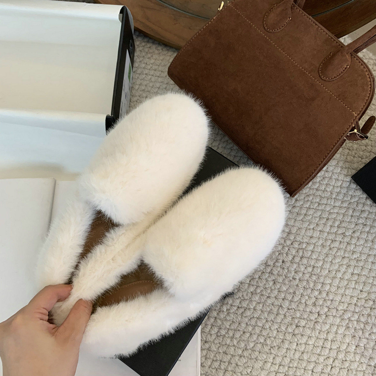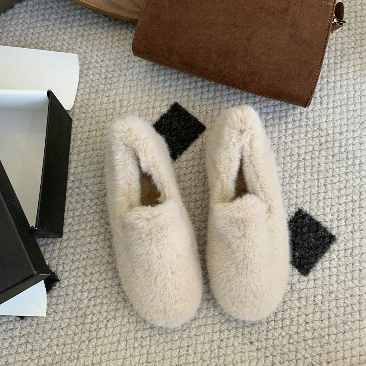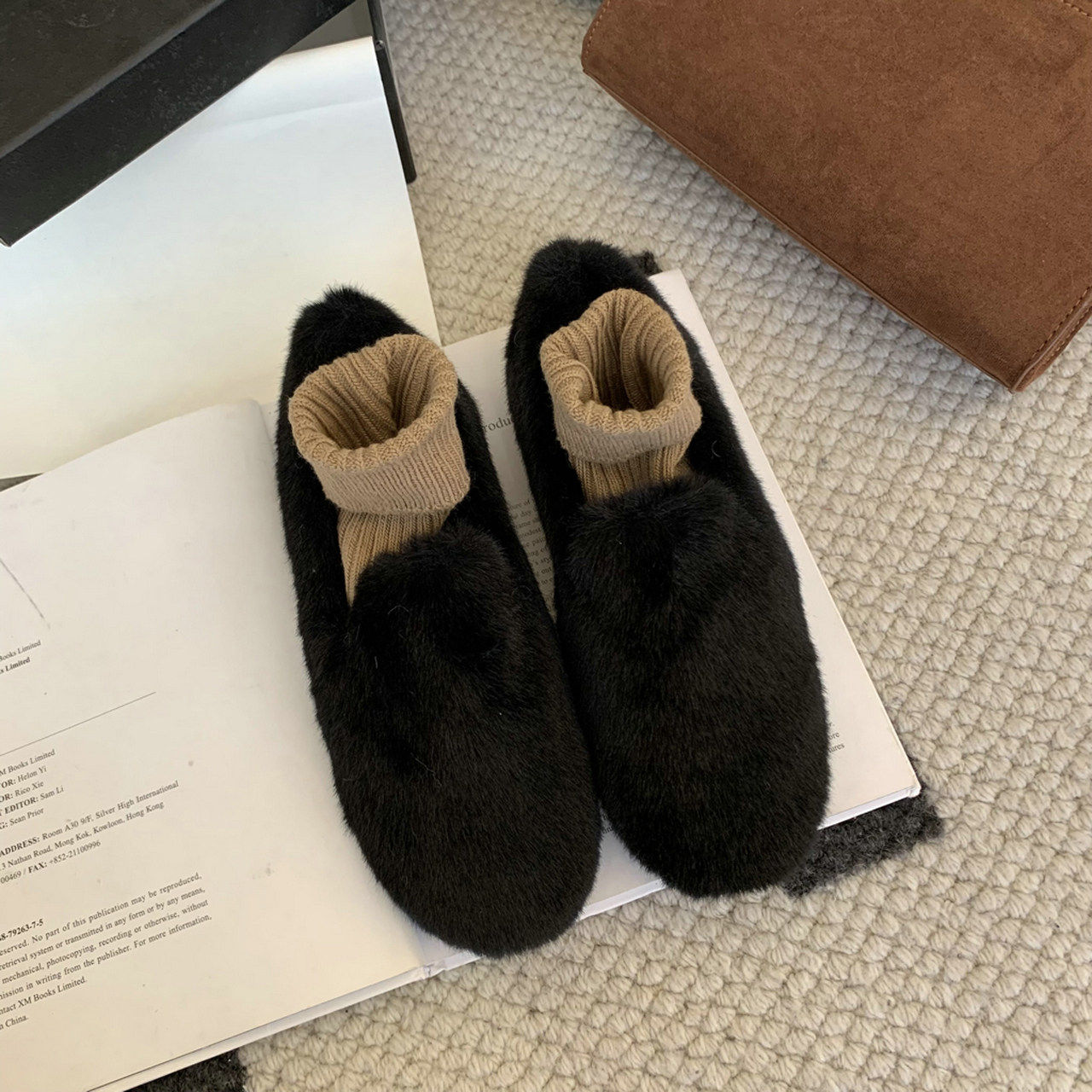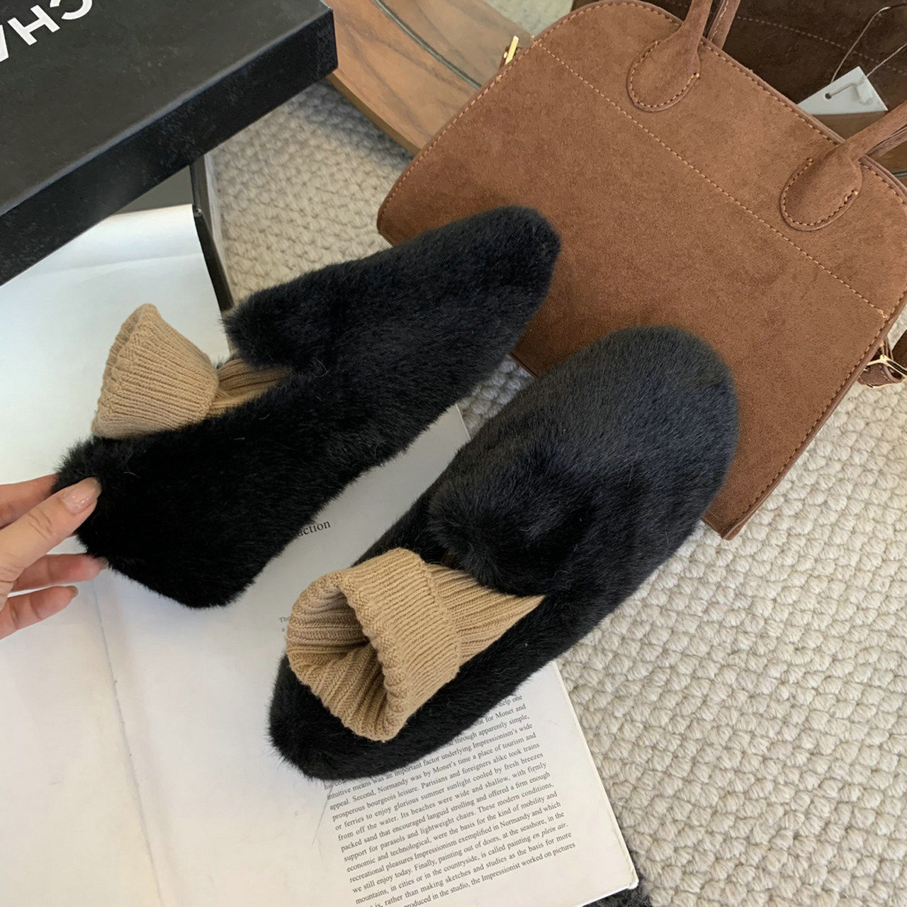 Trendy brand inner heightening thick-soled furry shoes Korean style retro plus velvet beanie shoes winter new outer wear round toe cotton shoes for women