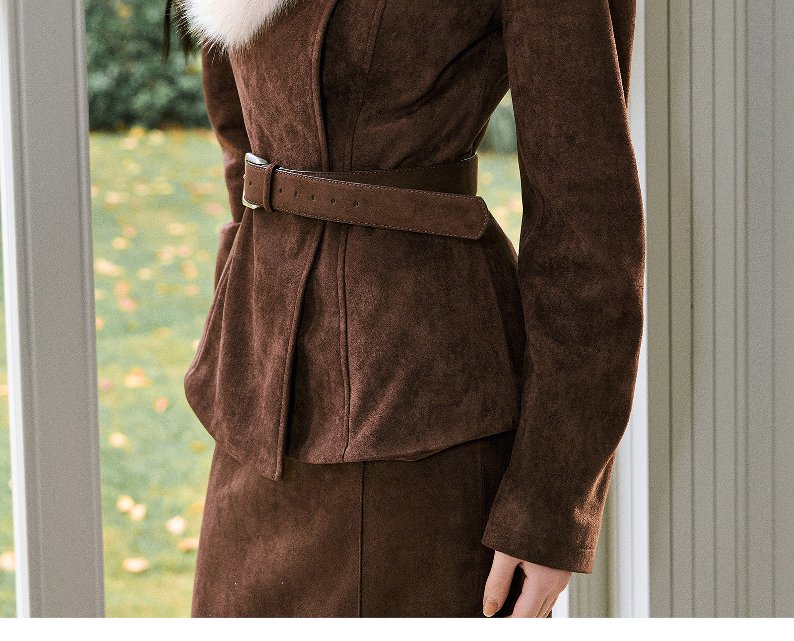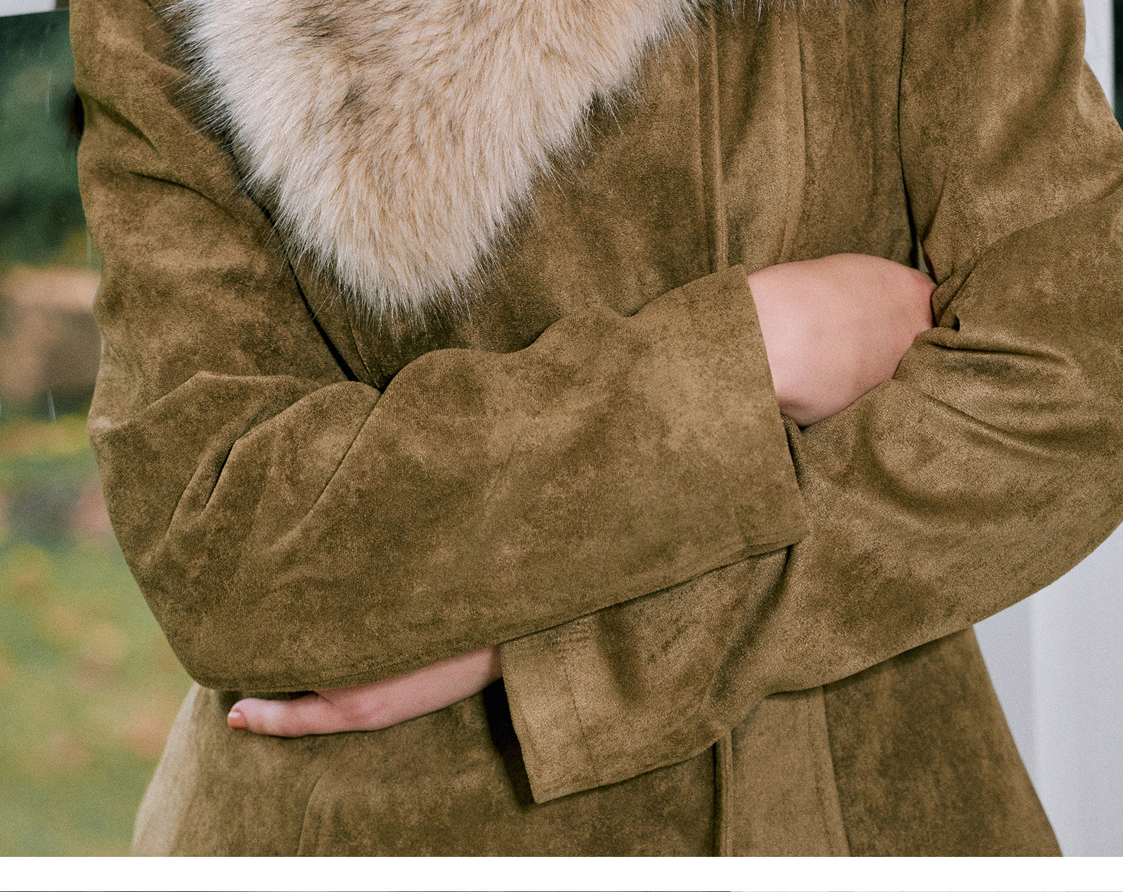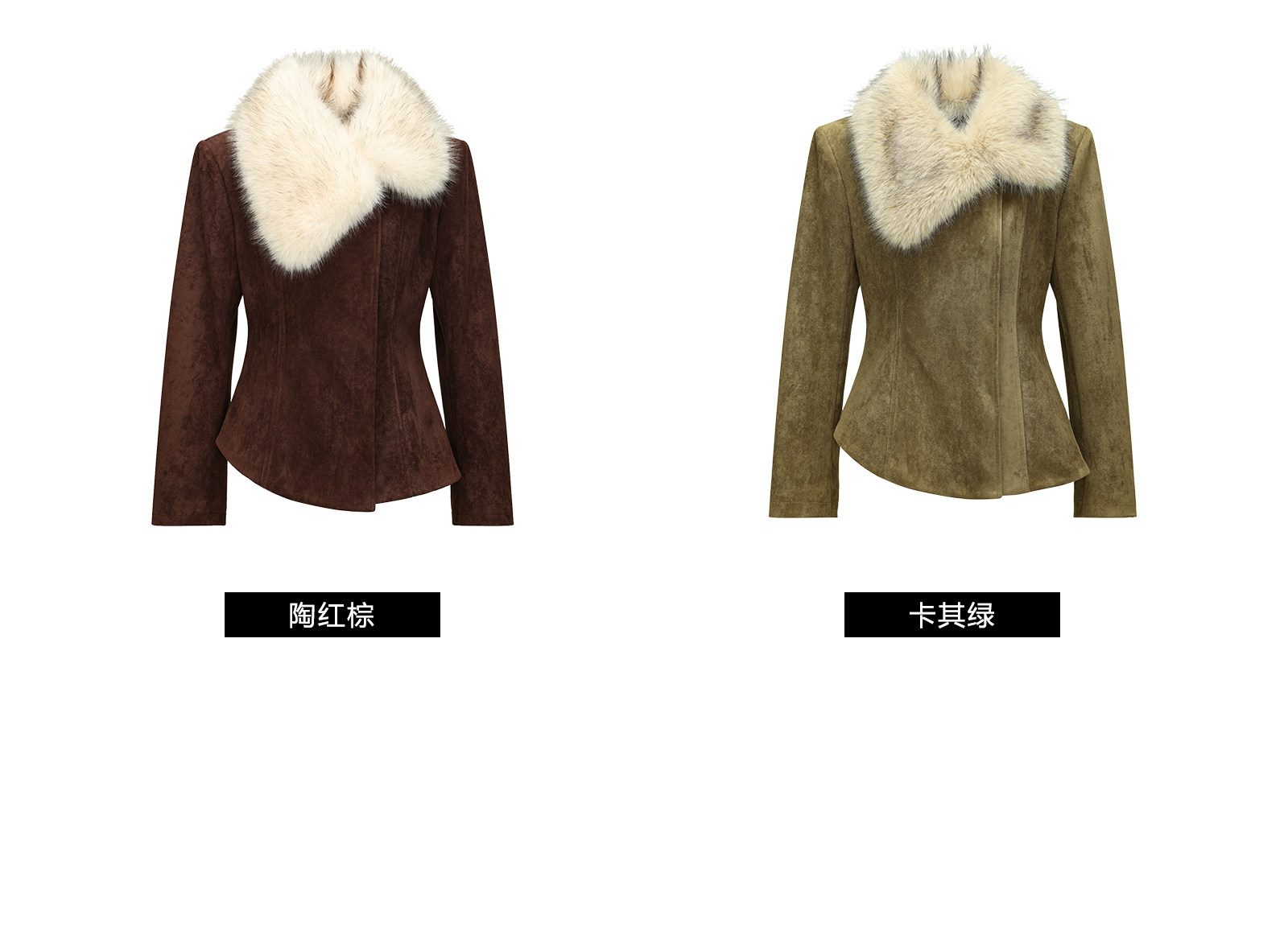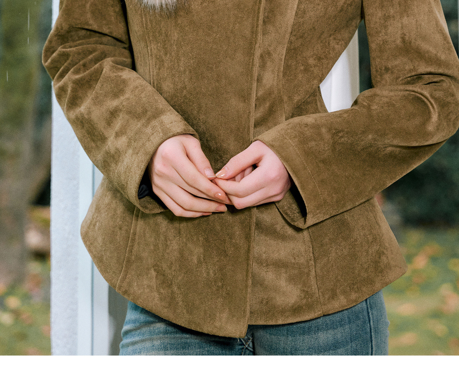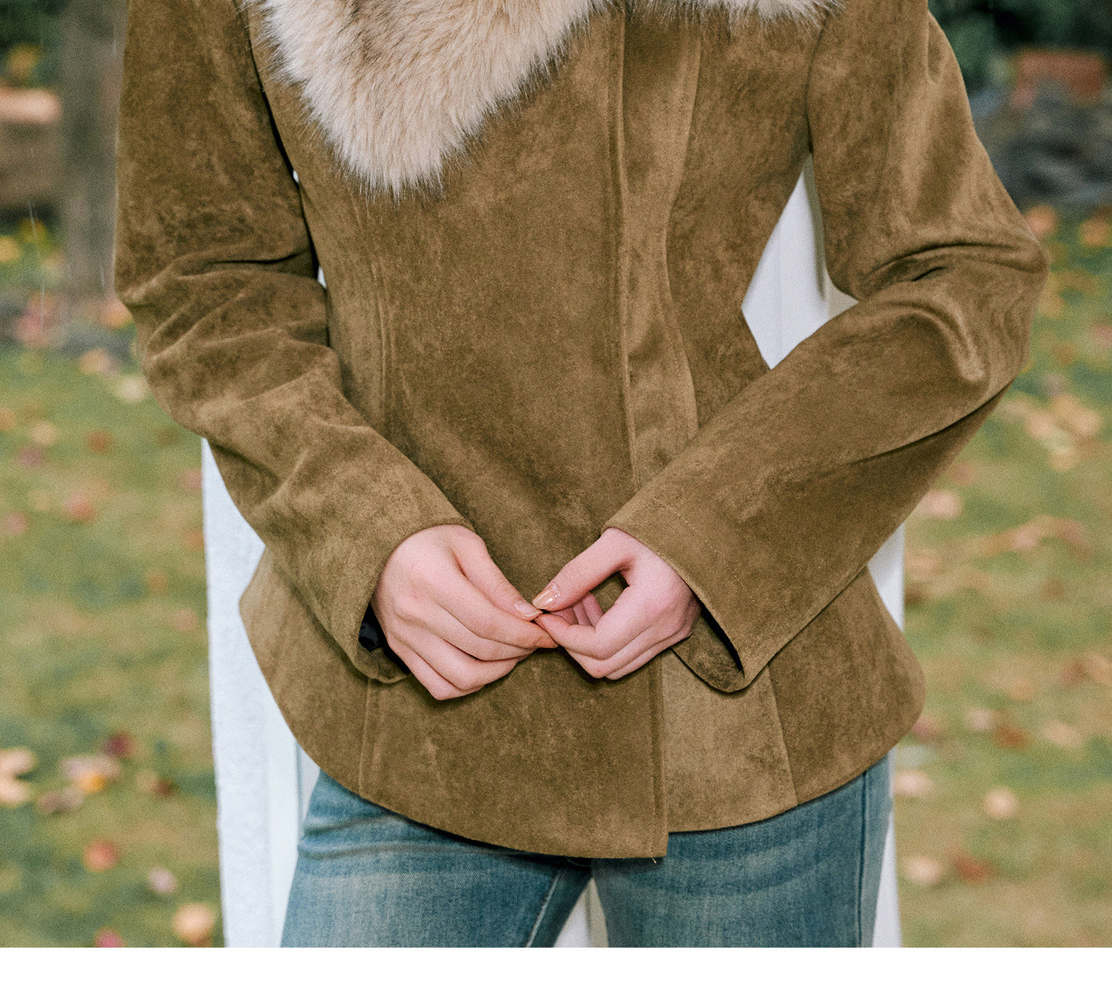 Wangxo|Vintage Matte Suede Texture|Dyed Eco-Friendly Fur Collar White Duck down Waist-Cinching down Jacket