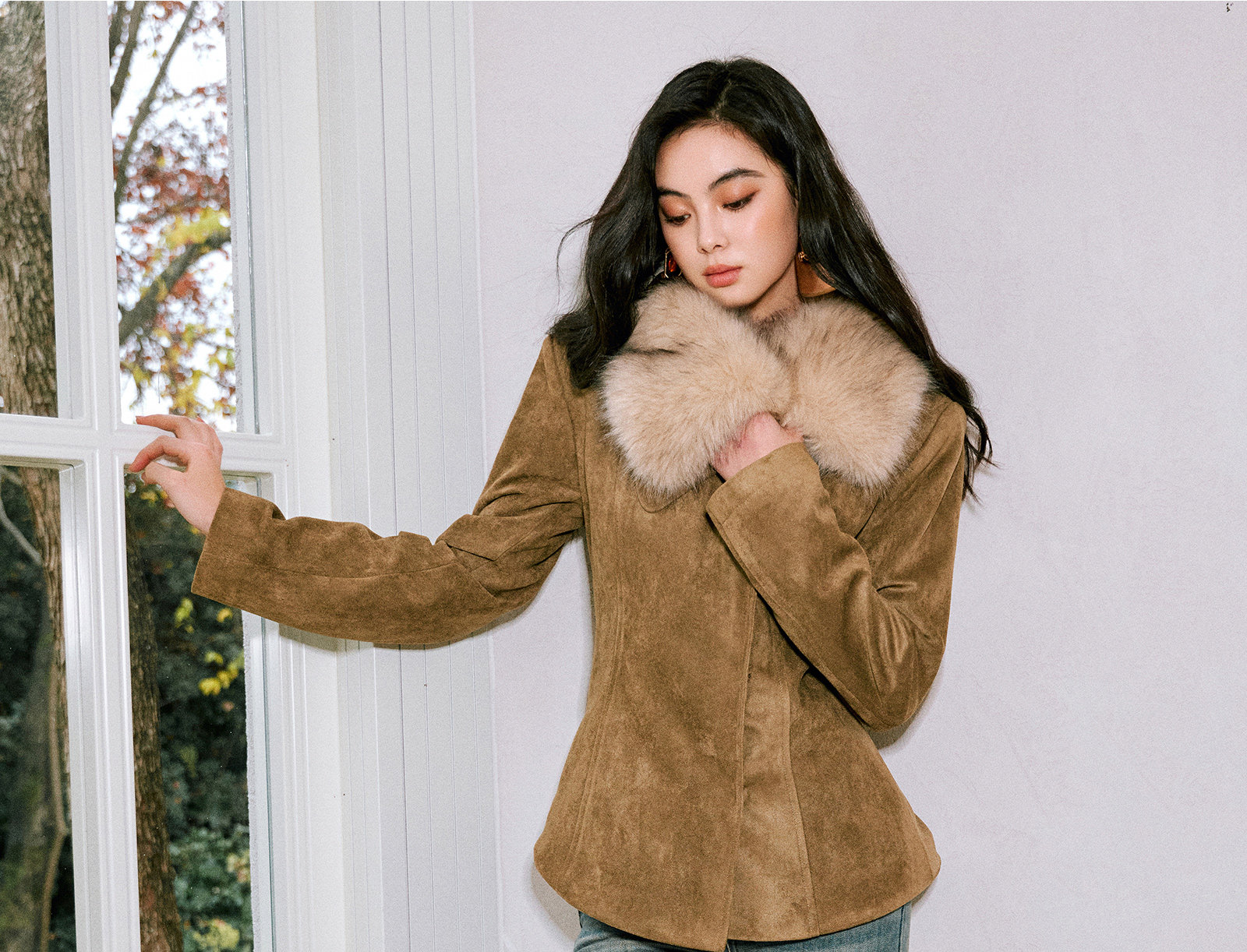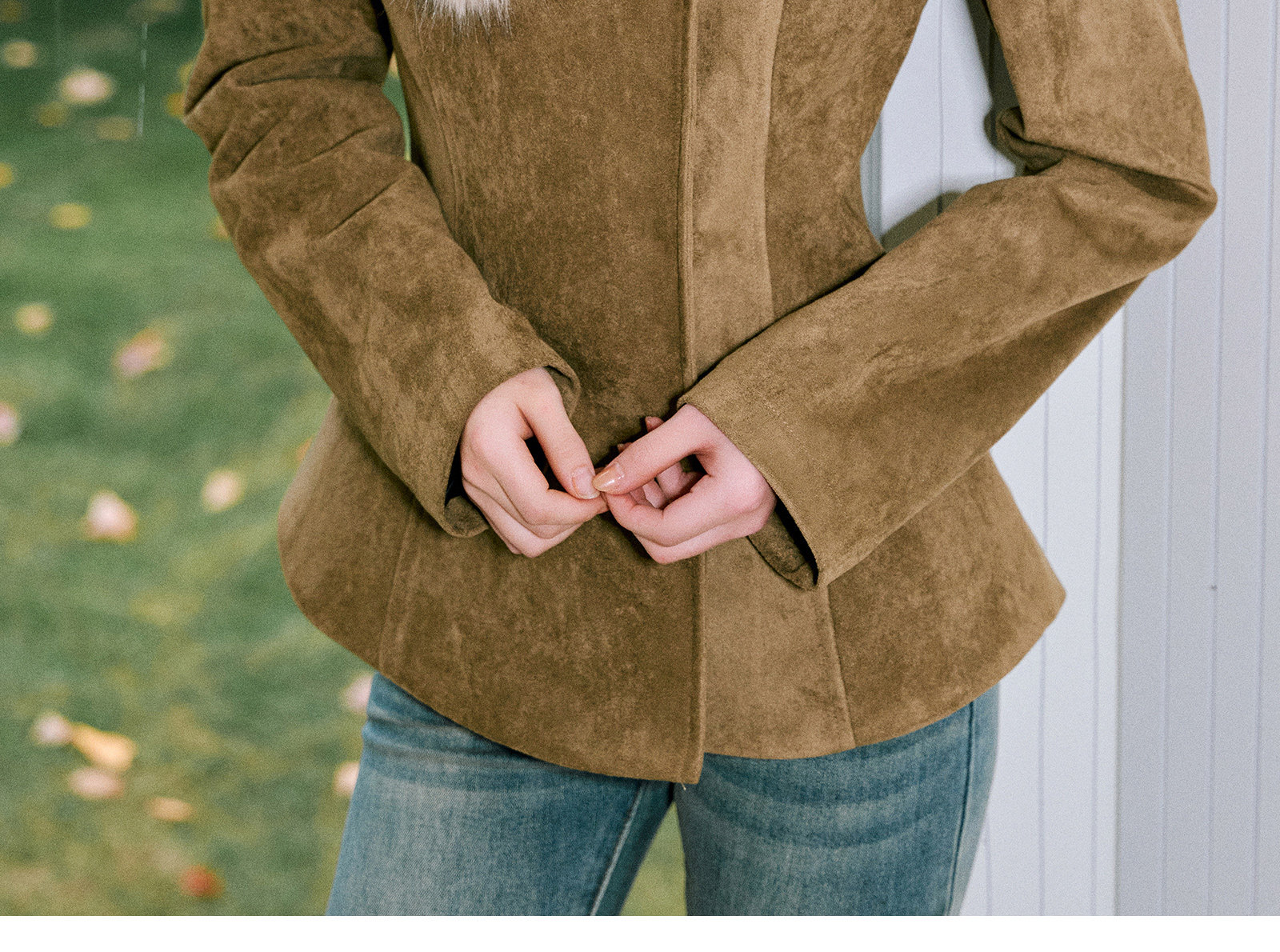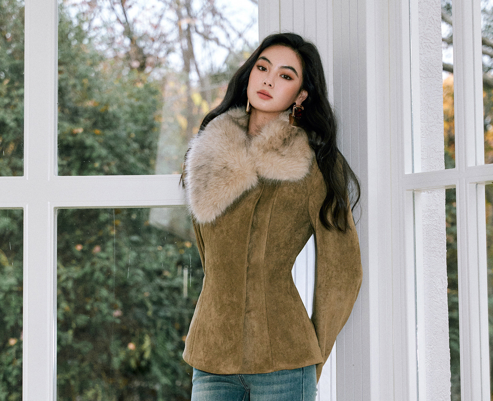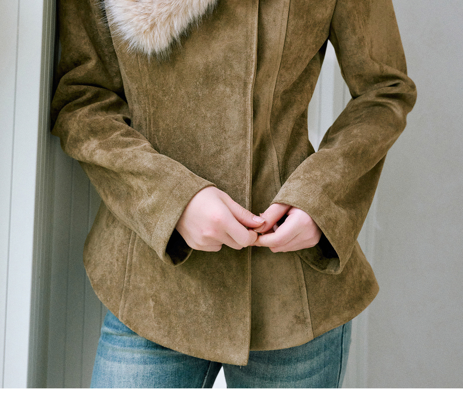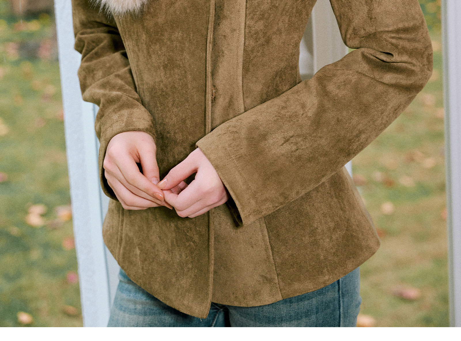 Wangxo|Vintage Matte Suede Texture|Dyed Eco-Friendly Fur Collar White Duck down Waist-Cinching down Jacket