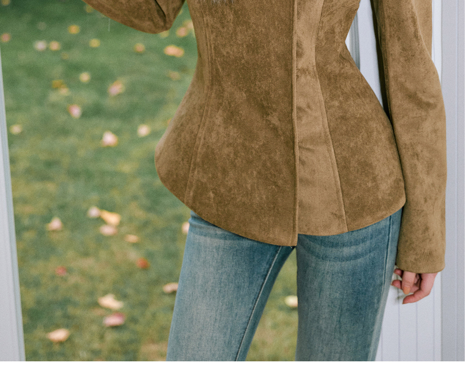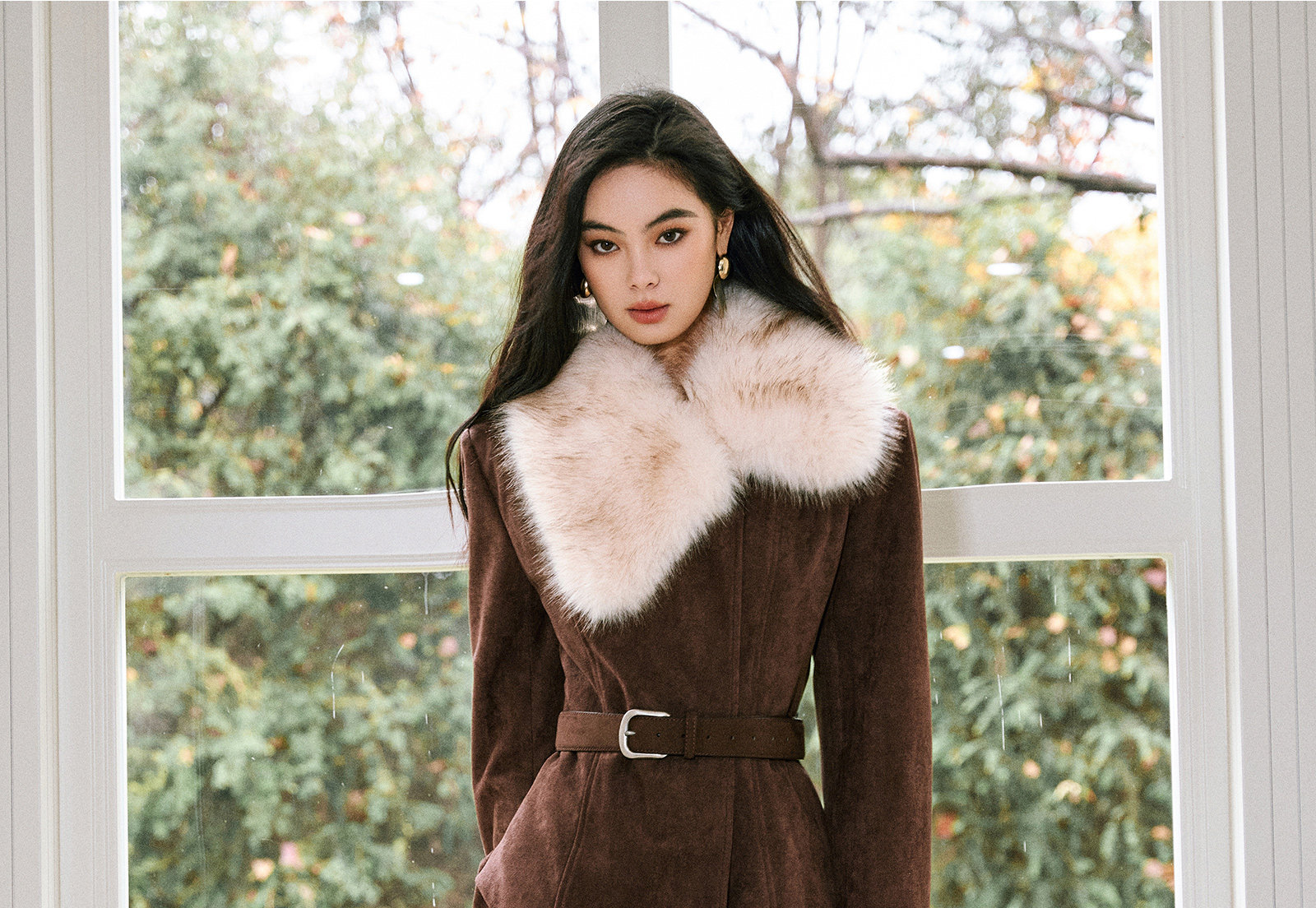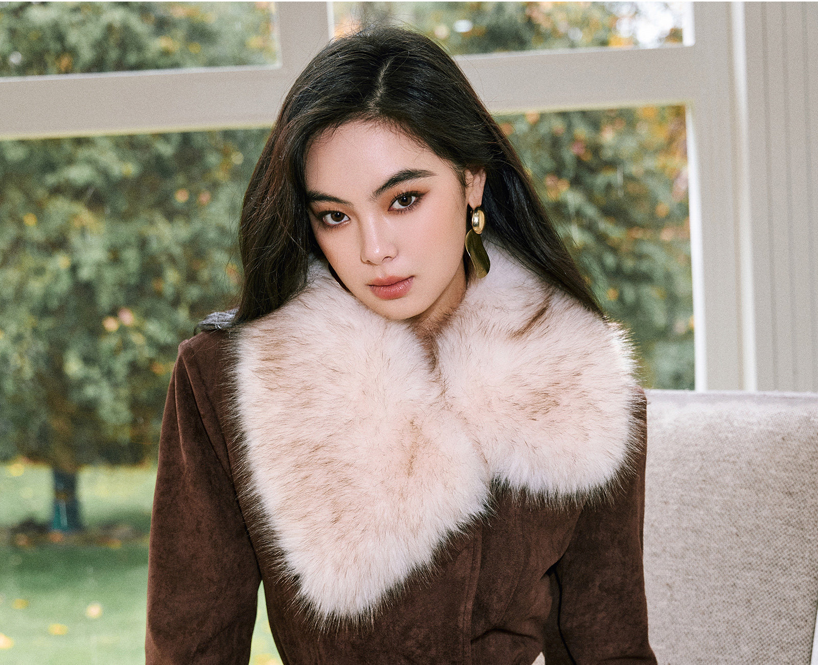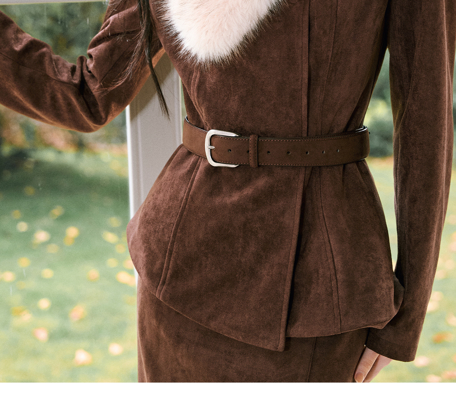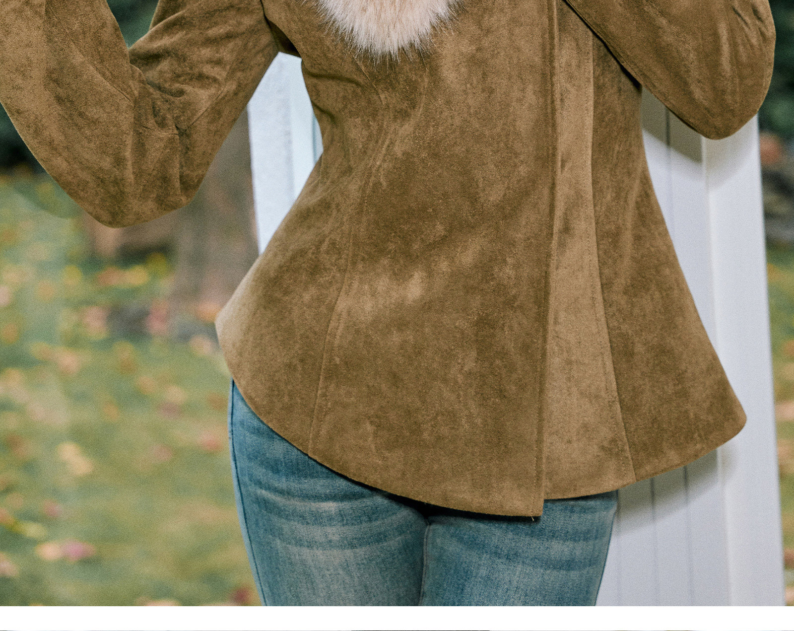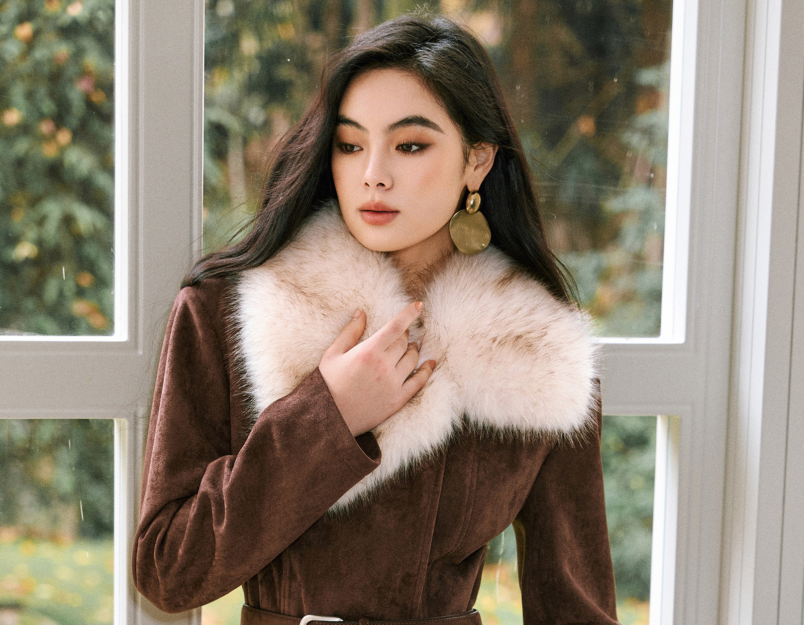 Wangxo|Vintage Matte Suede Texture|Dyed Eco-Friendly Fur Collar White Duck down Waist-Cinching down Jacket
