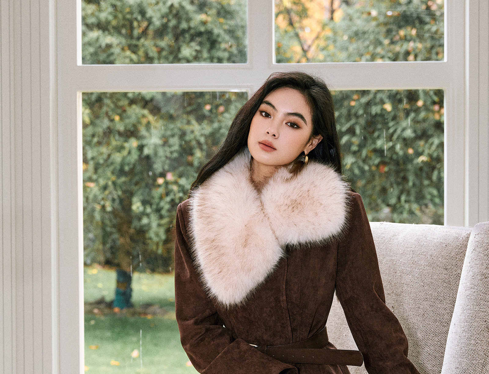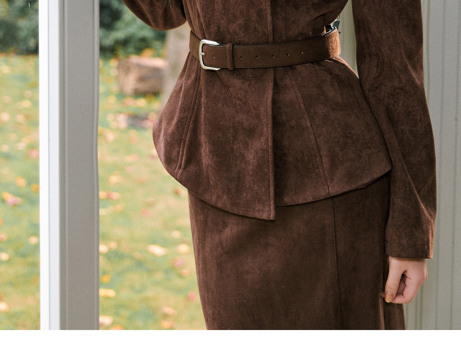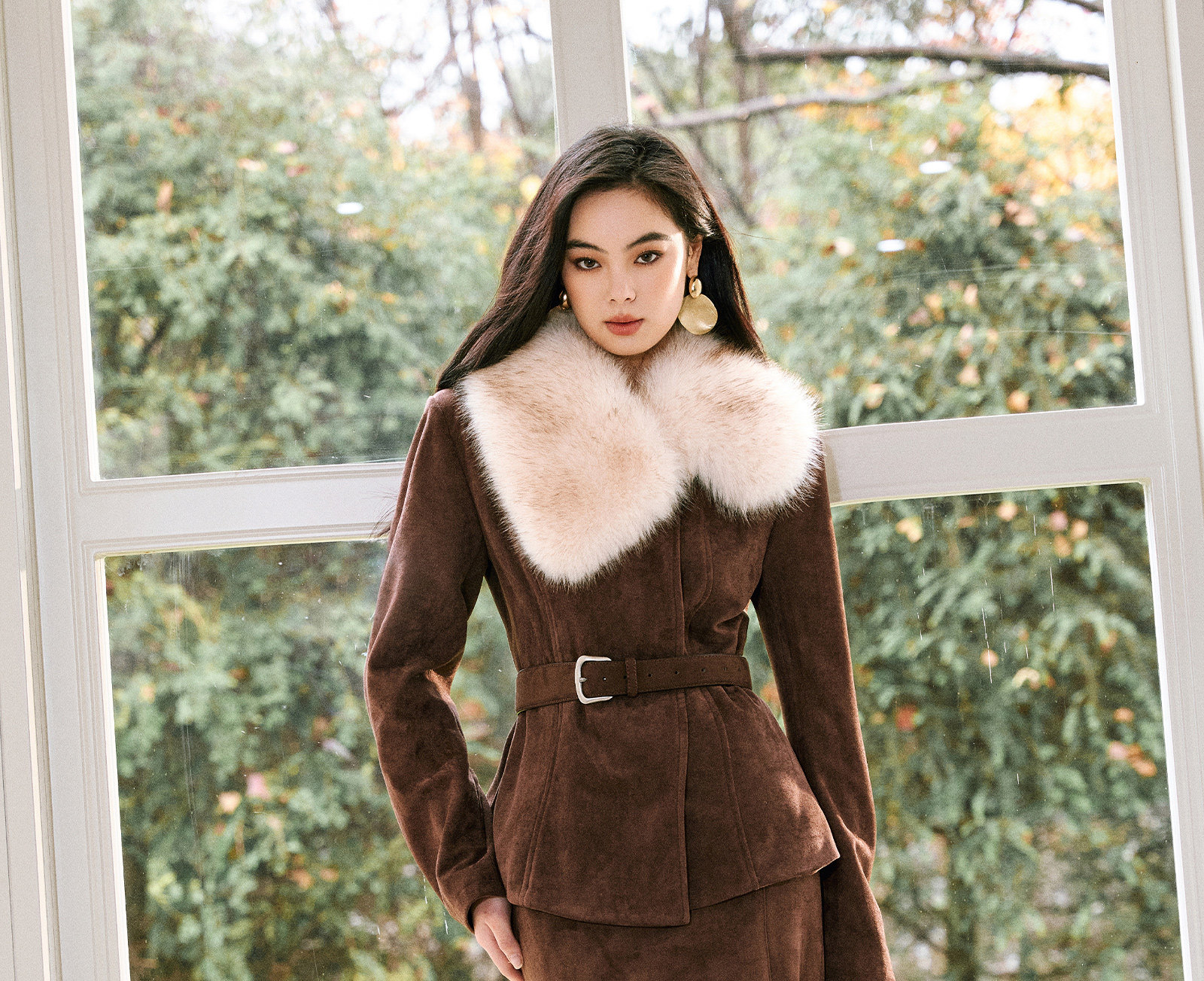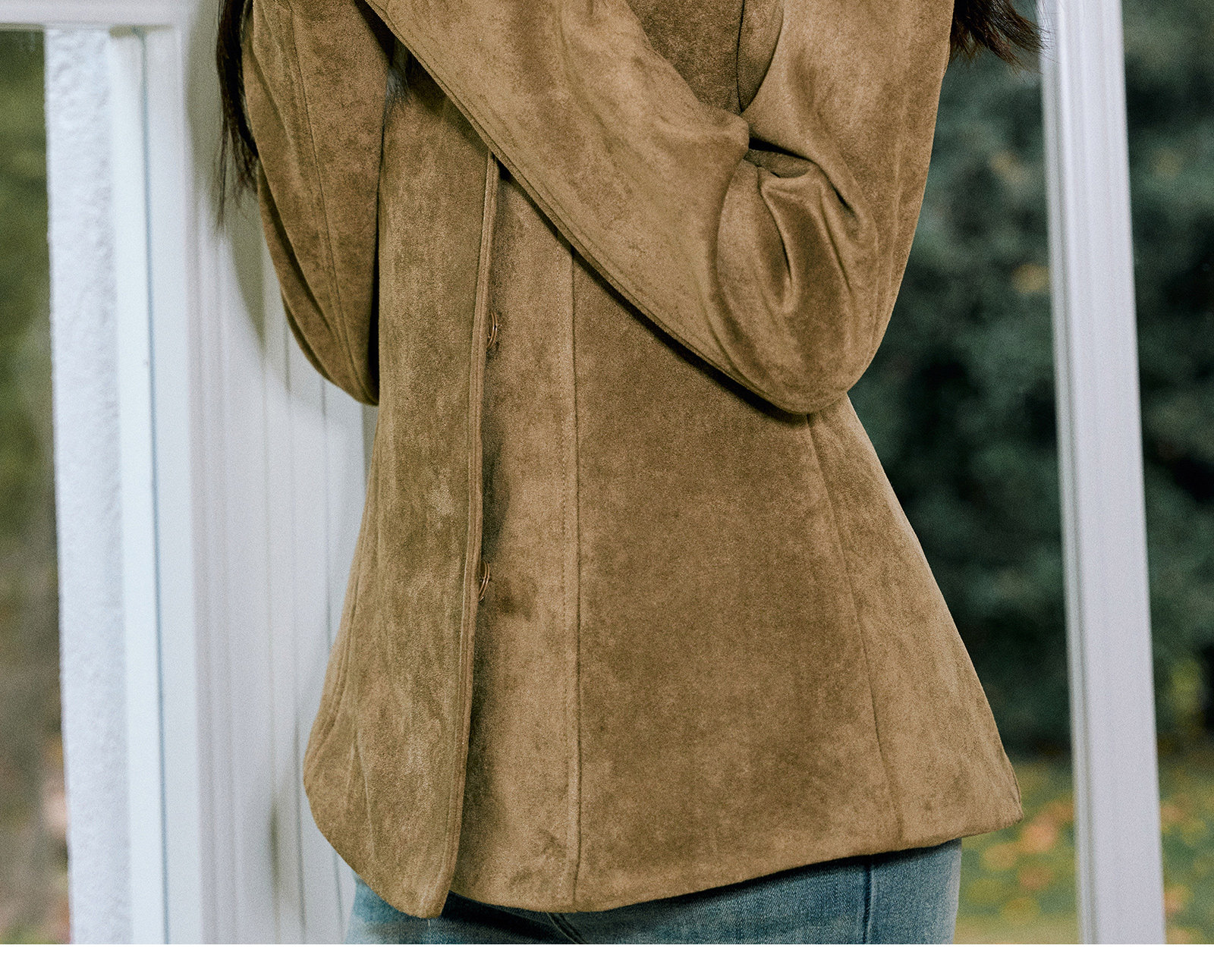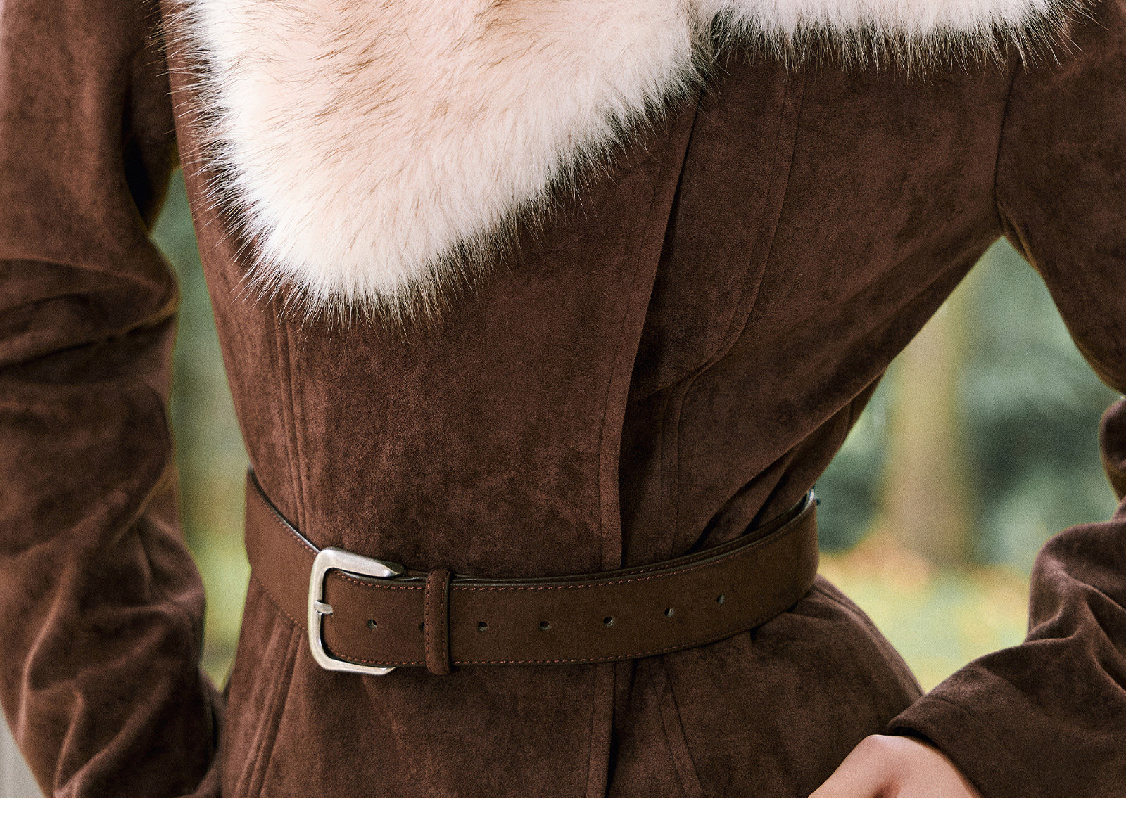 Wangxo|Vintage Matte Suede Texture|Dyed Eco-Friendly Fur Collar White Duck down Waist-Cinching down Jacket