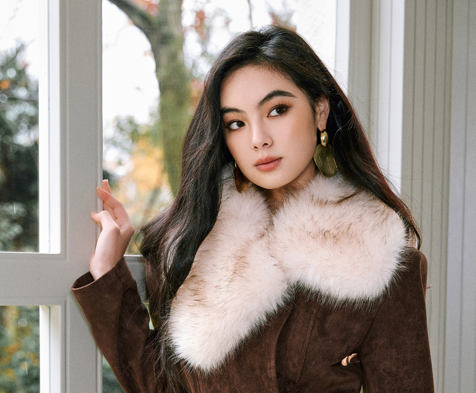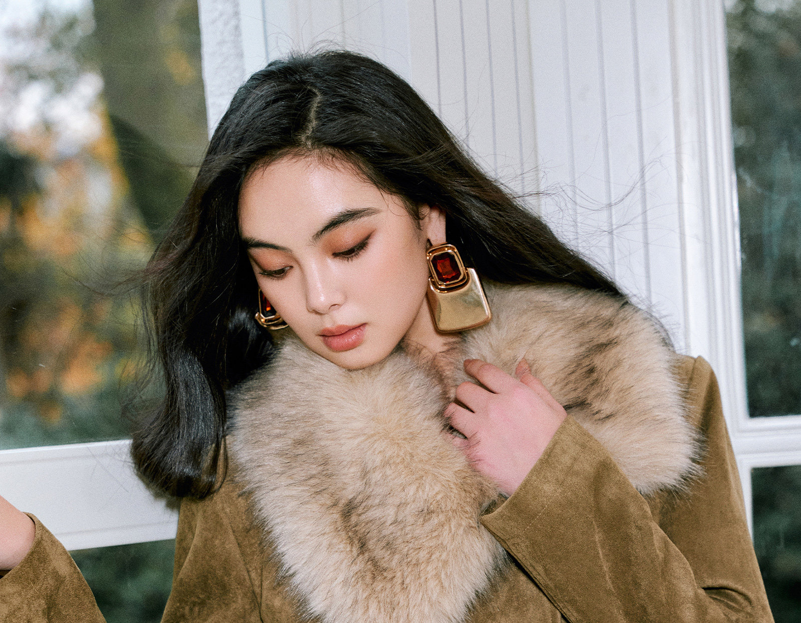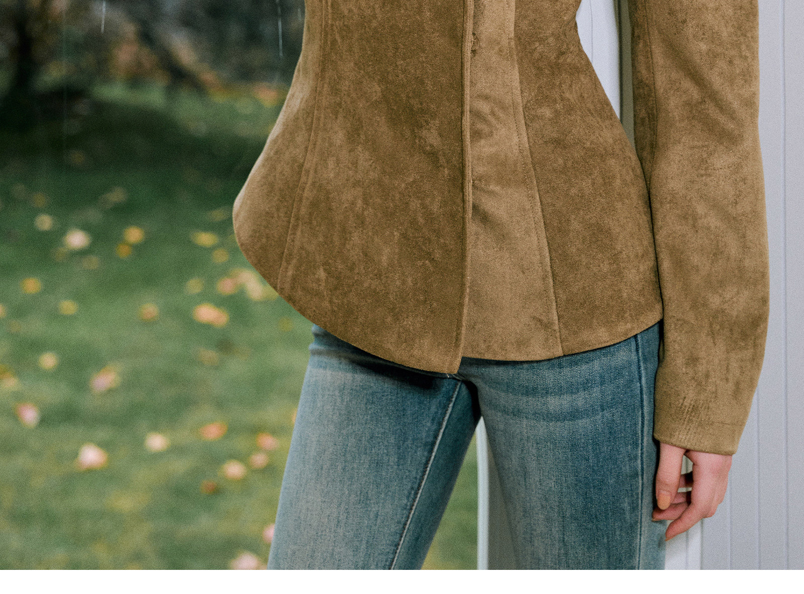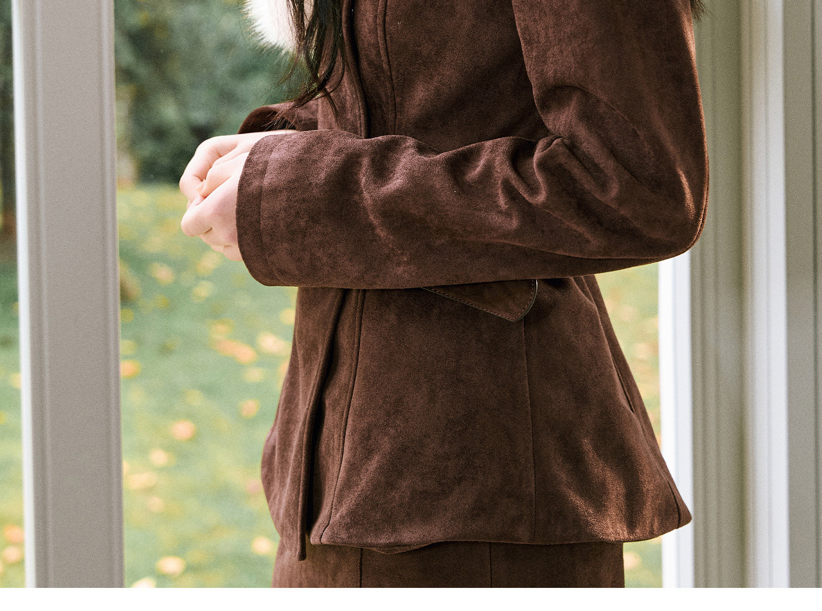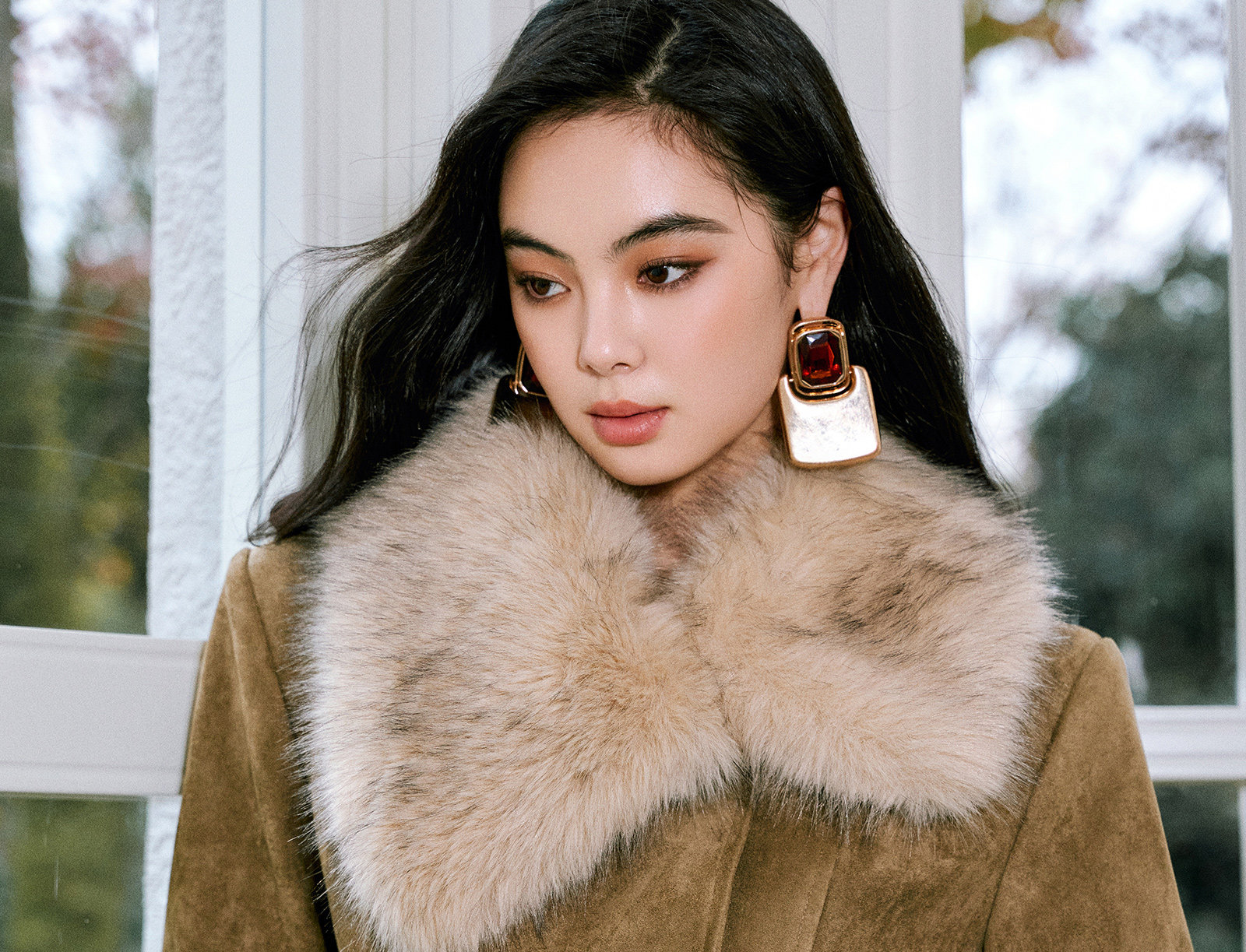 Wangxo|Vintage Matte Suede Texture|Dyed Eco-Friendly Fur Collar White Duck down Waist-Cinching down Jacket