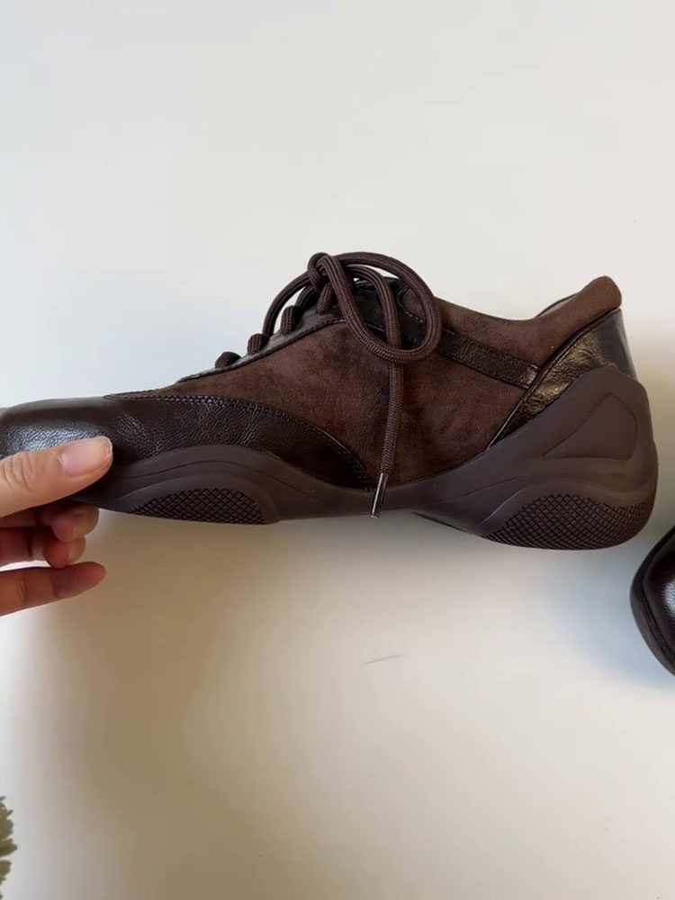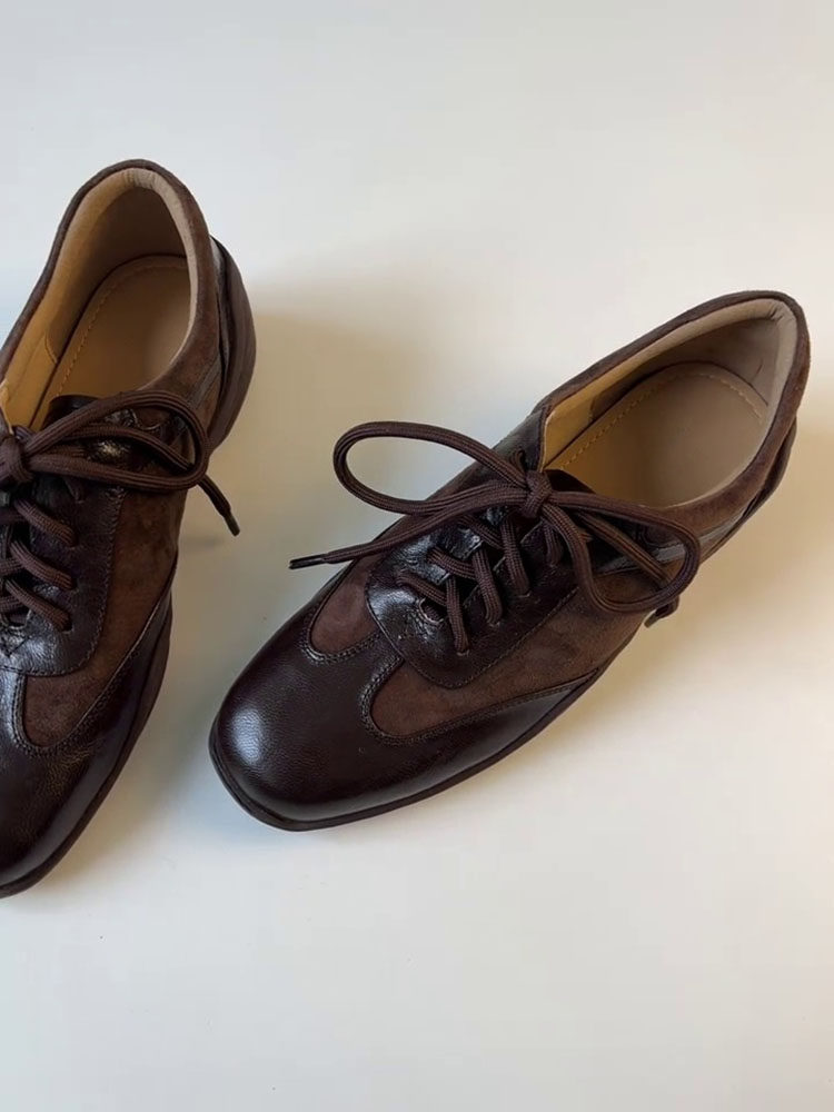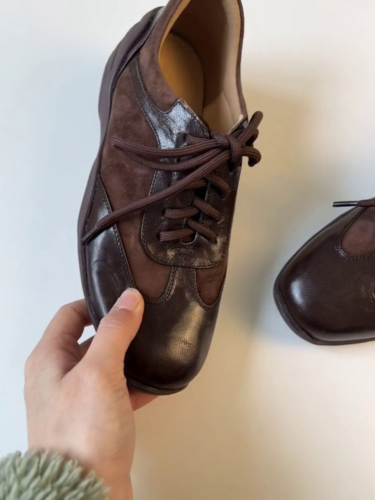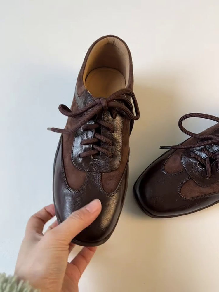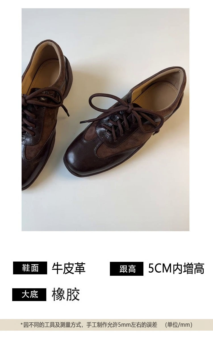 Inner Height Increase of 5cm, British Style, French Retro Lace-Up Small Leather Shoes, Genuine Leather Square Toe Casual Sports Deep-Cut Single Shoes for Women