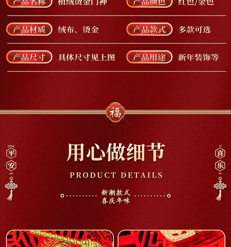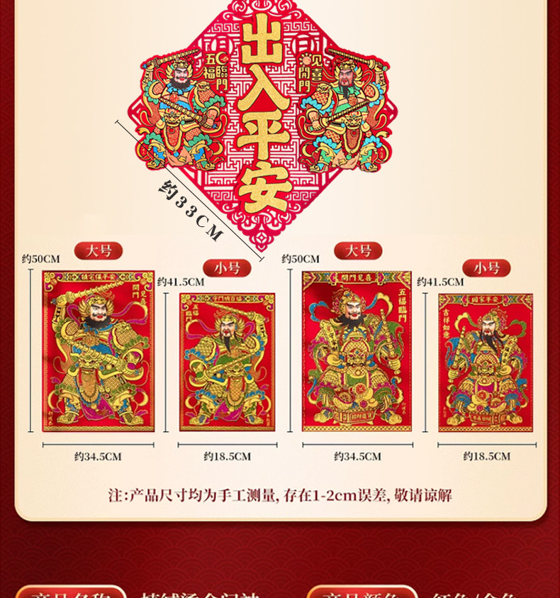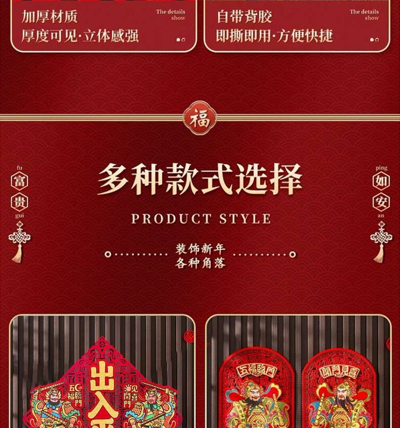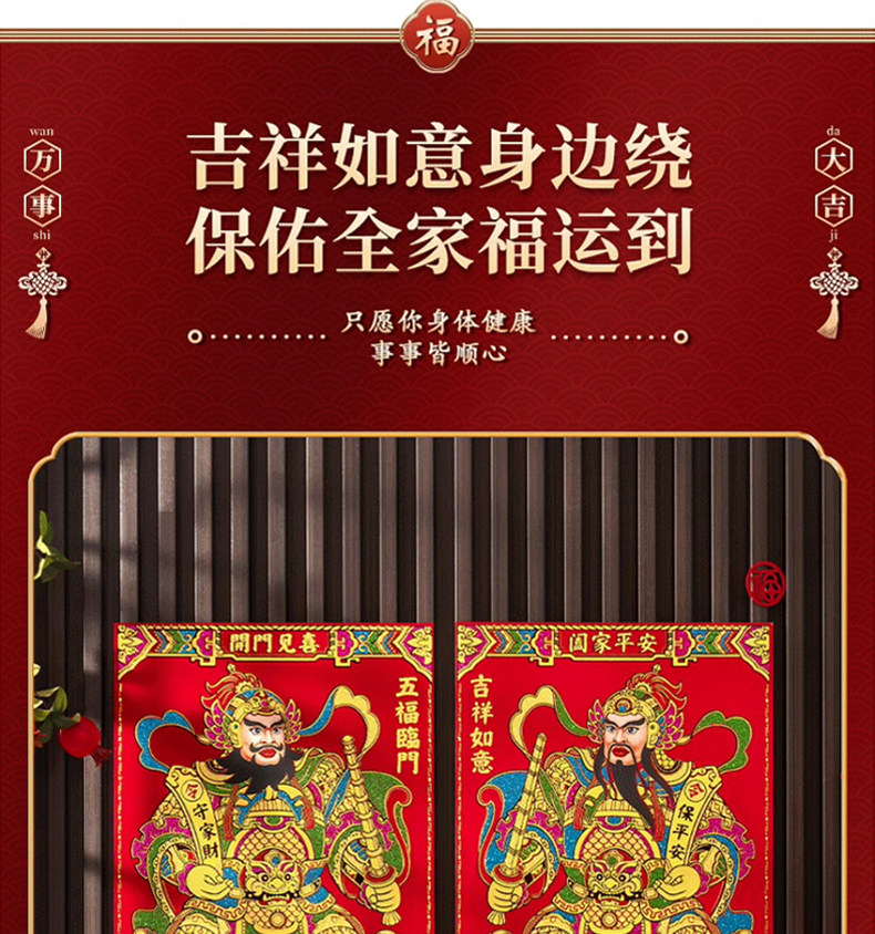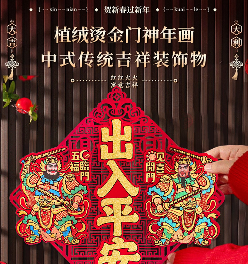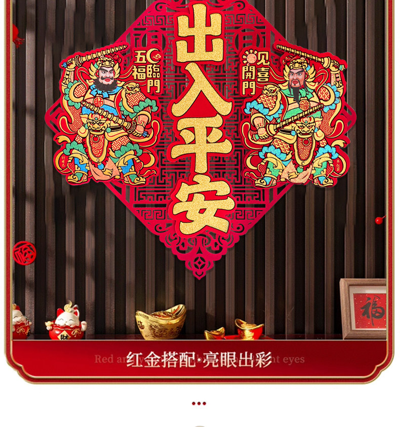 立体出入平安马年门贴2026新款镂空自粘春节斗方门神门口福字贴纸