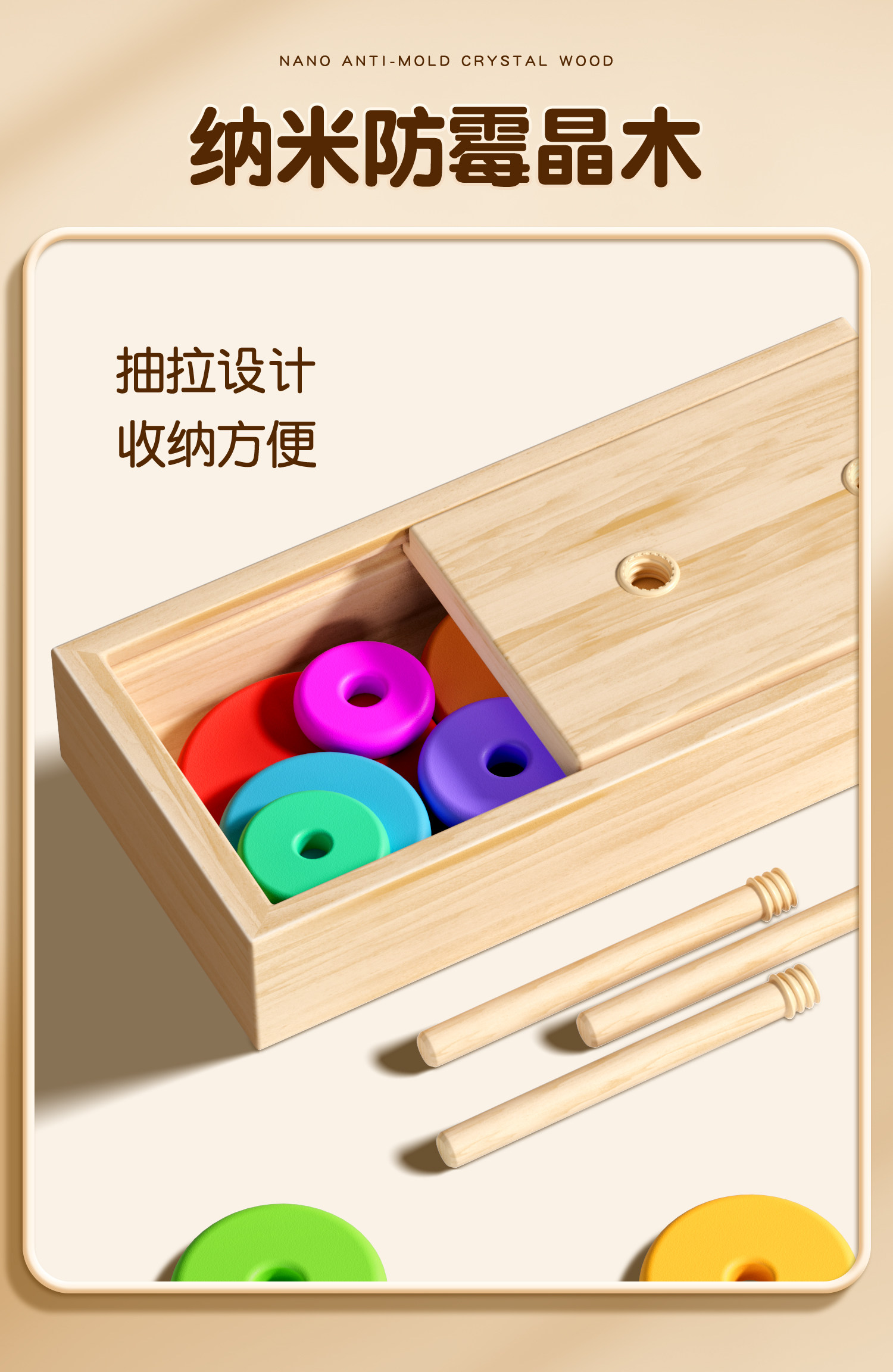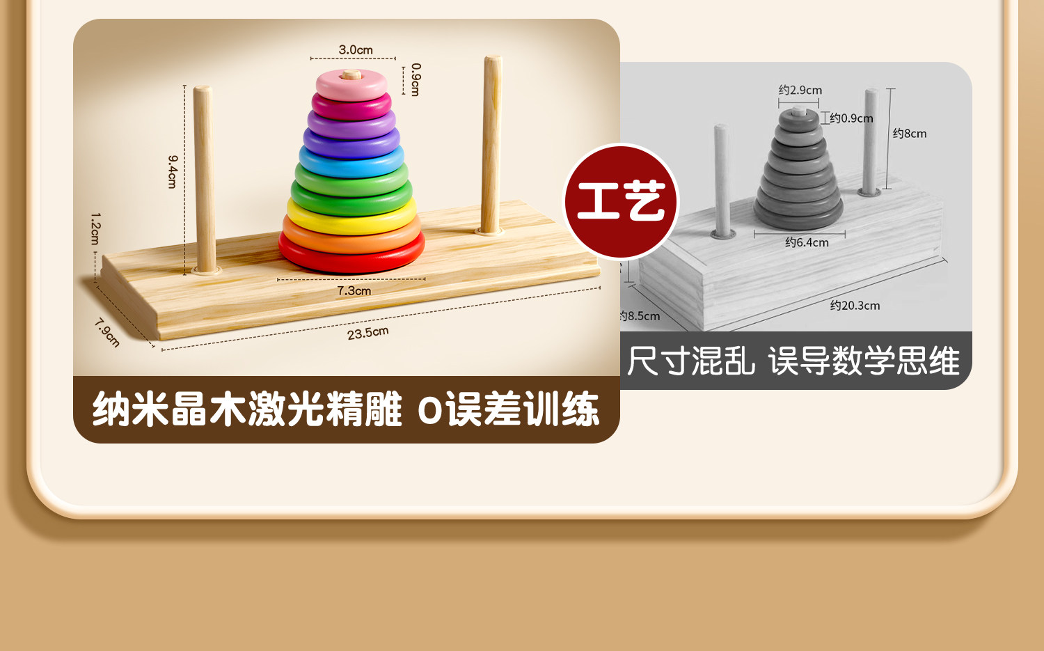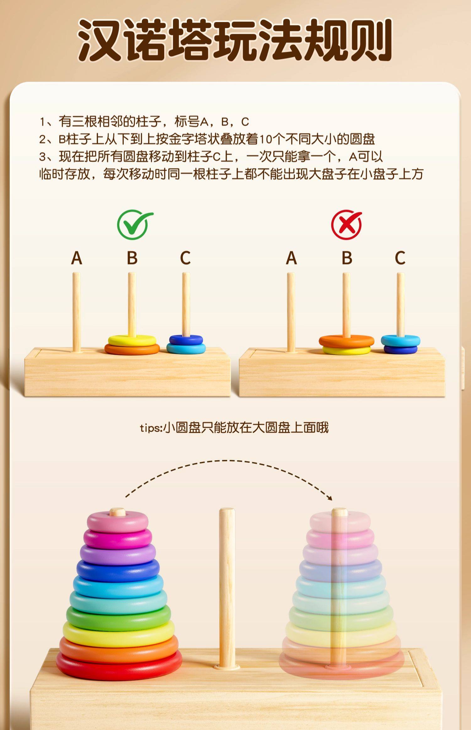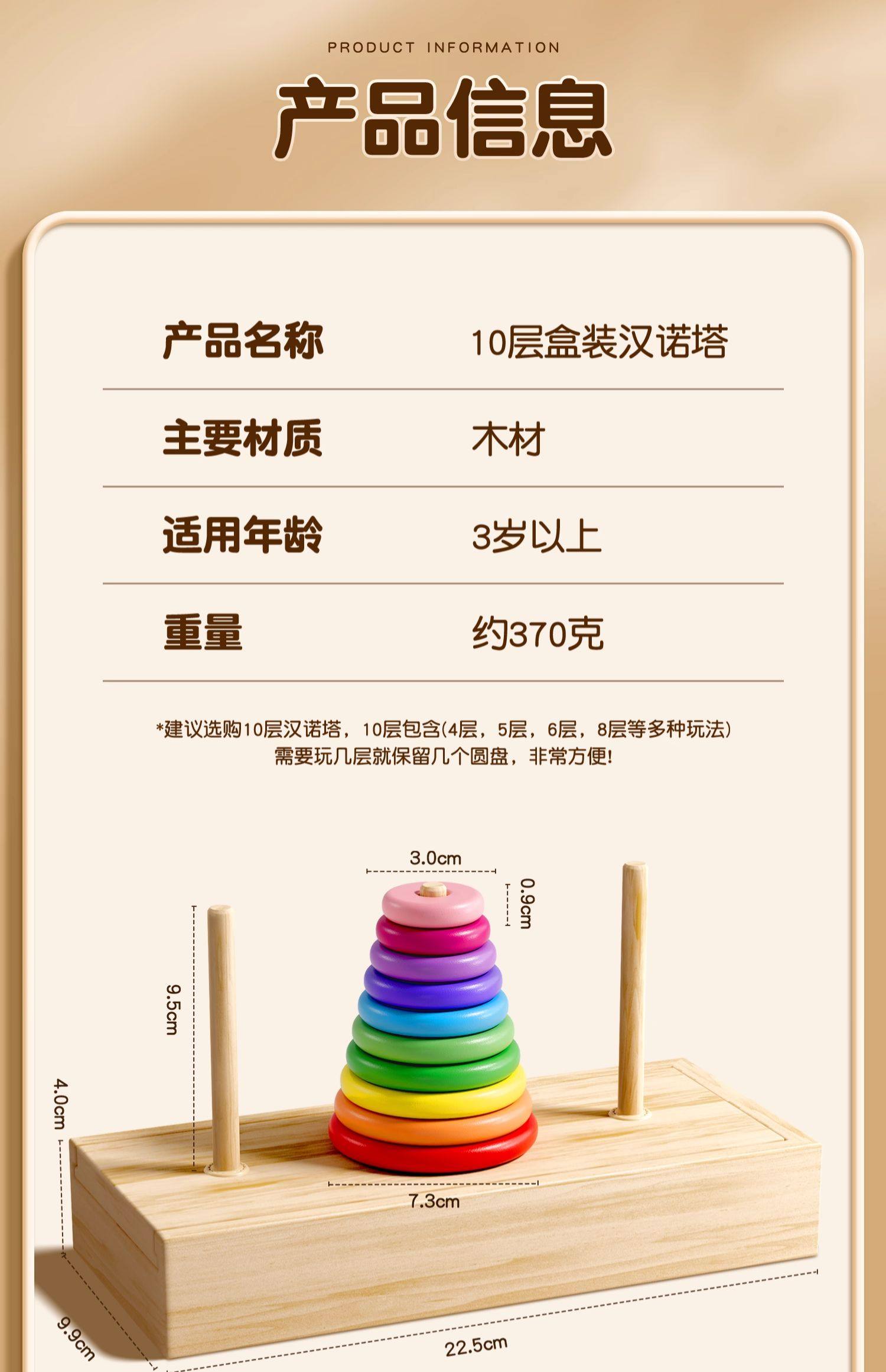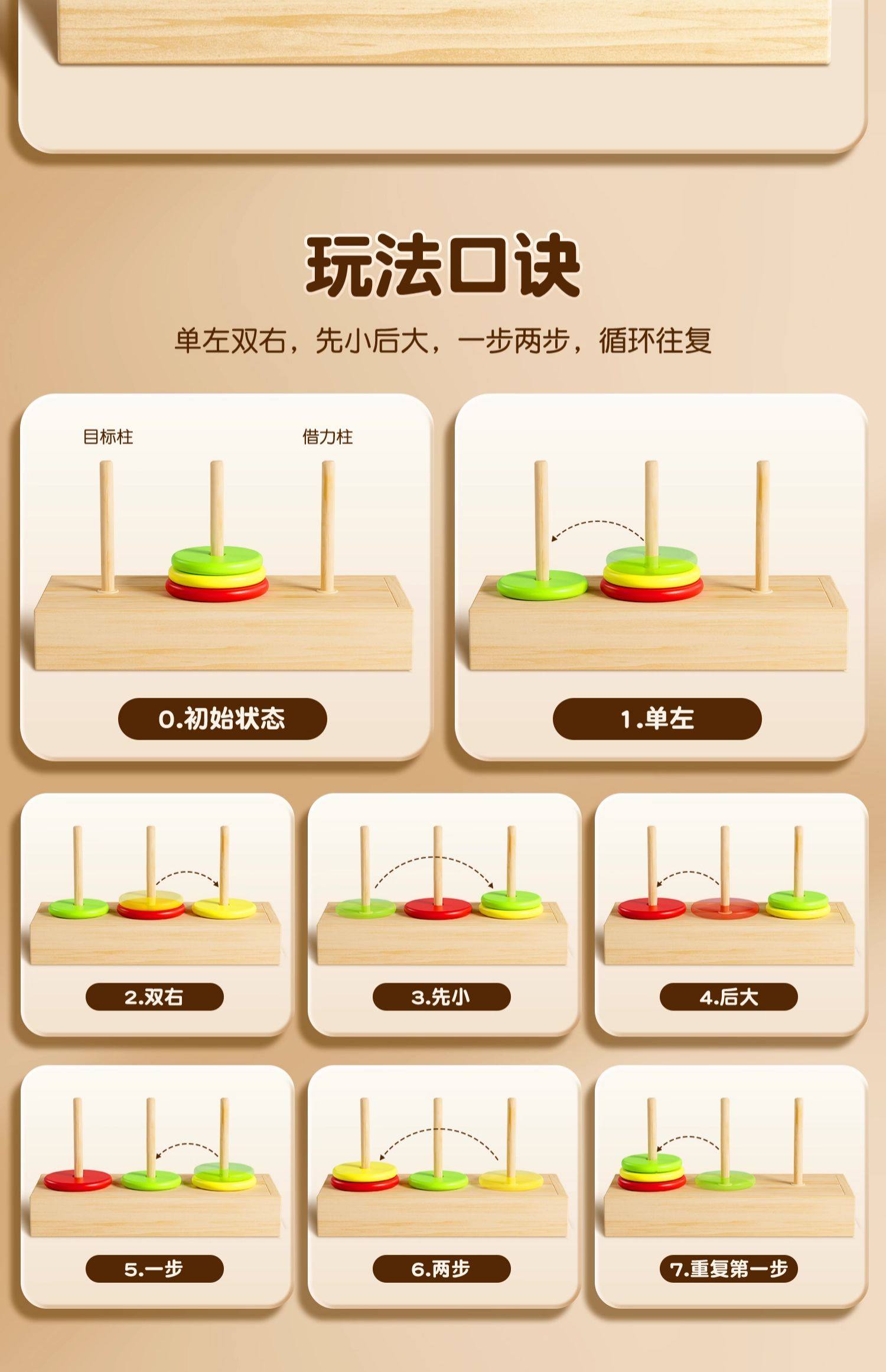 汉诺塔小学生10层一二年级比赛专用木质6层8层10层儿童益智大积木