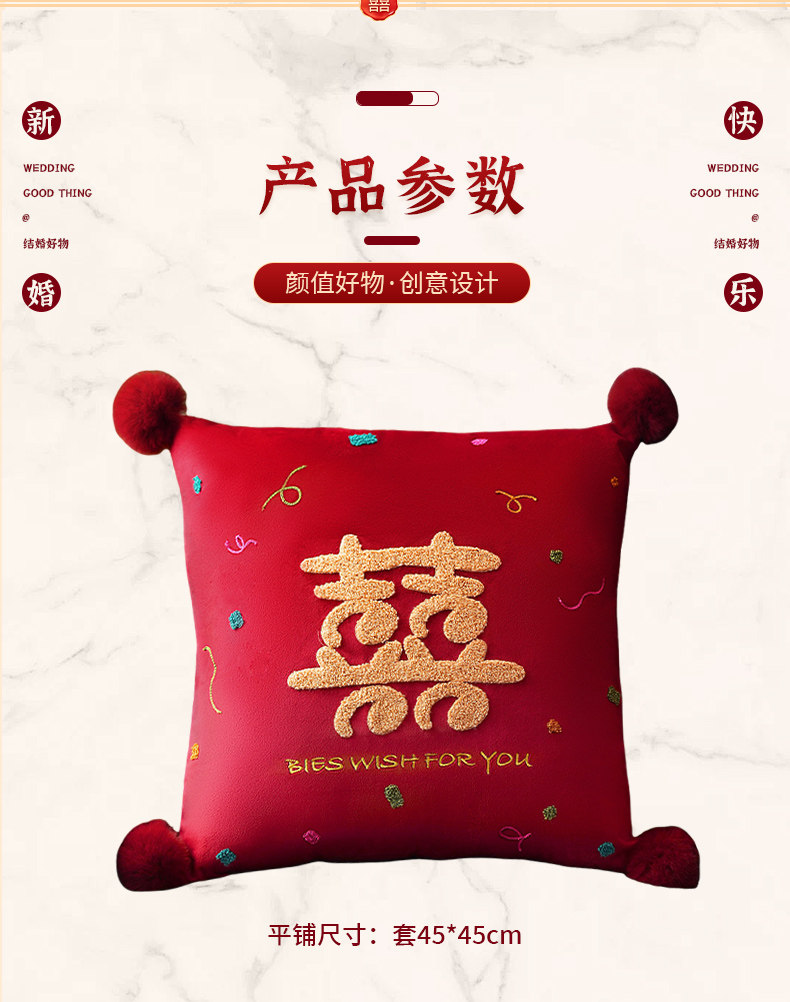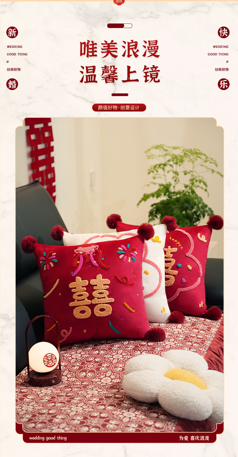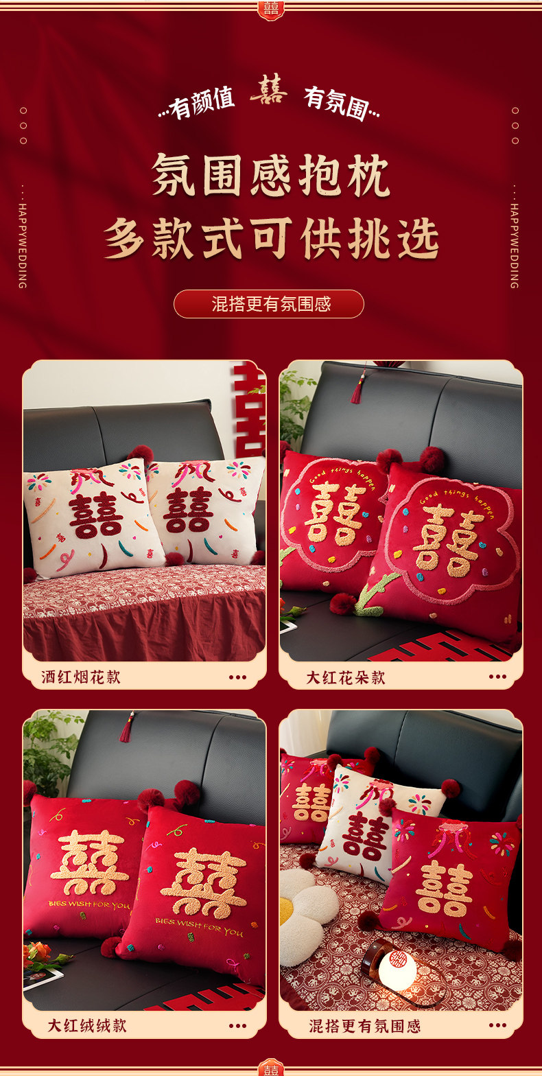 高级喜字多巴抱枕结婚一对婚房卧室客厅装饰布置靠枕送新婚礼物事