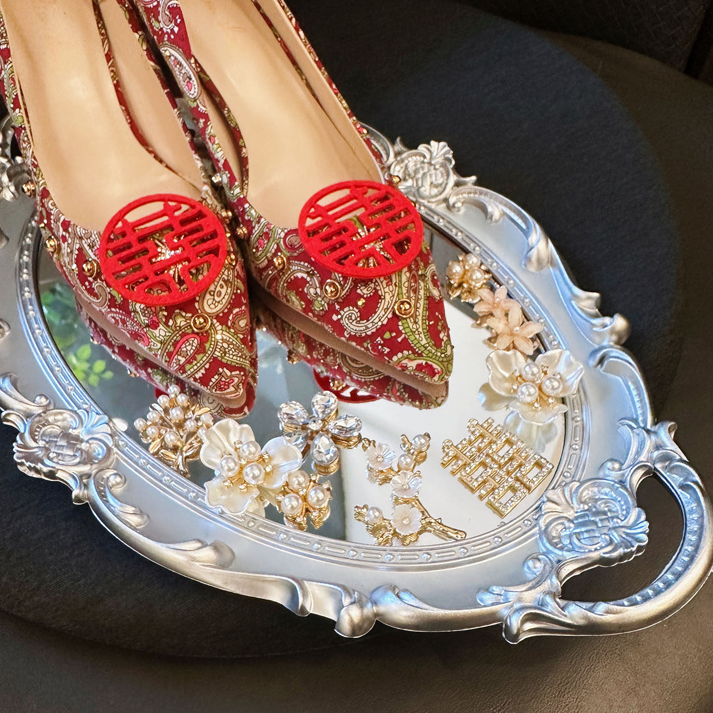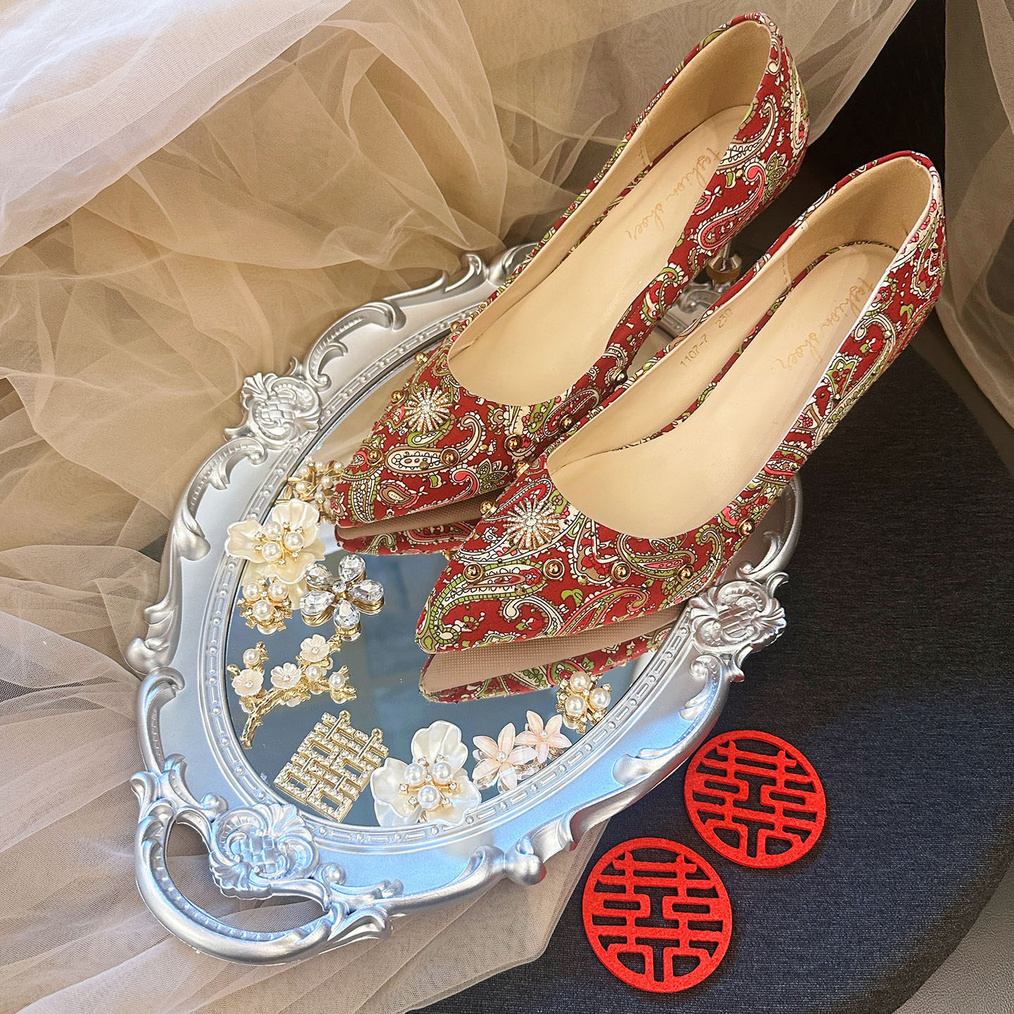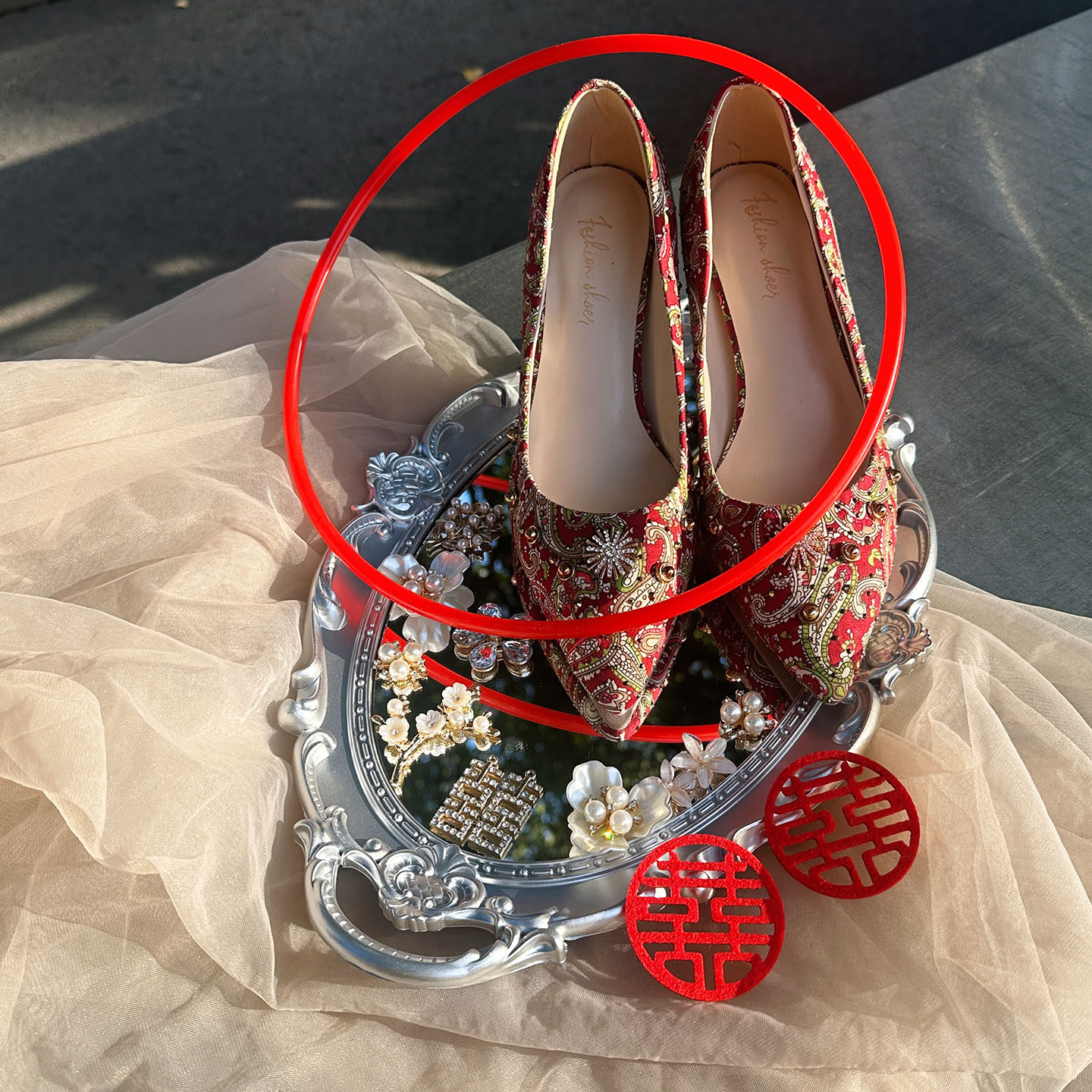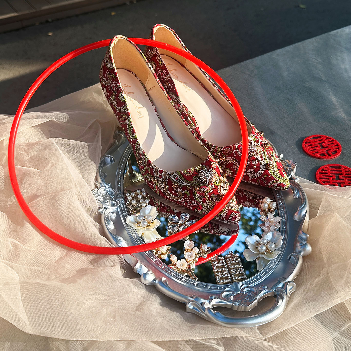 2025 New Wedding Room Decoration and Arrangement Supplies, Wedding Shoe Display Tray, Mirror Ring Game Props