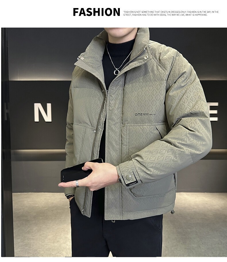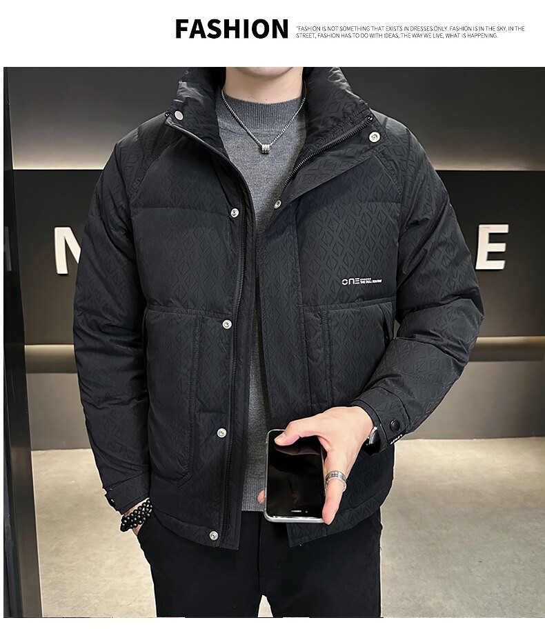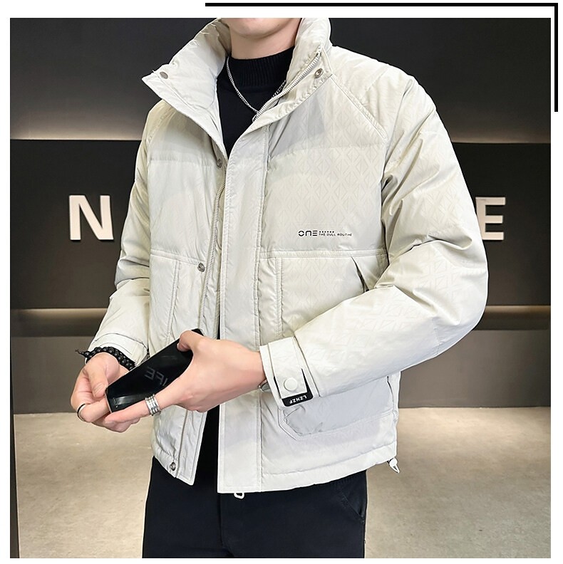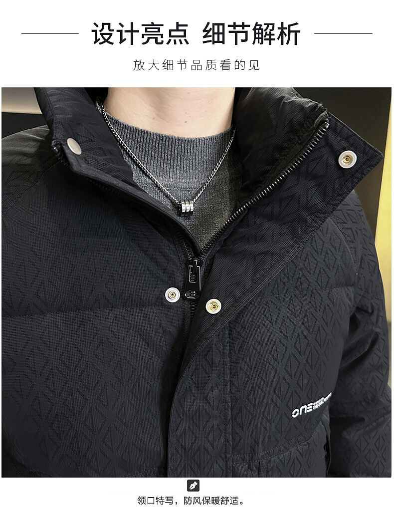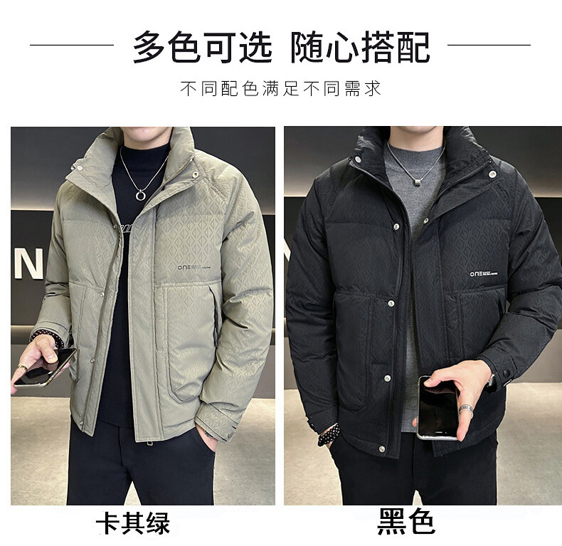Romon Men's Stand-Up Collar down Jacket, New Winter Casual Printed Thickened Warm Duck down Workwear Cold-Proof Trendy Coat