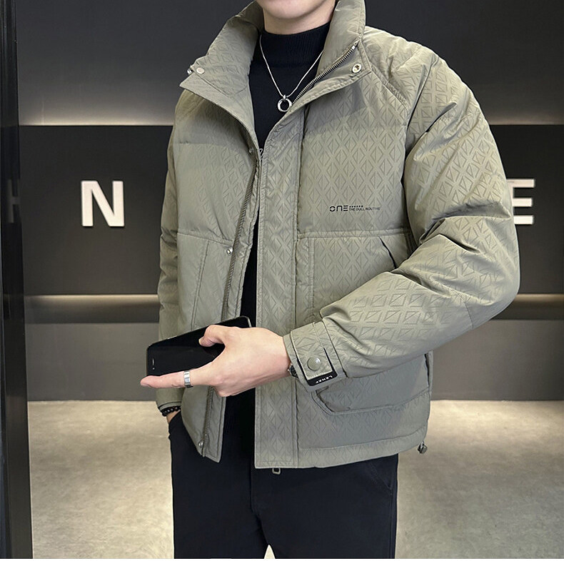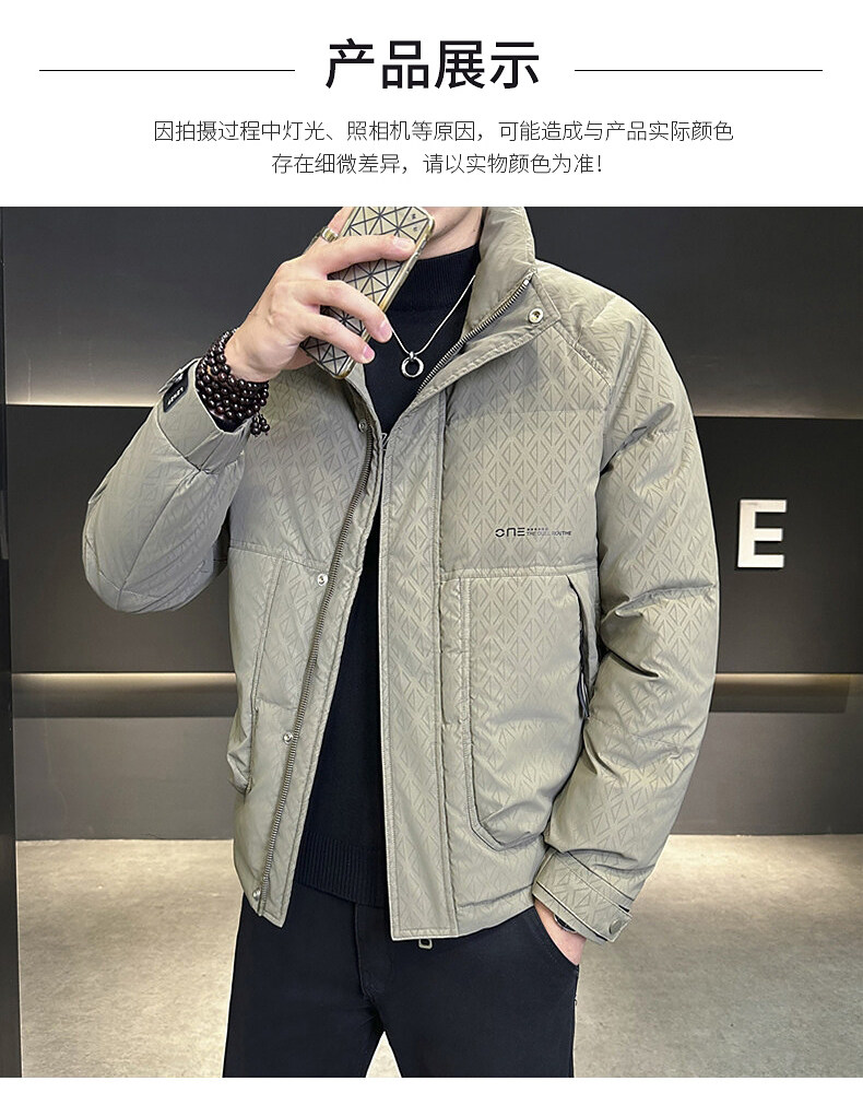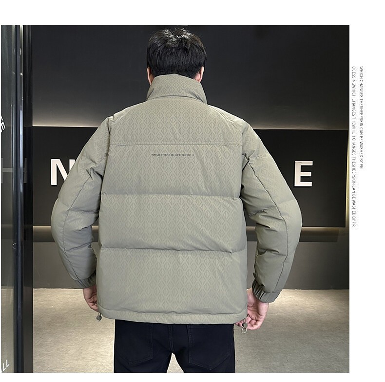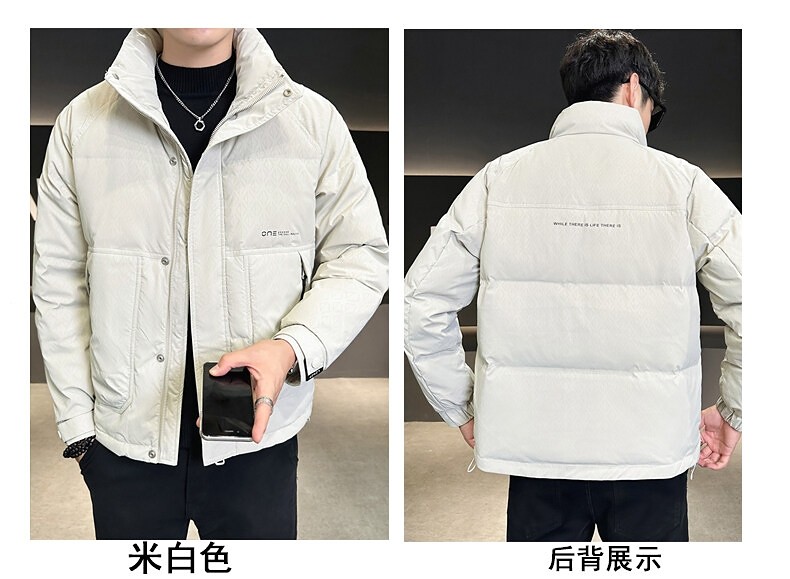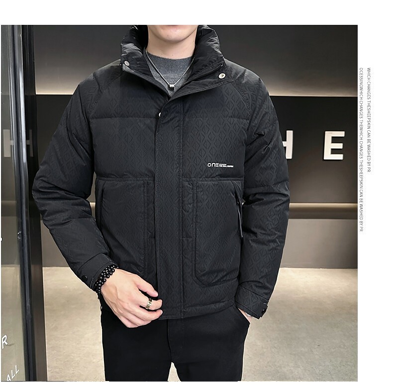 Romon Men's Stand-Up Collar down Jacket, New Winter Casual Printed Thickened Warm Duck down Workwear Cold-Proof Trendy Coat