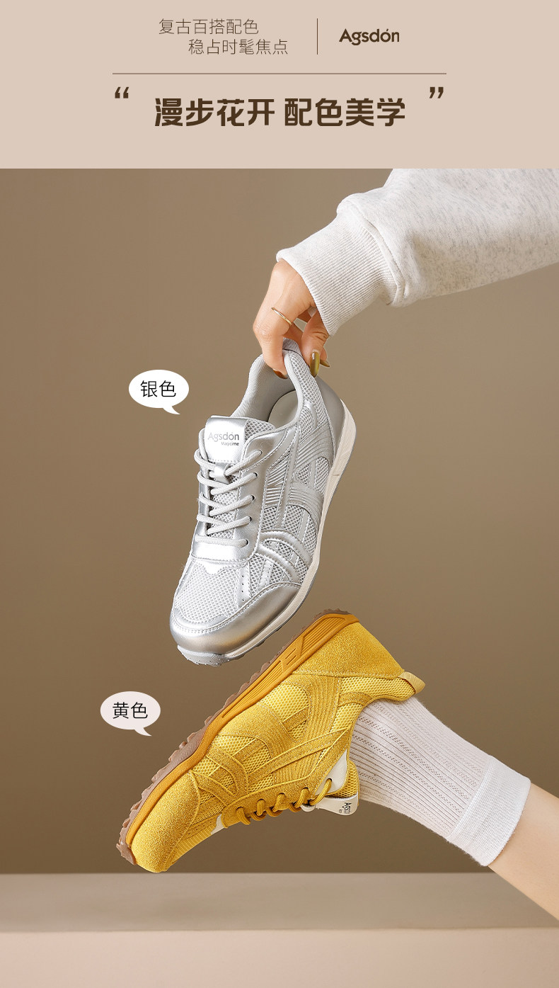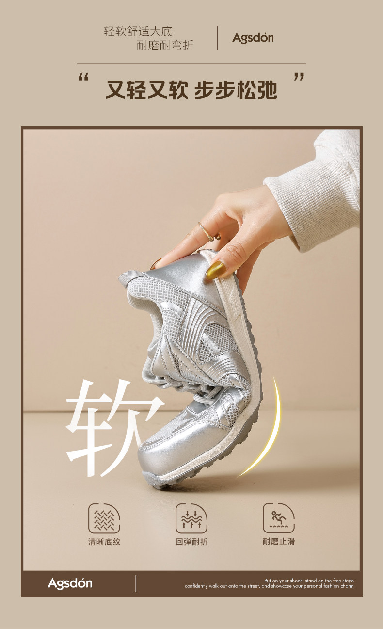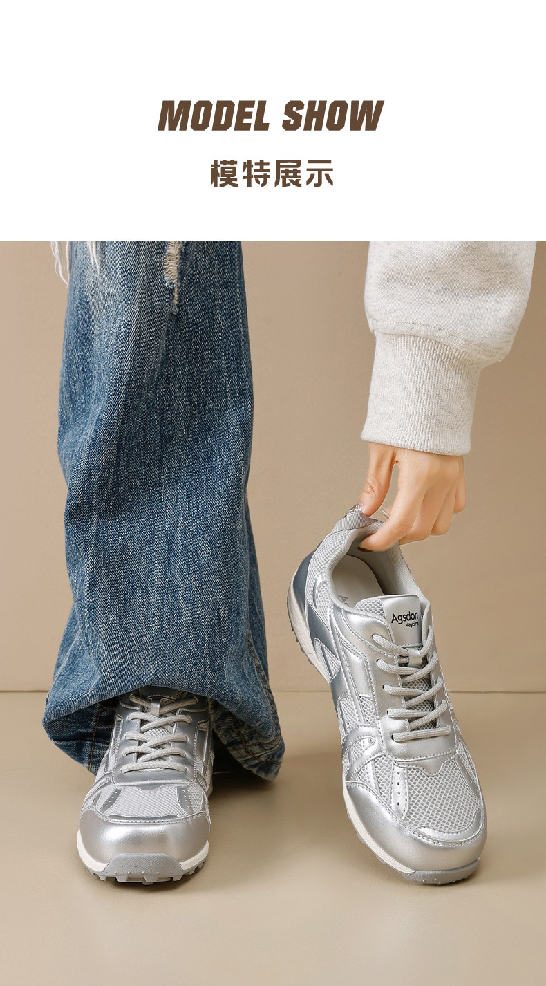 Augu Shiden lässige moralische Trainingsschuhe für Frauen 2026 neue Frühlingsfrauenschuhe silberne Waldschuhe rutschfeste Sportschuhe