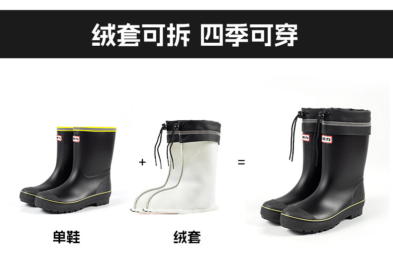 Zurückziehende Herren-Regenstiefel mit mittlerer Röhre, rutschfeste Wasserschuhe zum Angeln im Freien, wasserdichte Oberbekleidung zum Reisen und Bergsteigen sowie samtwarme Regenstiefel