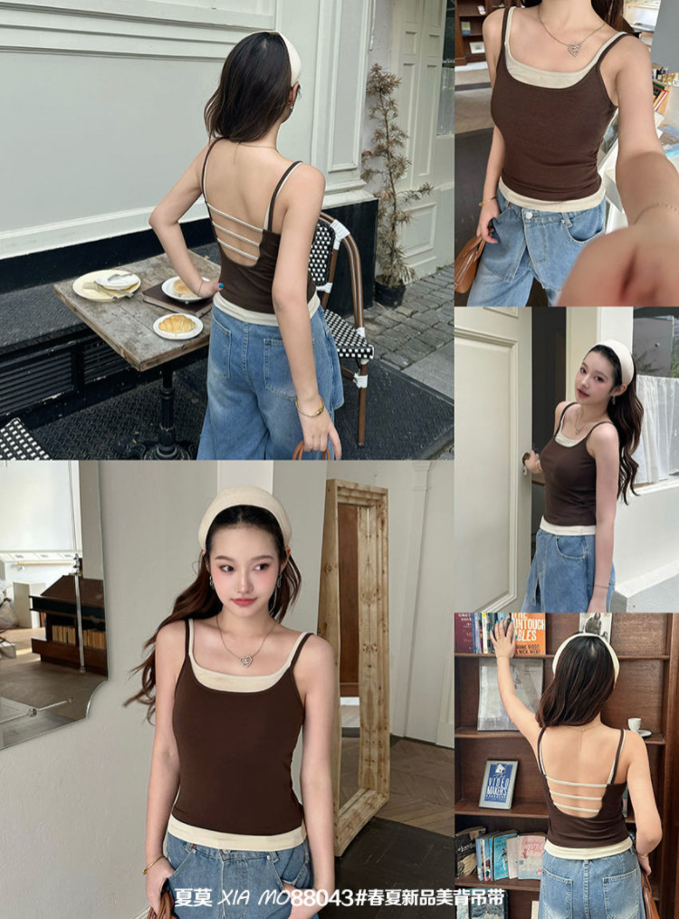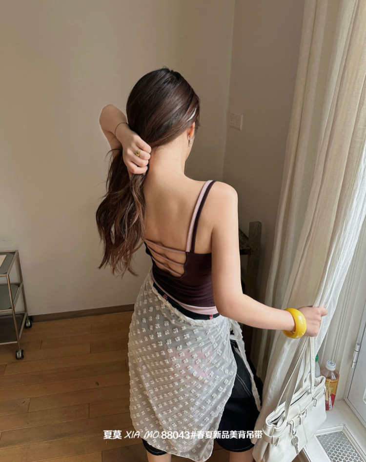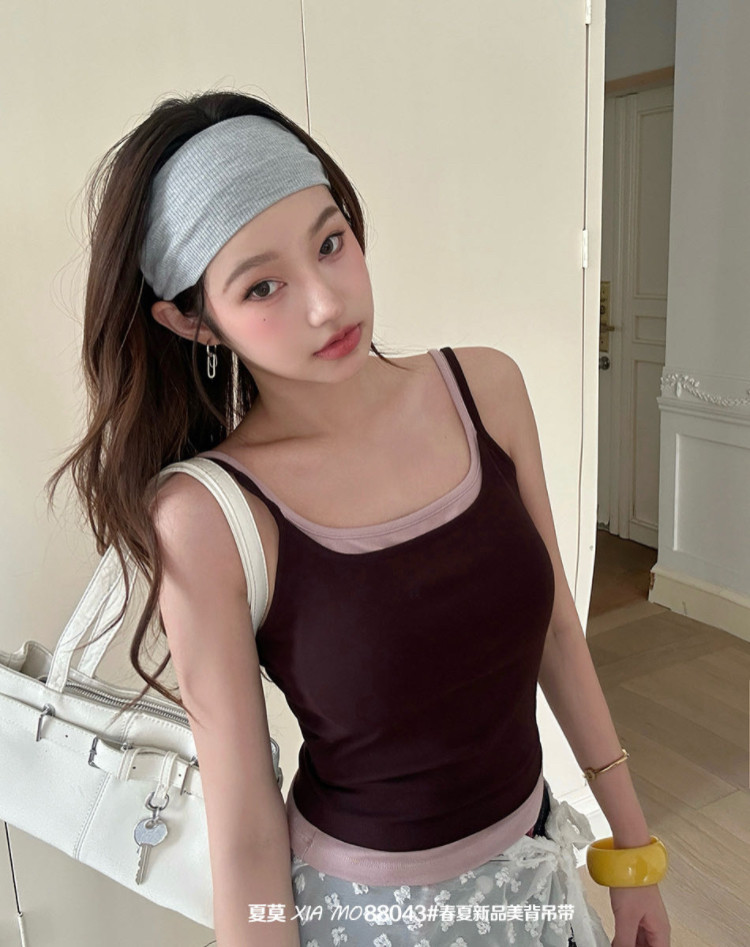 Искусственный двухслойный топ-камизоль для женщин с красивой открытой спиной, нижнее белье с красивым бюстгальтером на спине, встроенная базовая подкладка с подушечками для груди, верхняя одежда.