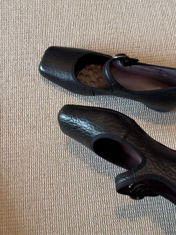 Женские туфли Мэри Джейн из натуральной кожи в ретро-стиле с квадратным носком, скрытым каблуком 5 см и одним ремешком, подходят для повседневной носки.