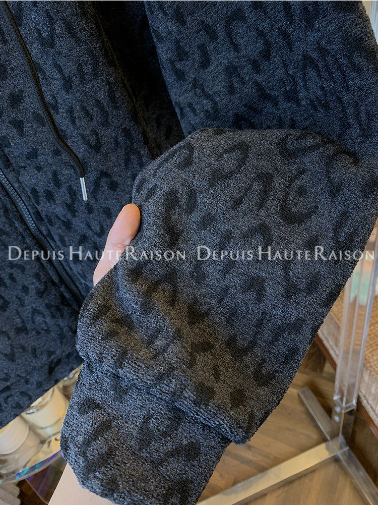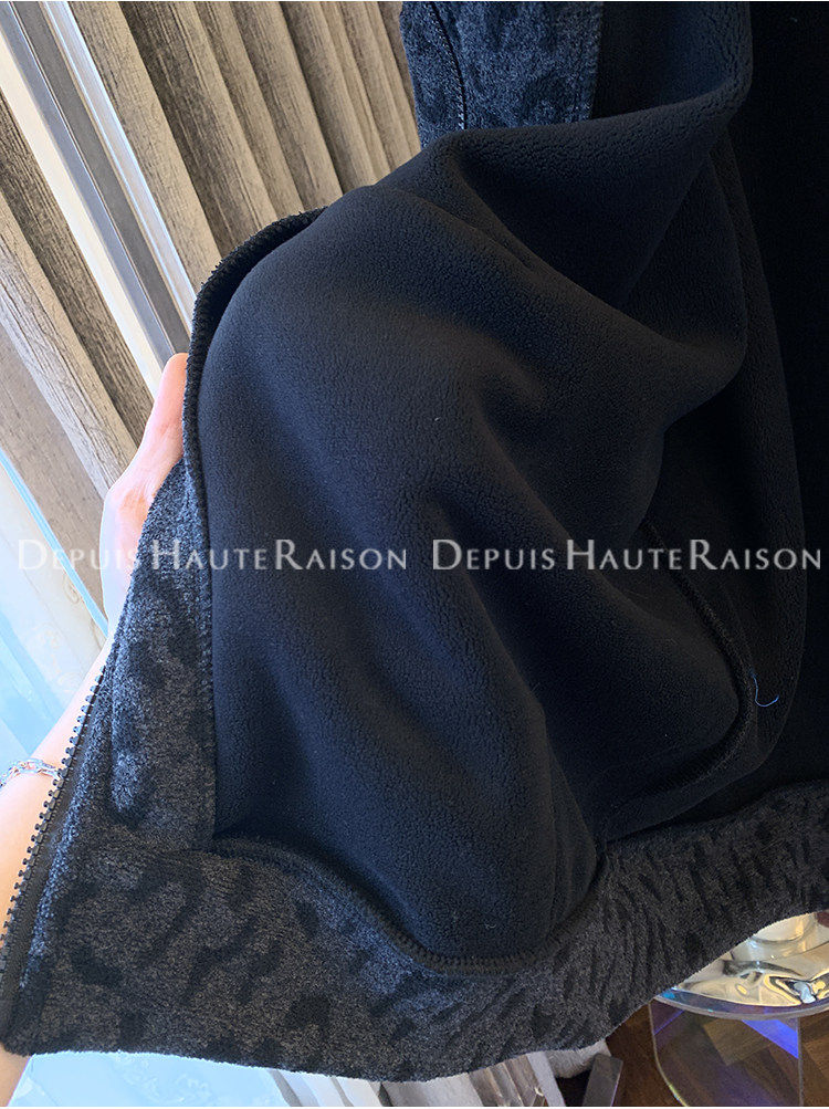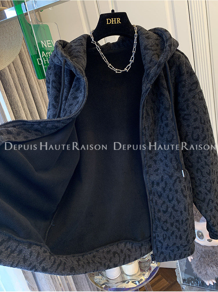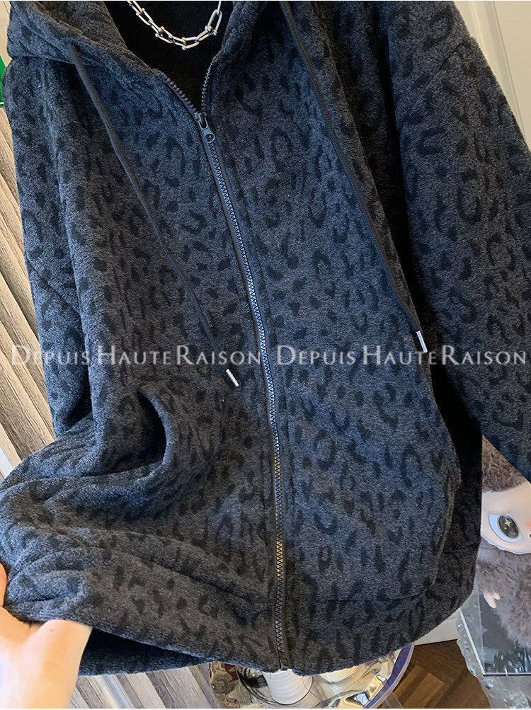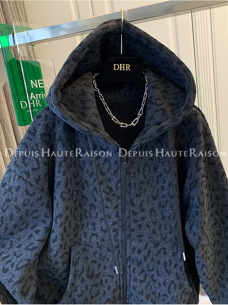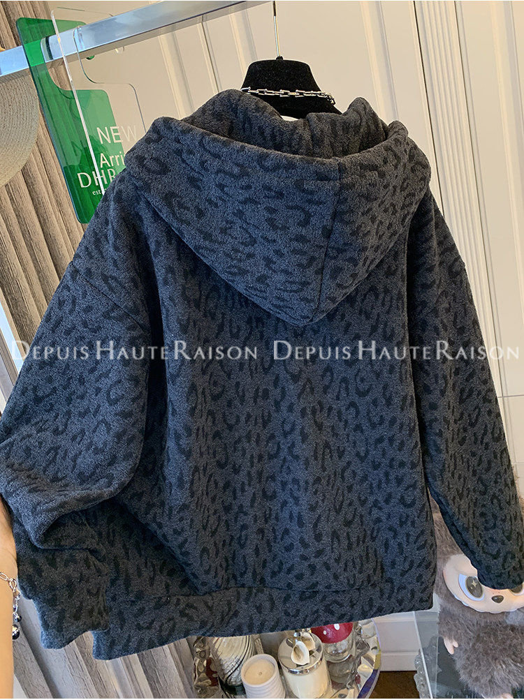Unique Leopard Print Casual Zip-Up Thickened Fleece Hoodie Jacket for Men and Women, Loose Oversized Top for Autumn and Winter