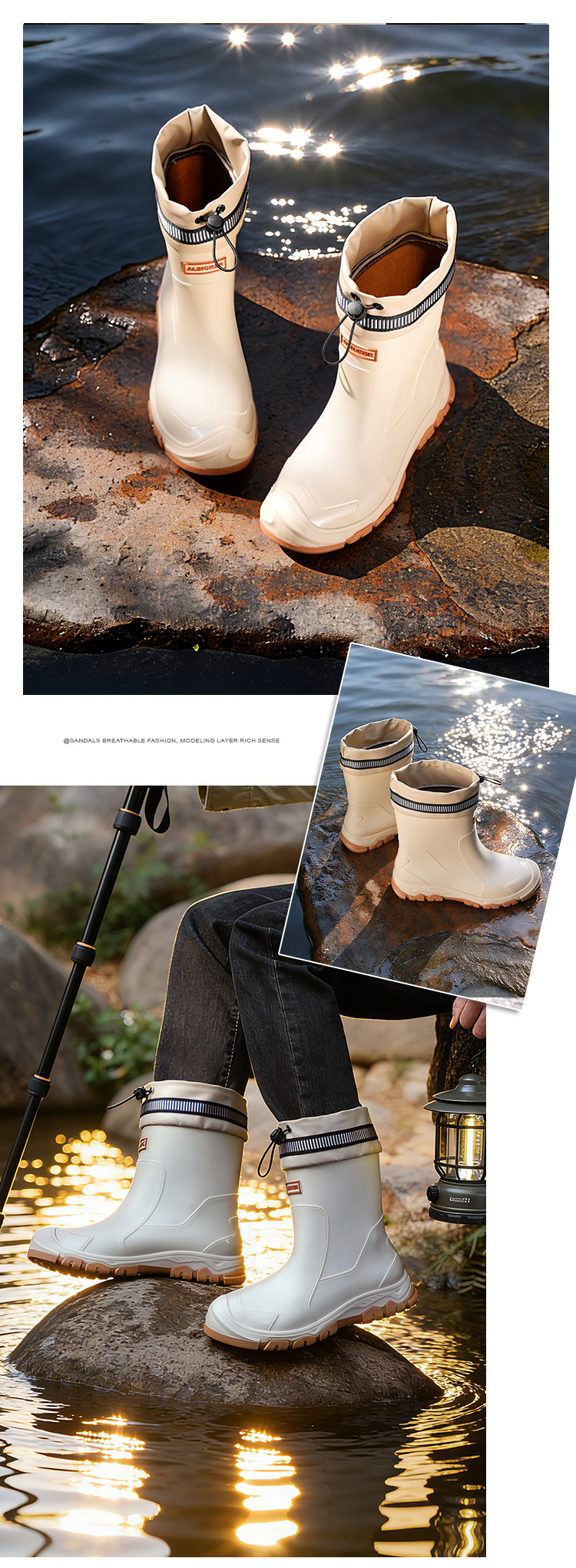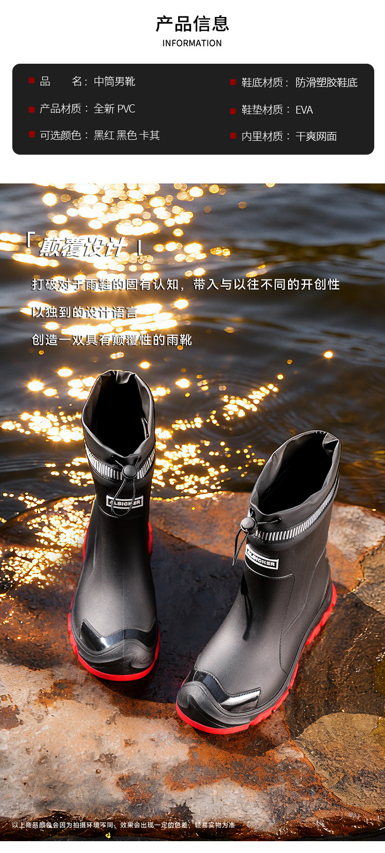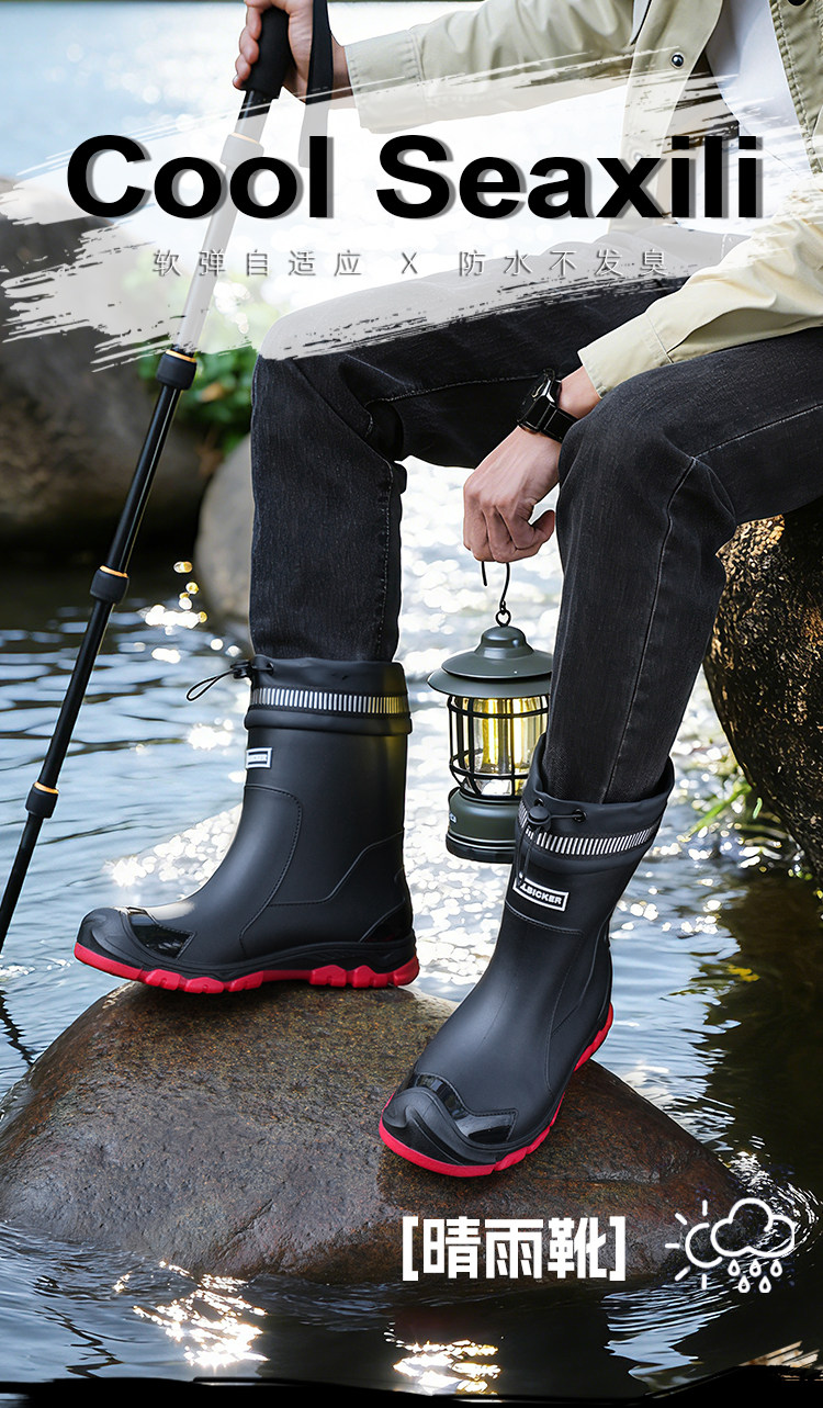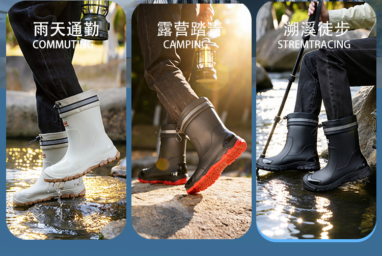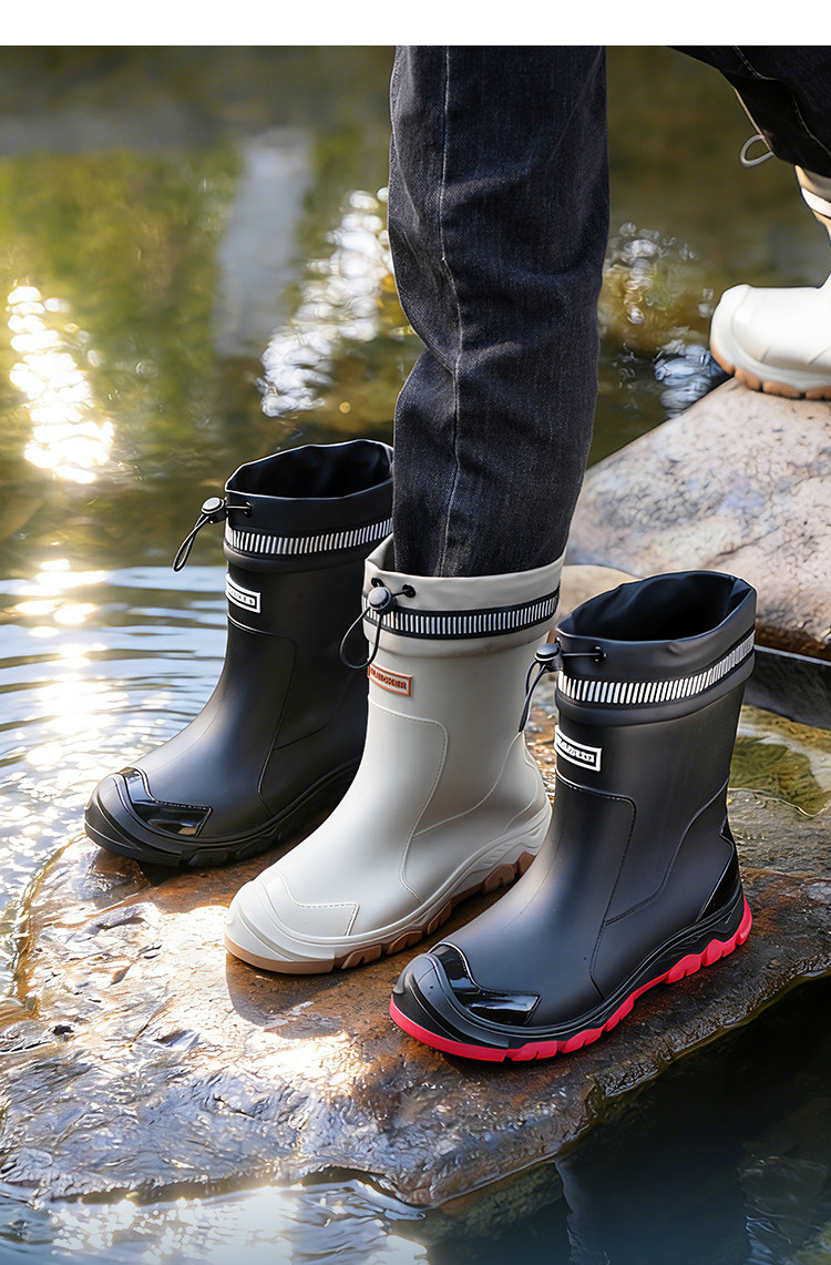Mittelrohr-Regenstiefel für Herren, wasserdichte Outdoor-Herren-Angelarbeit, neue verschleißfeste, modische, rutschfeste Regenstiefel, Küchengummischuhe