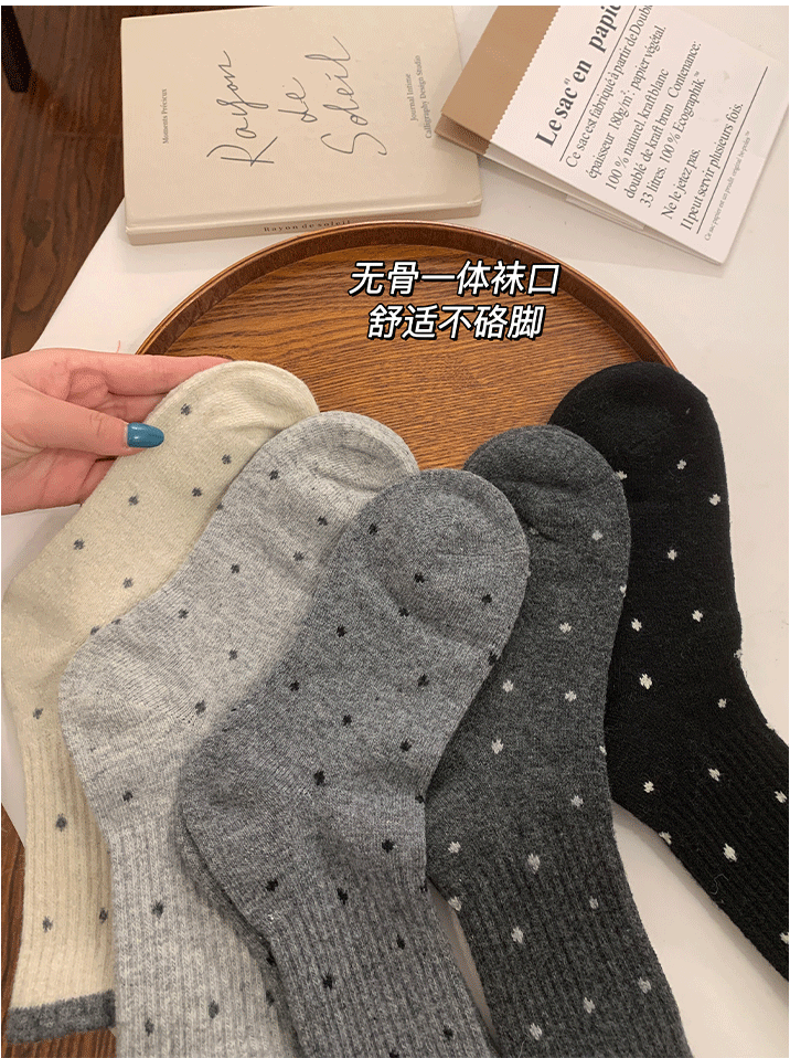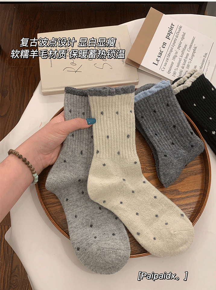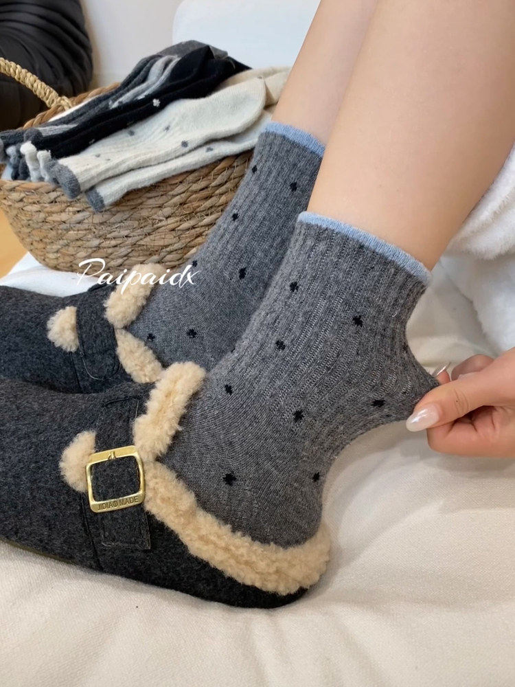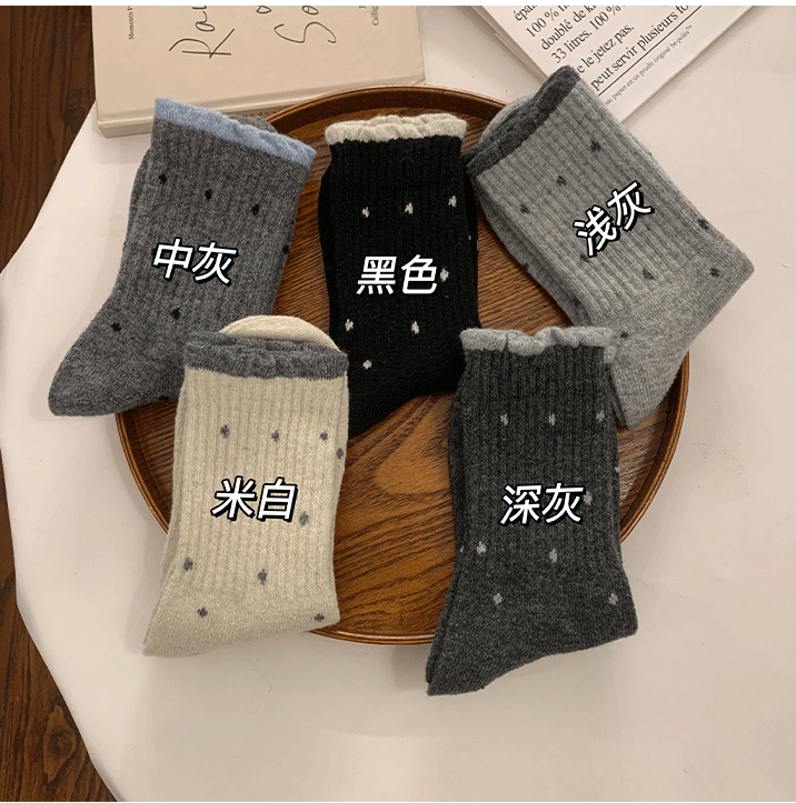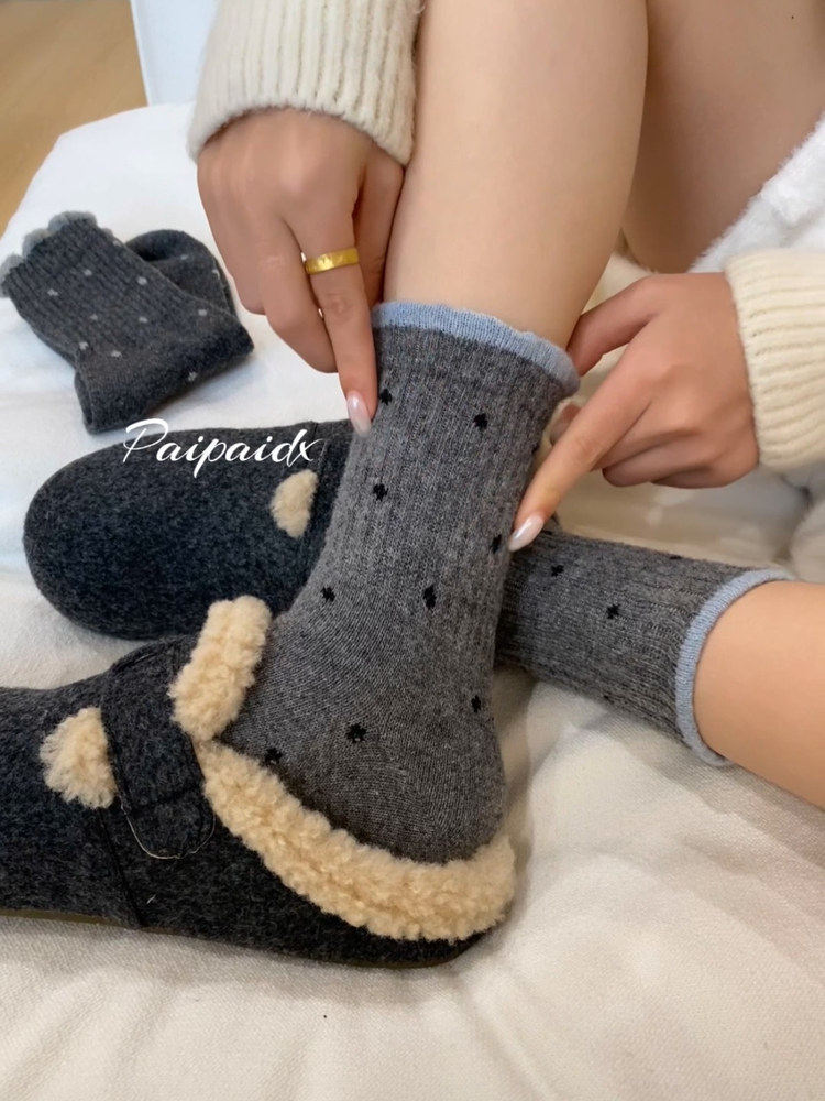 法式专柜厚袜子女款爆款冬季加厚绒保暖灰色中筒波点女士堆堆长袜