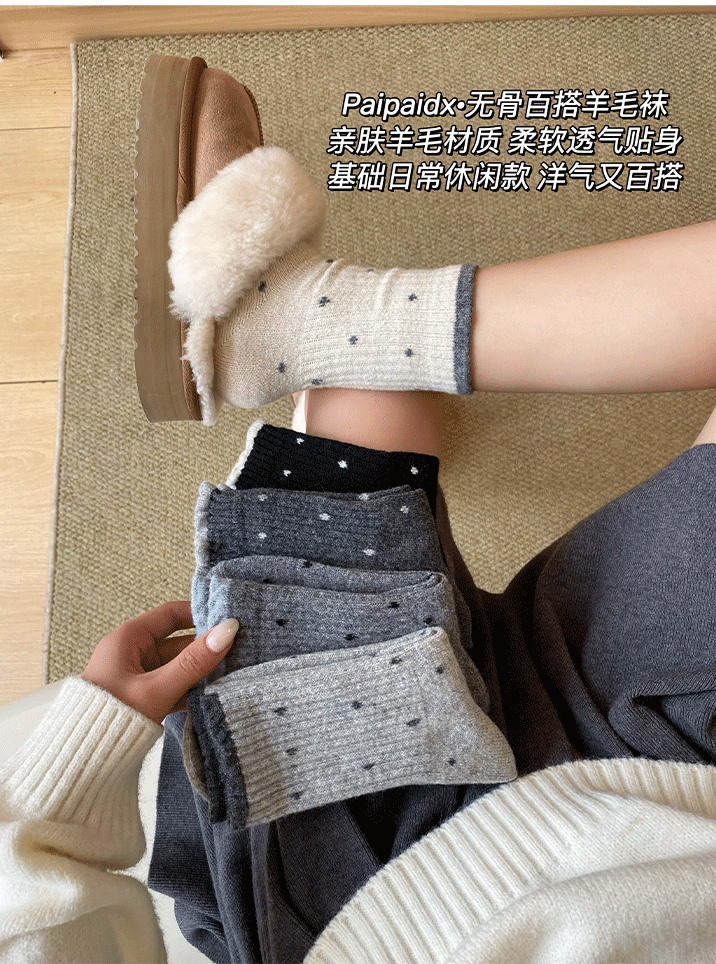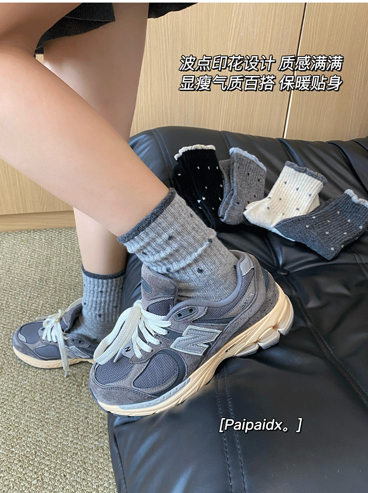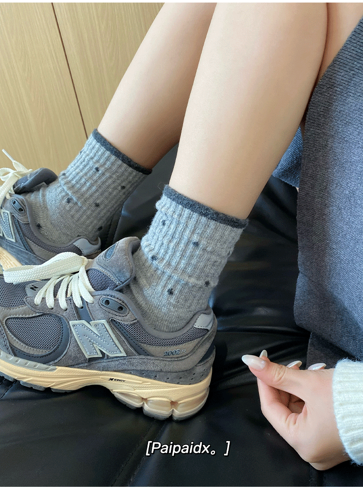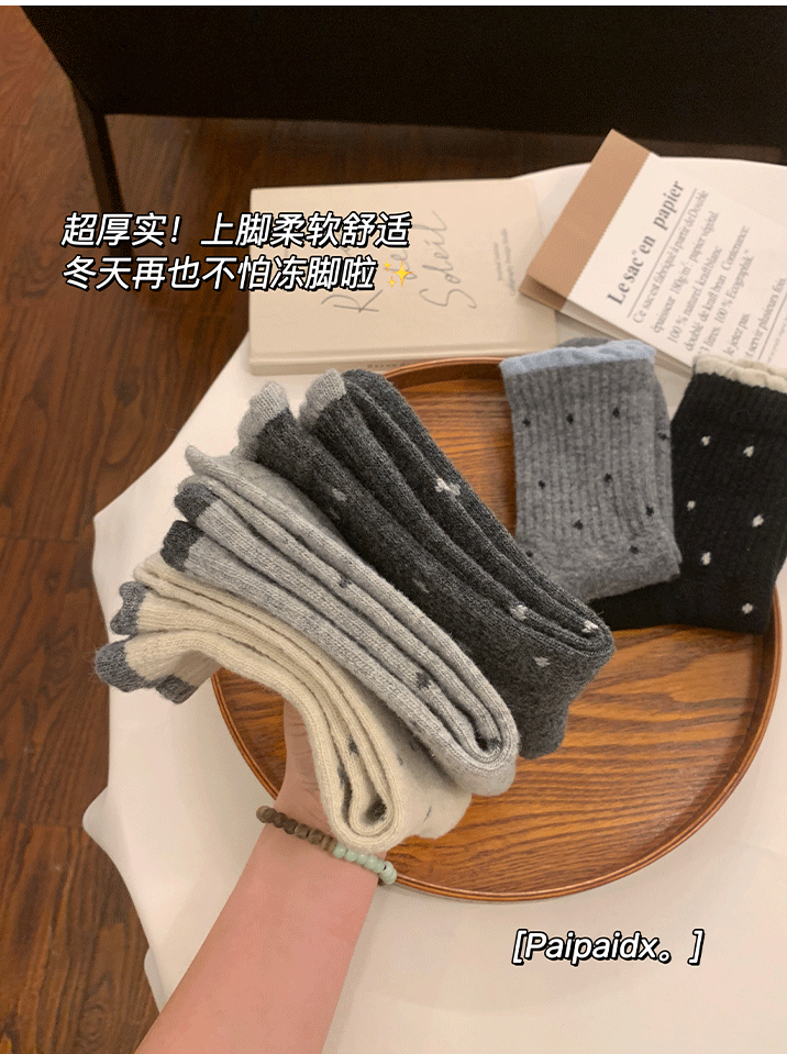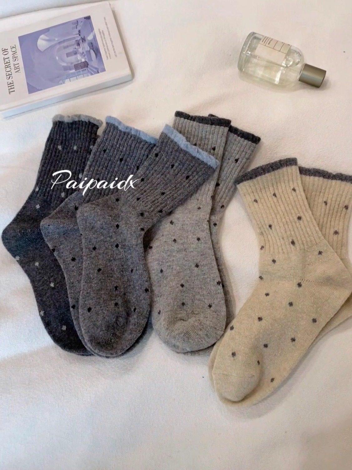 法式专柜厚袜子女款爆款冬季加厚绒保暖灰色中筒波点女士堆堆长袜