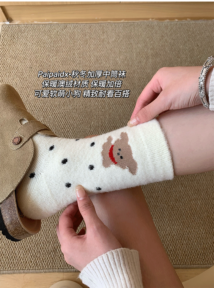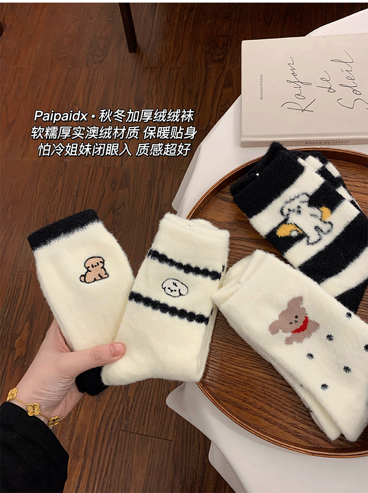 French-Style Boutique Thickened Warm Socks for Women, Autumn and Winter Hot-Selling Trendy Mid-Calf Long Socks