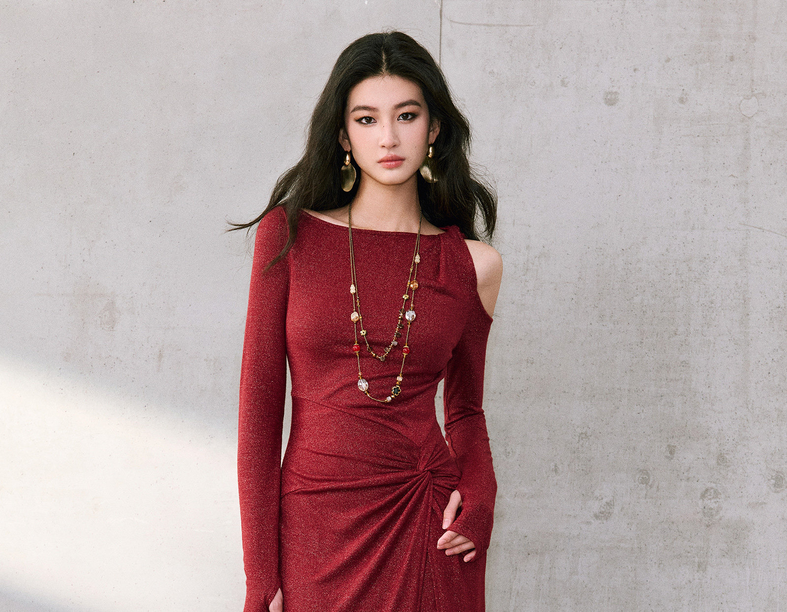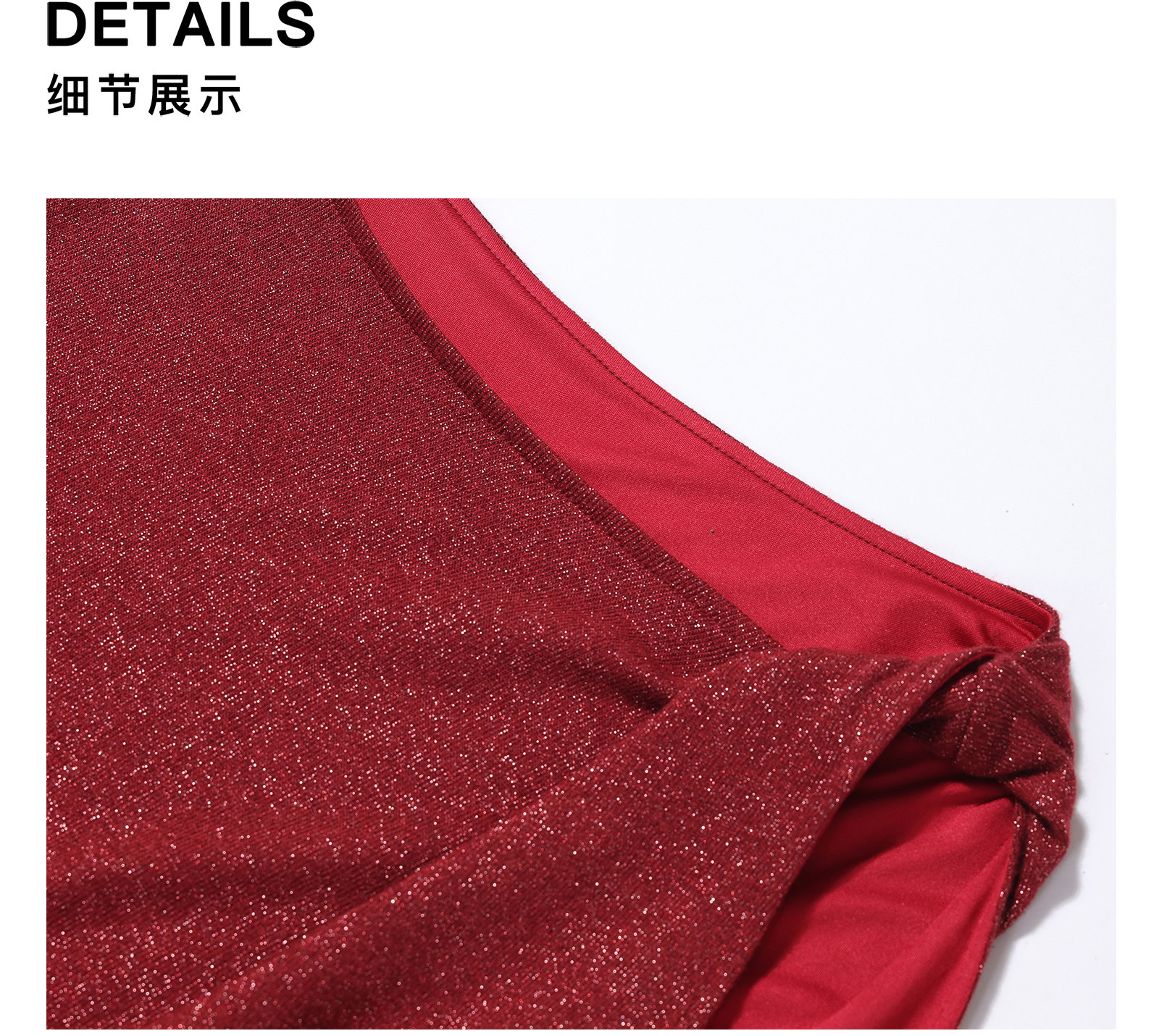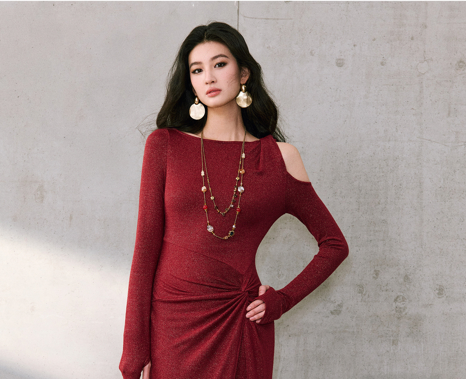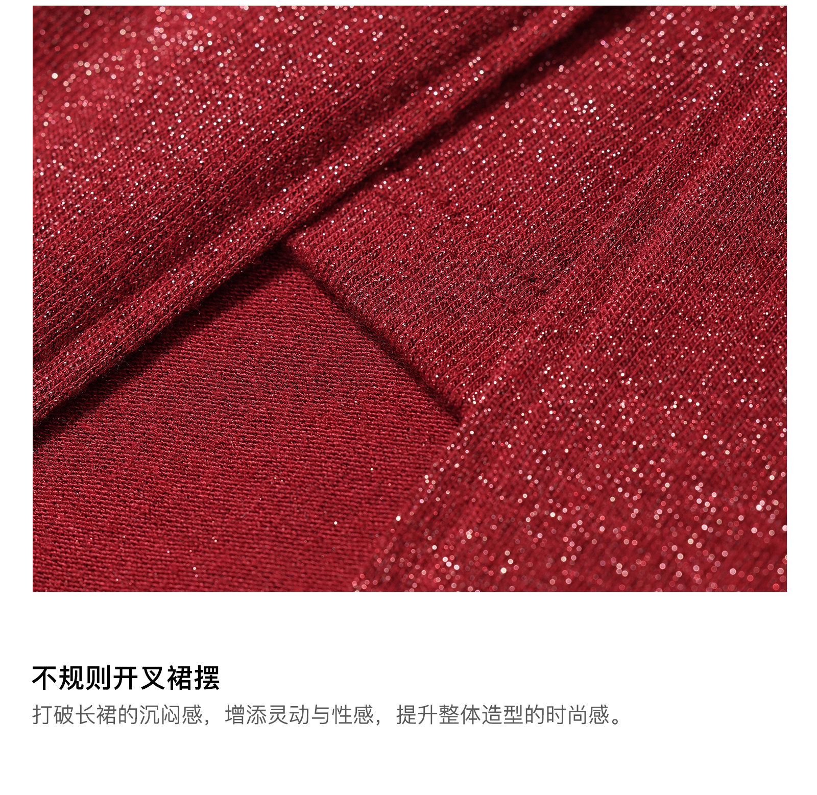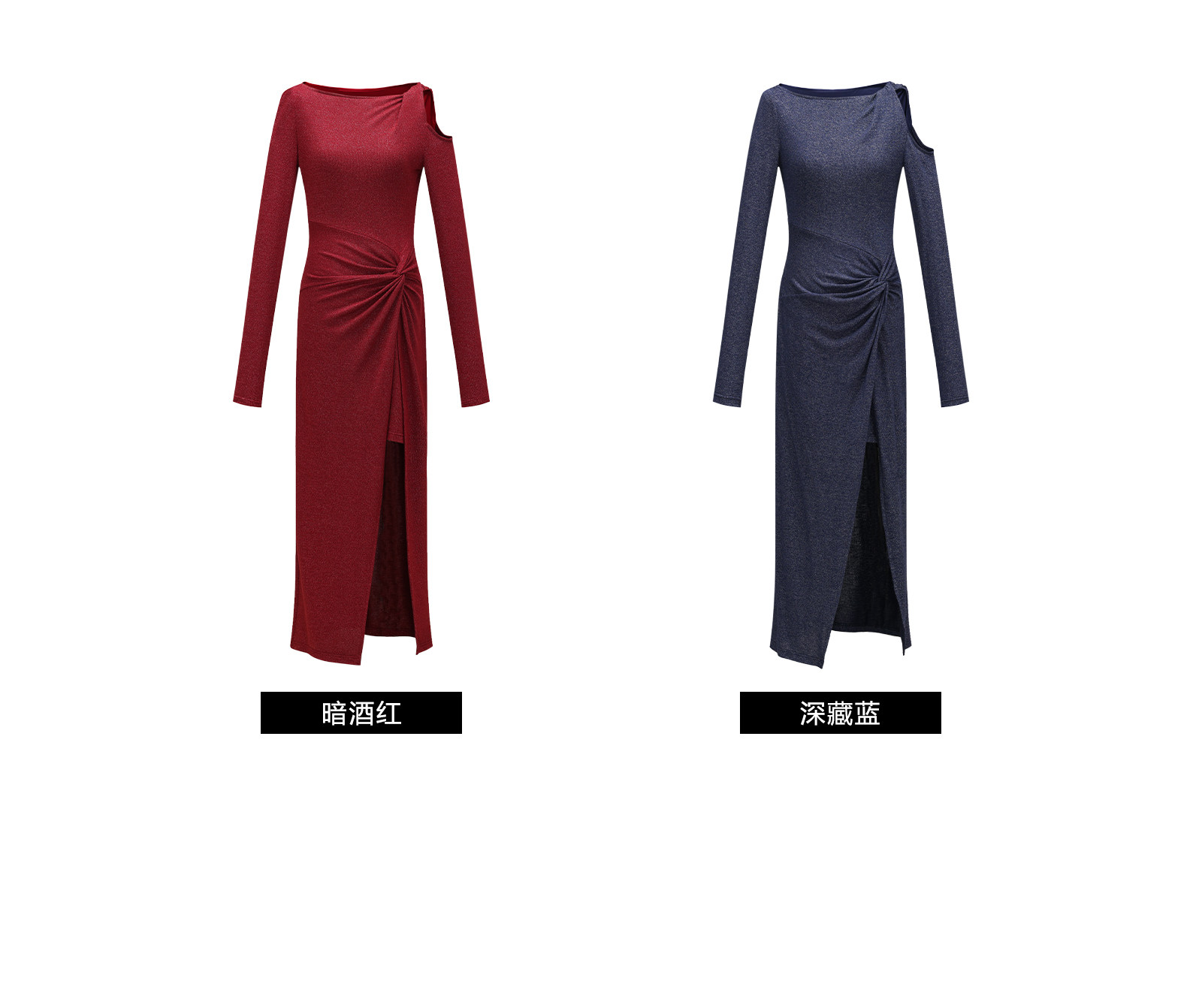 Wangxo[New Arrivals on 01/20 20:00Pm 5% off]Off-Shoulder Twisted Waist-Cinching Slit Dress with Shiny Threads