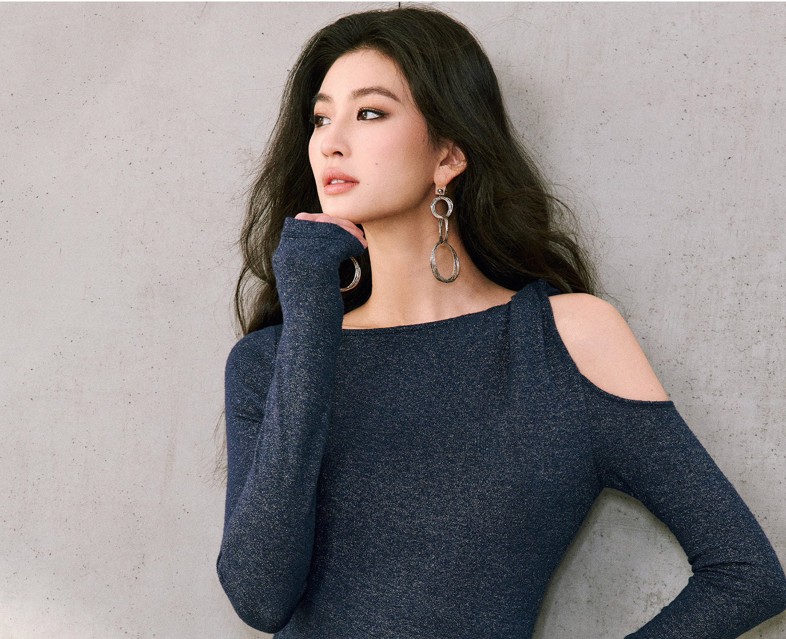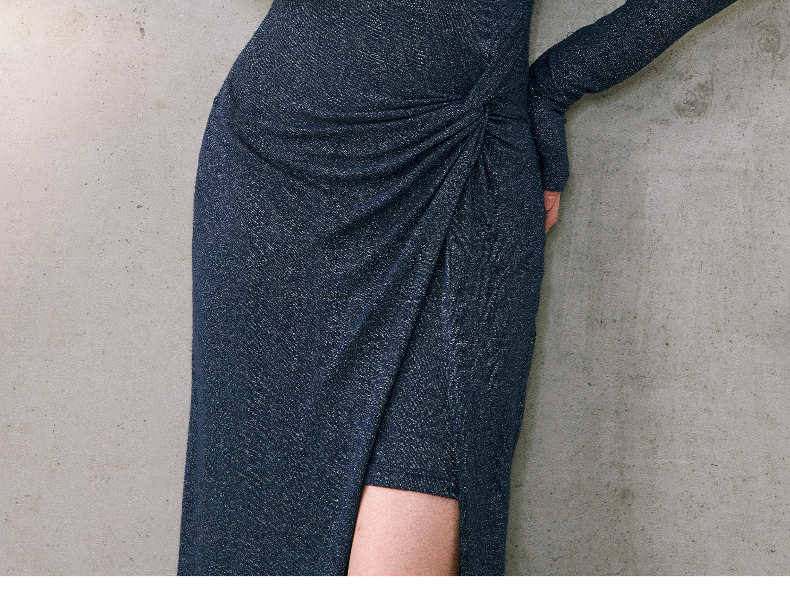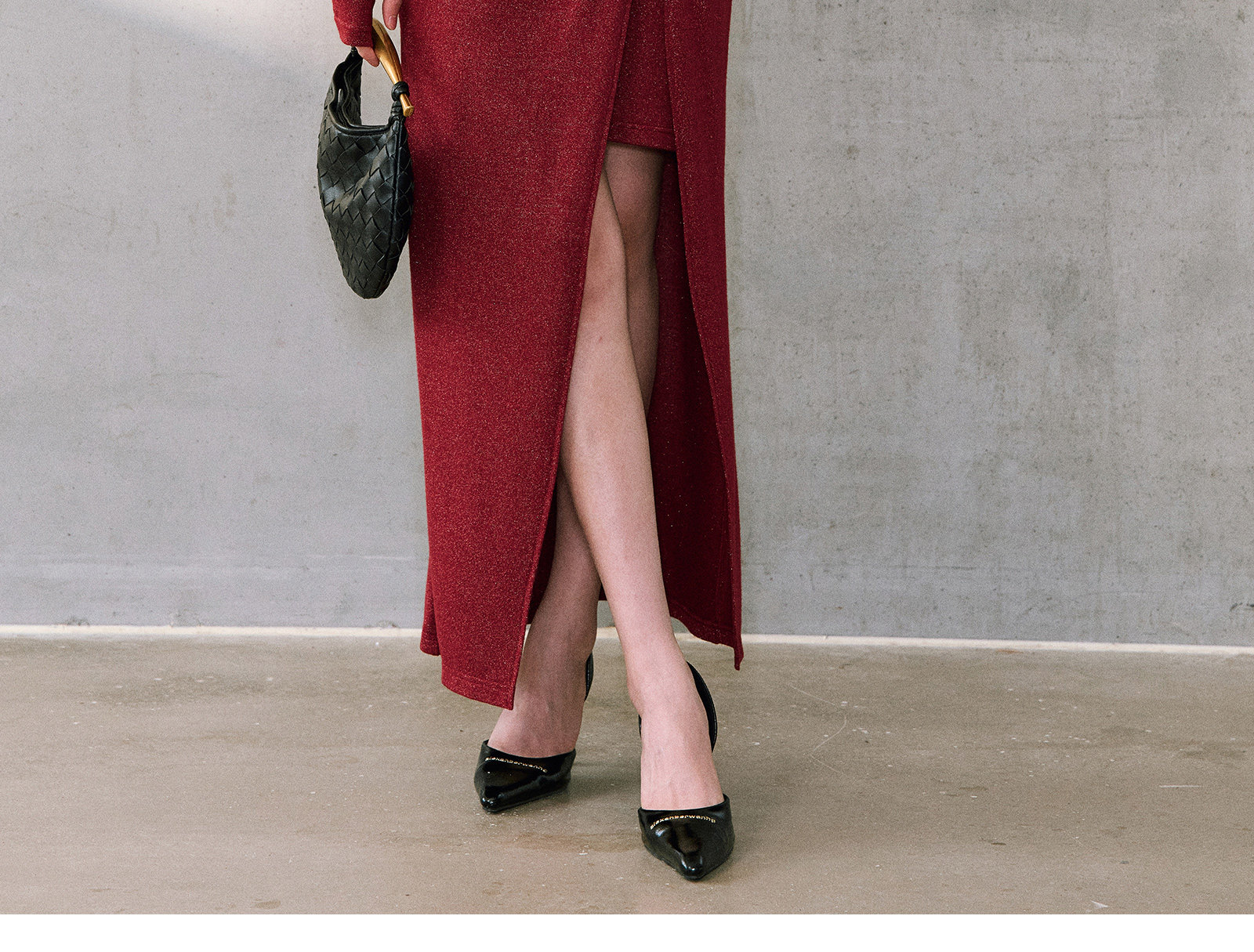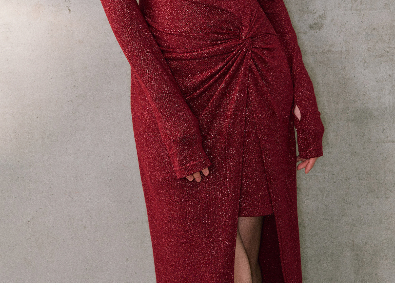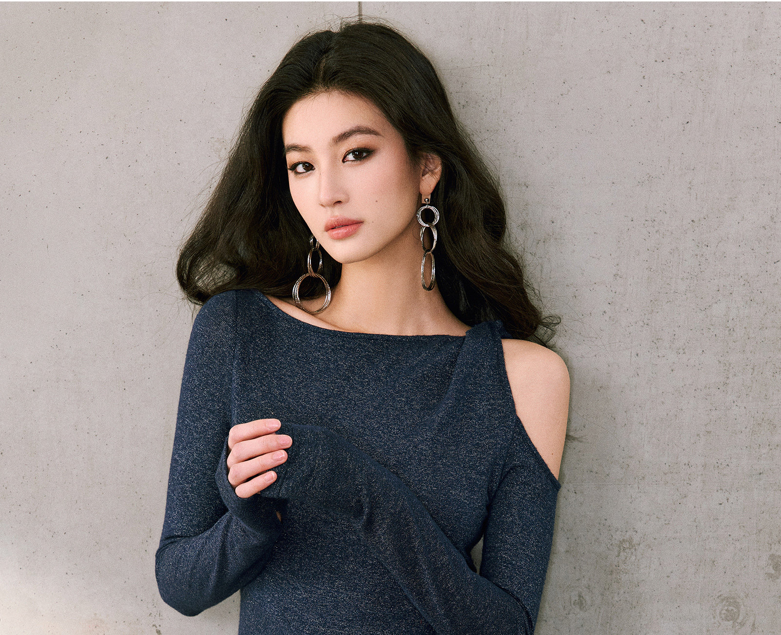 Wangxo[New Arrivals on 01/20 20:00Pm 5% off]Off-Shoulder Twisted Waist-Cinching Slit Dress with Shiny Threads