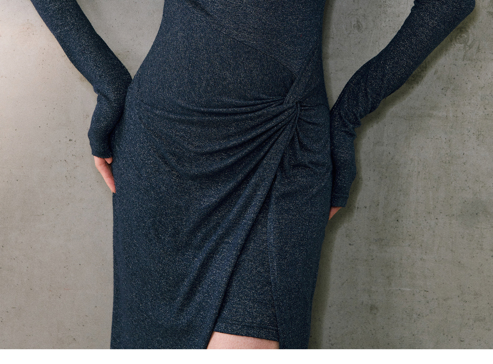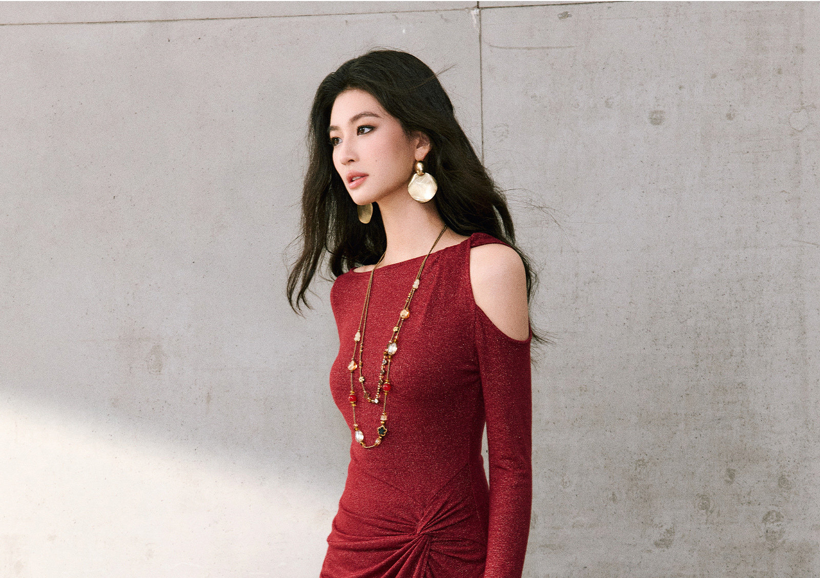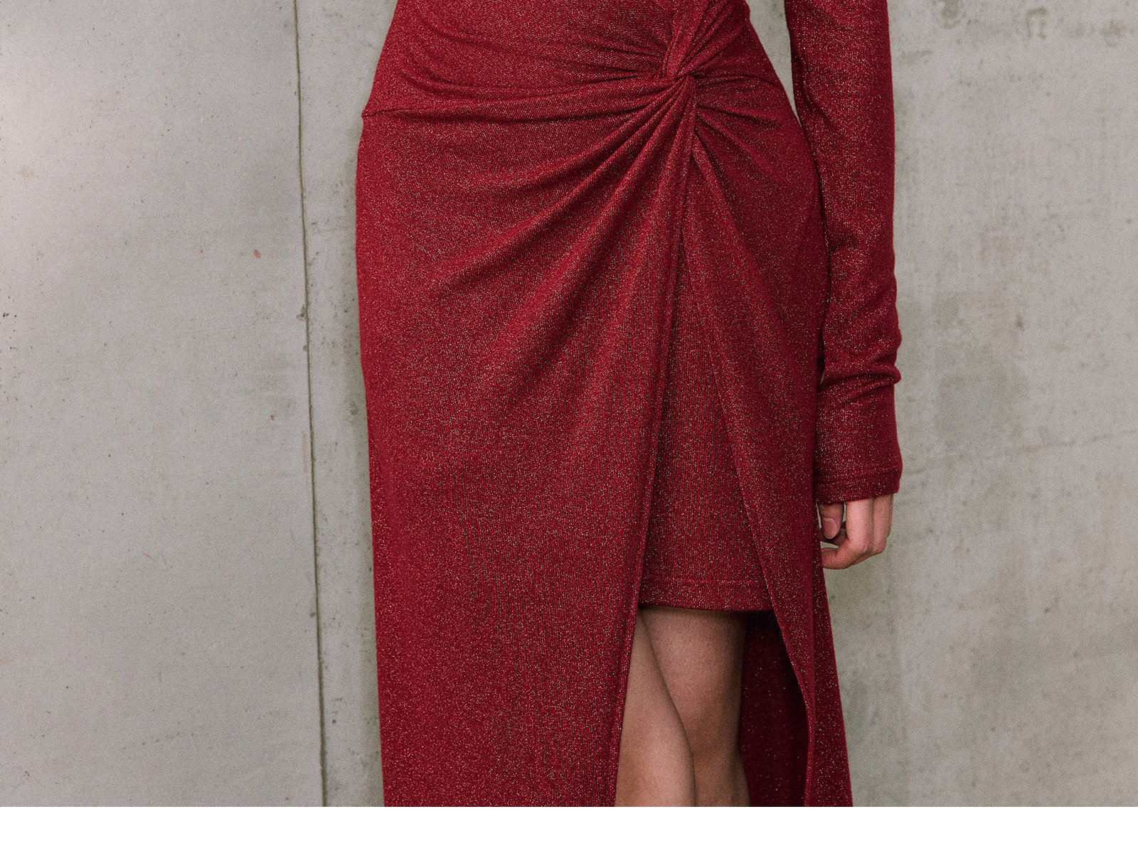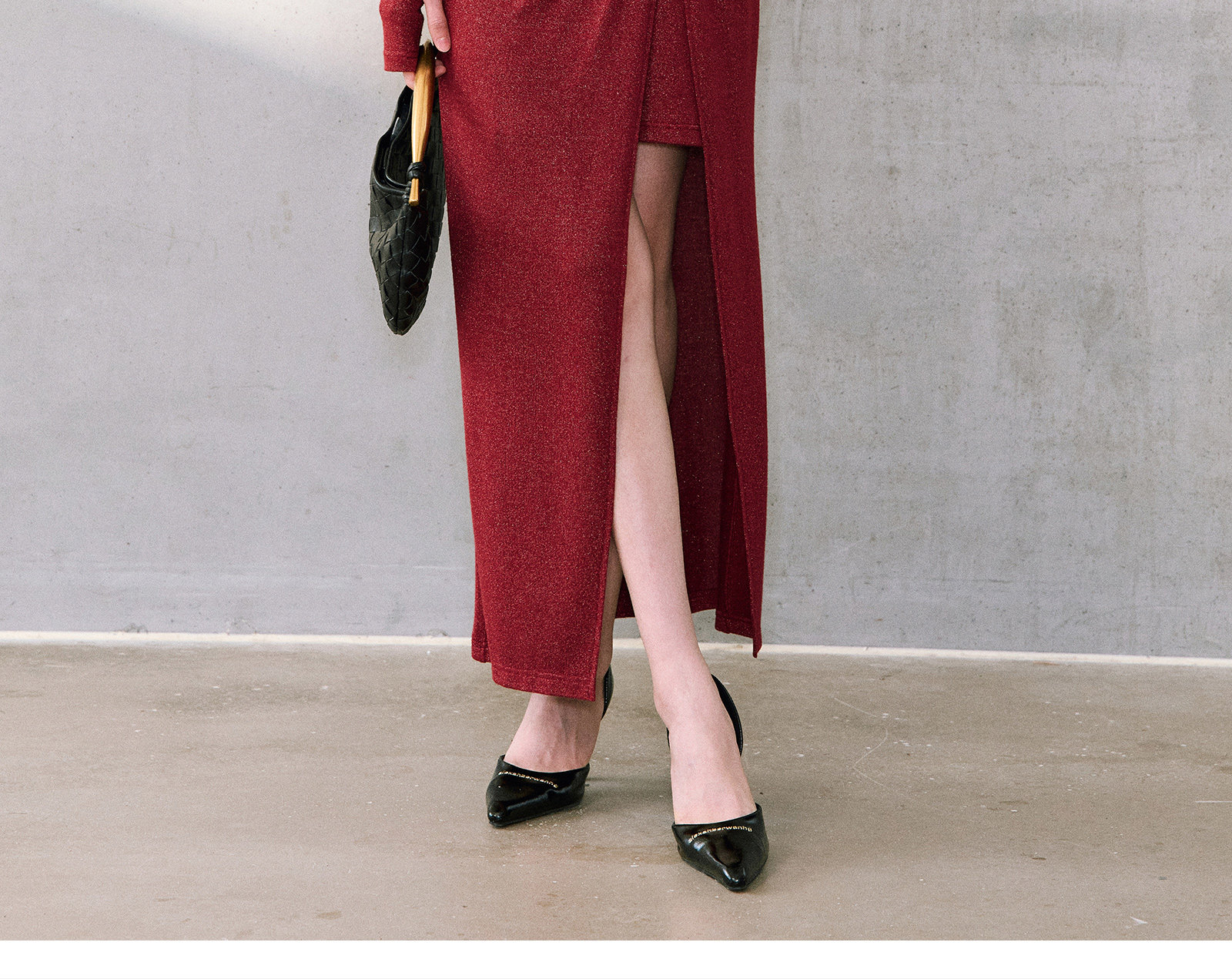 Wangxo[New Arrivals on 01/20 20:00Pm 5% off]Off-Shoulder Twisted Waist-Cinching Slit Dress with Shiny Threads