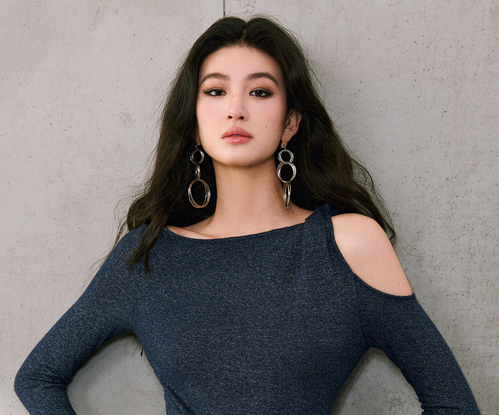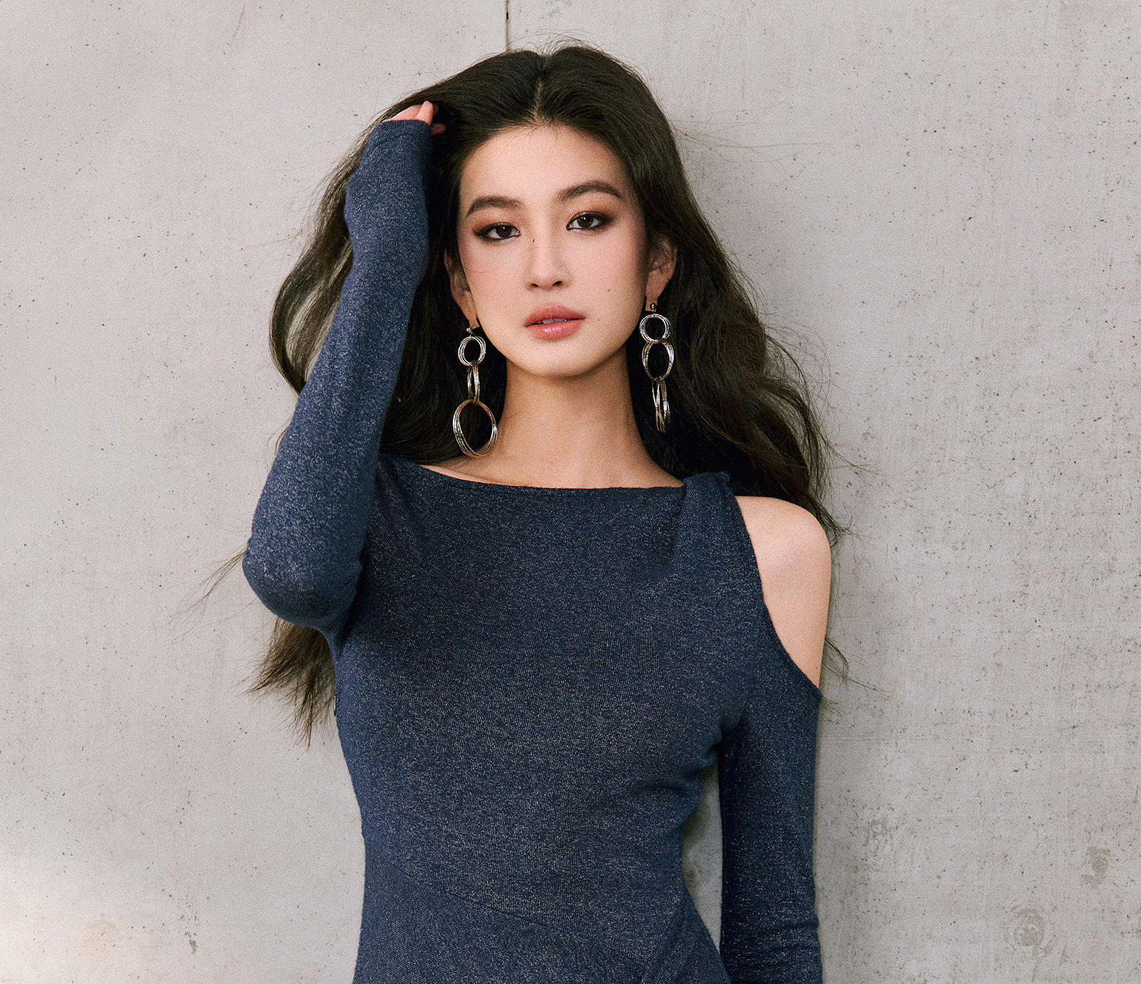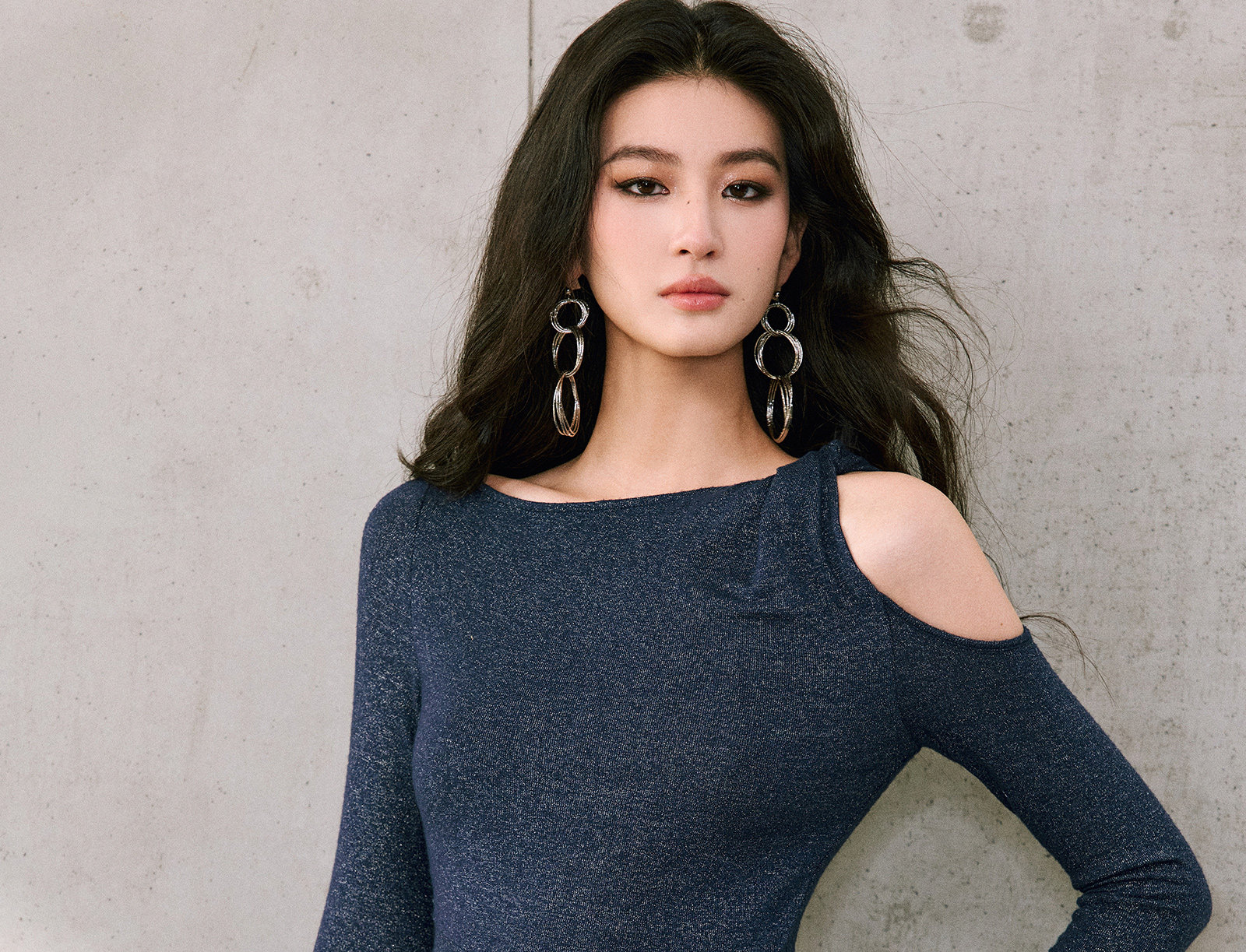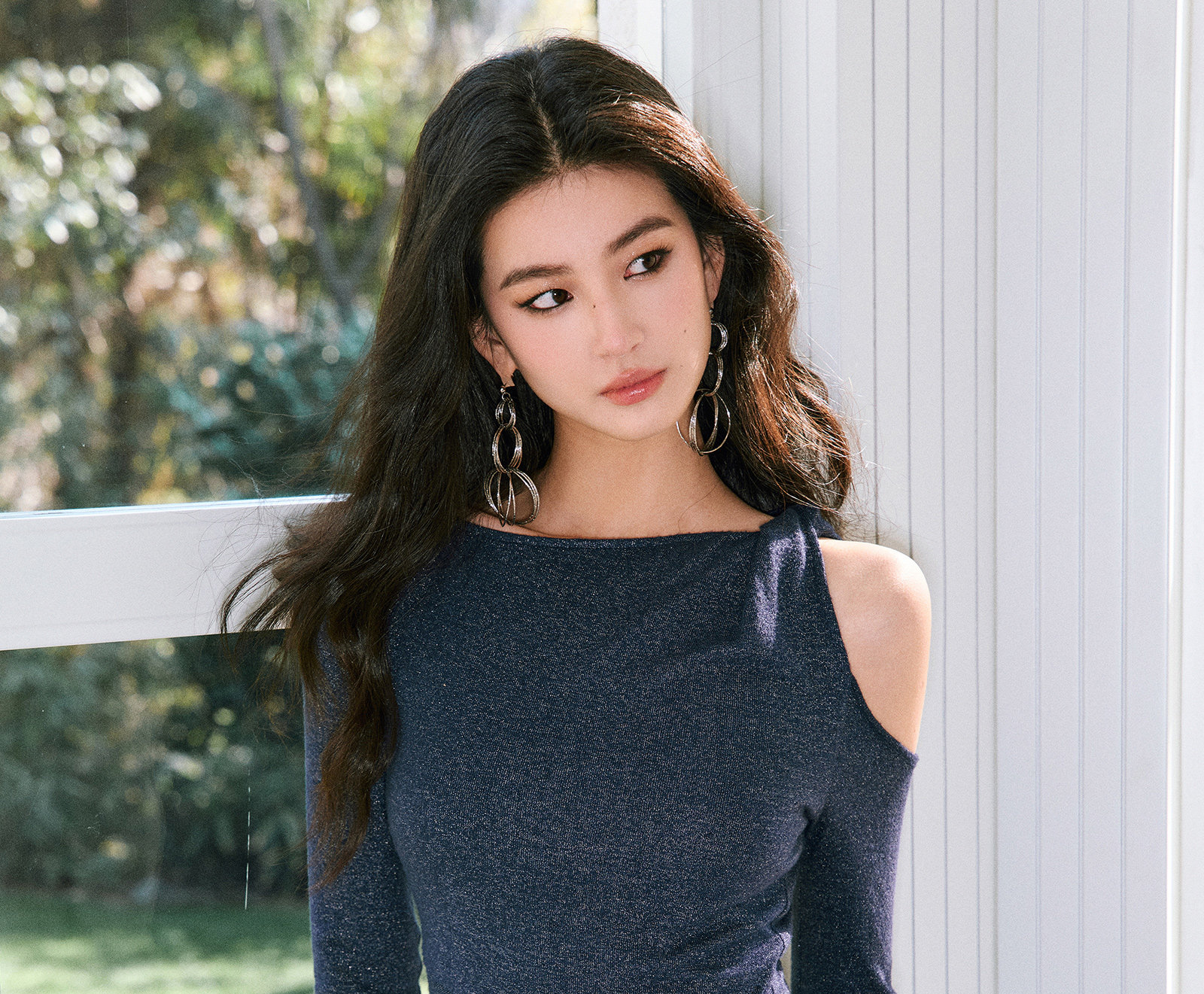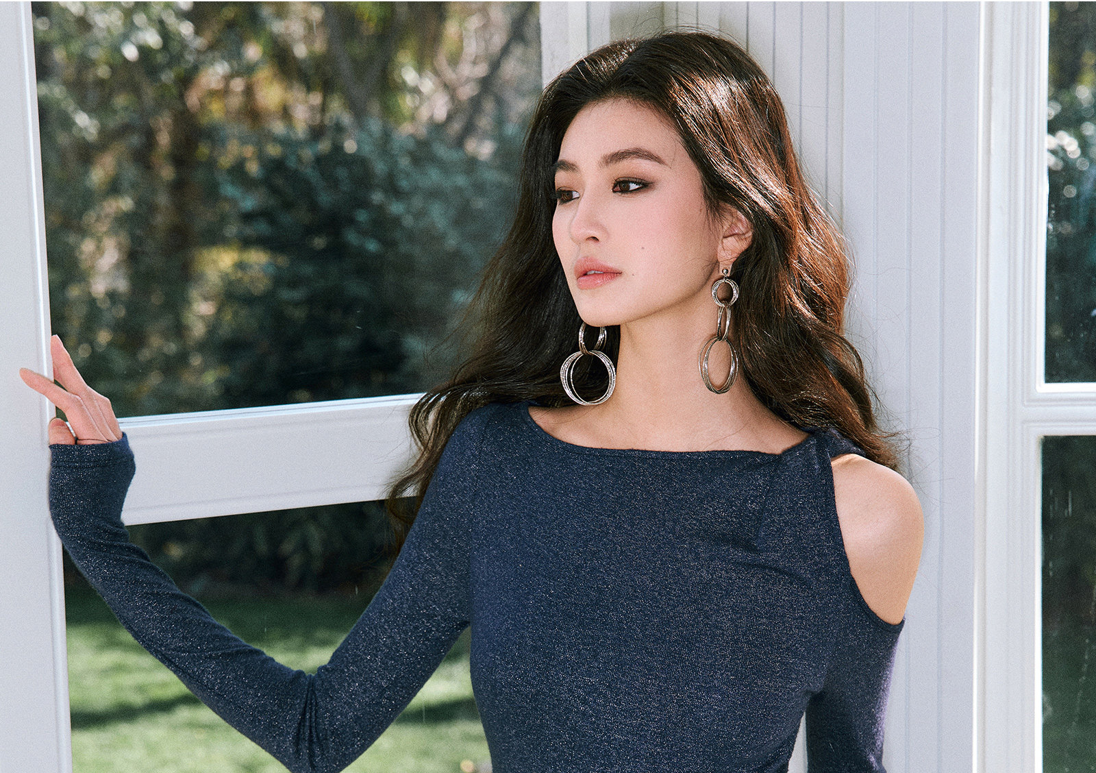 Wangxo[New Arrivals on 01/20 20:00Pm 5% off]Off-Shoulder Twisted Waist-Cinching Slit Dress with Shiny Threads