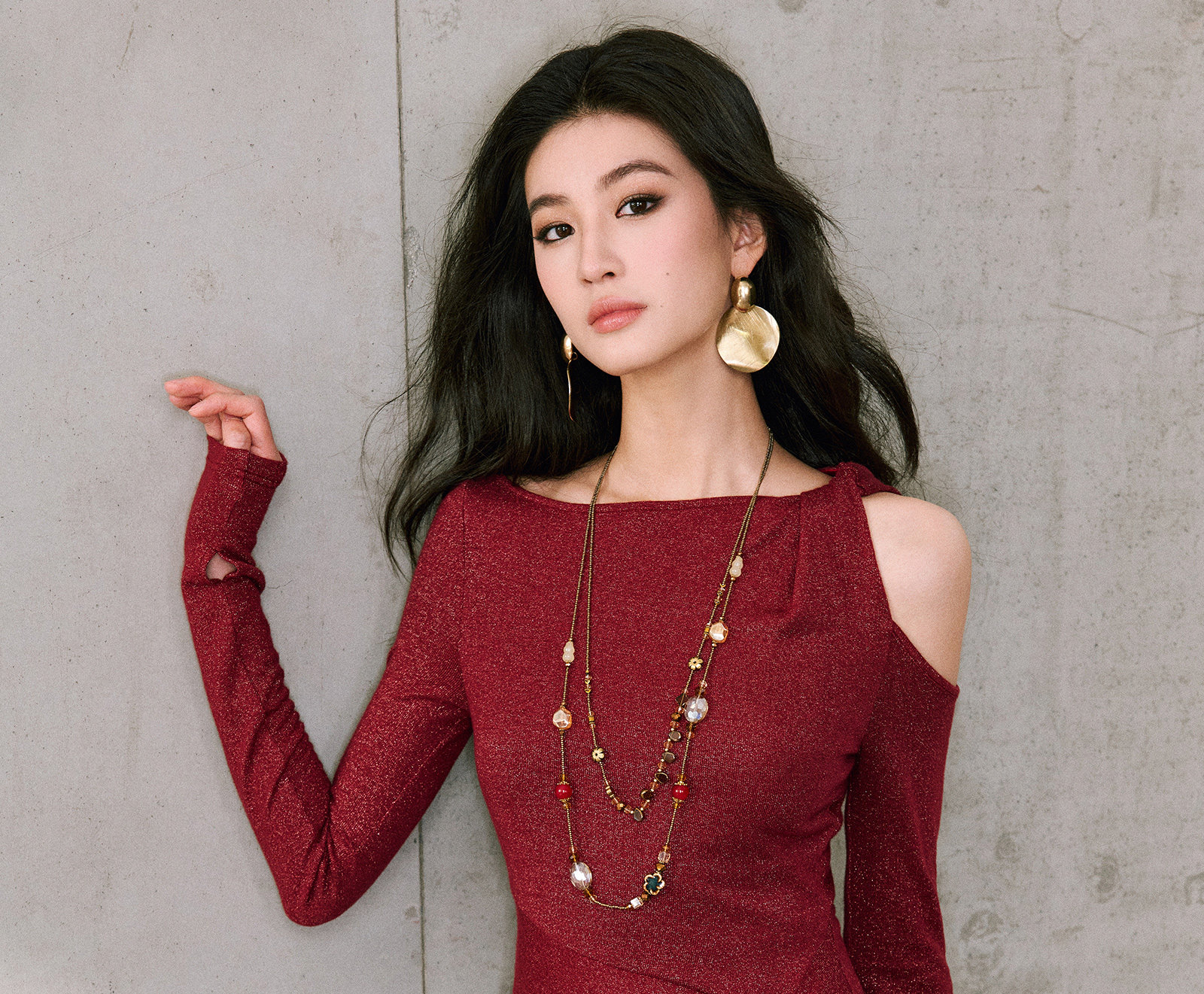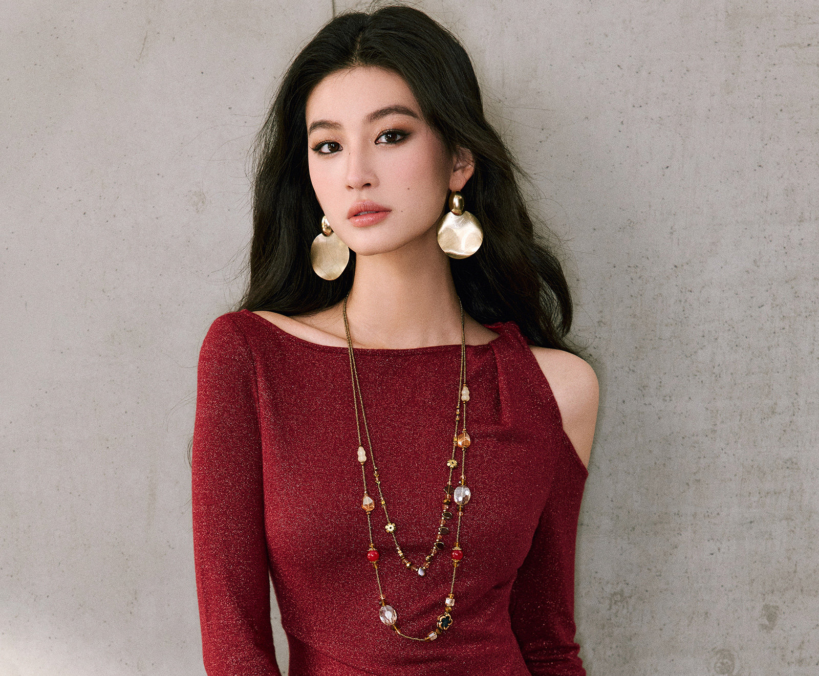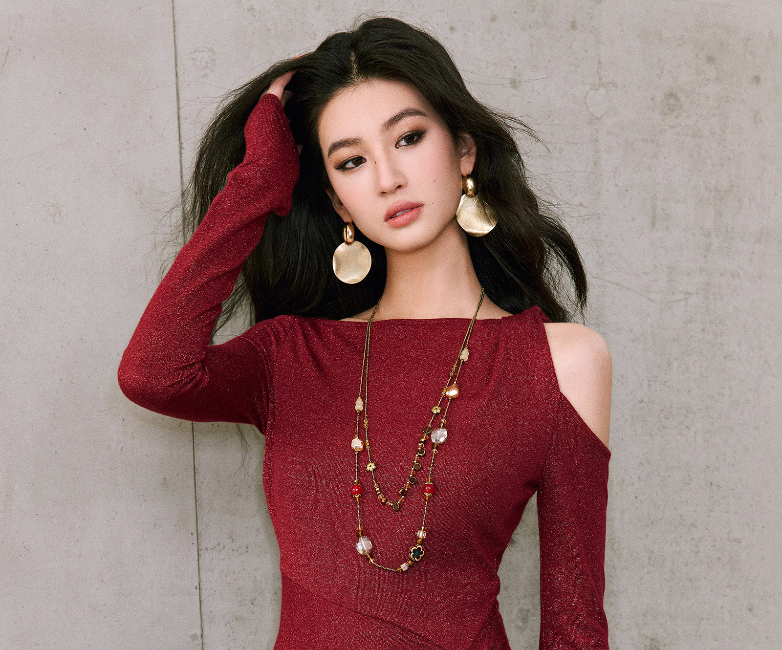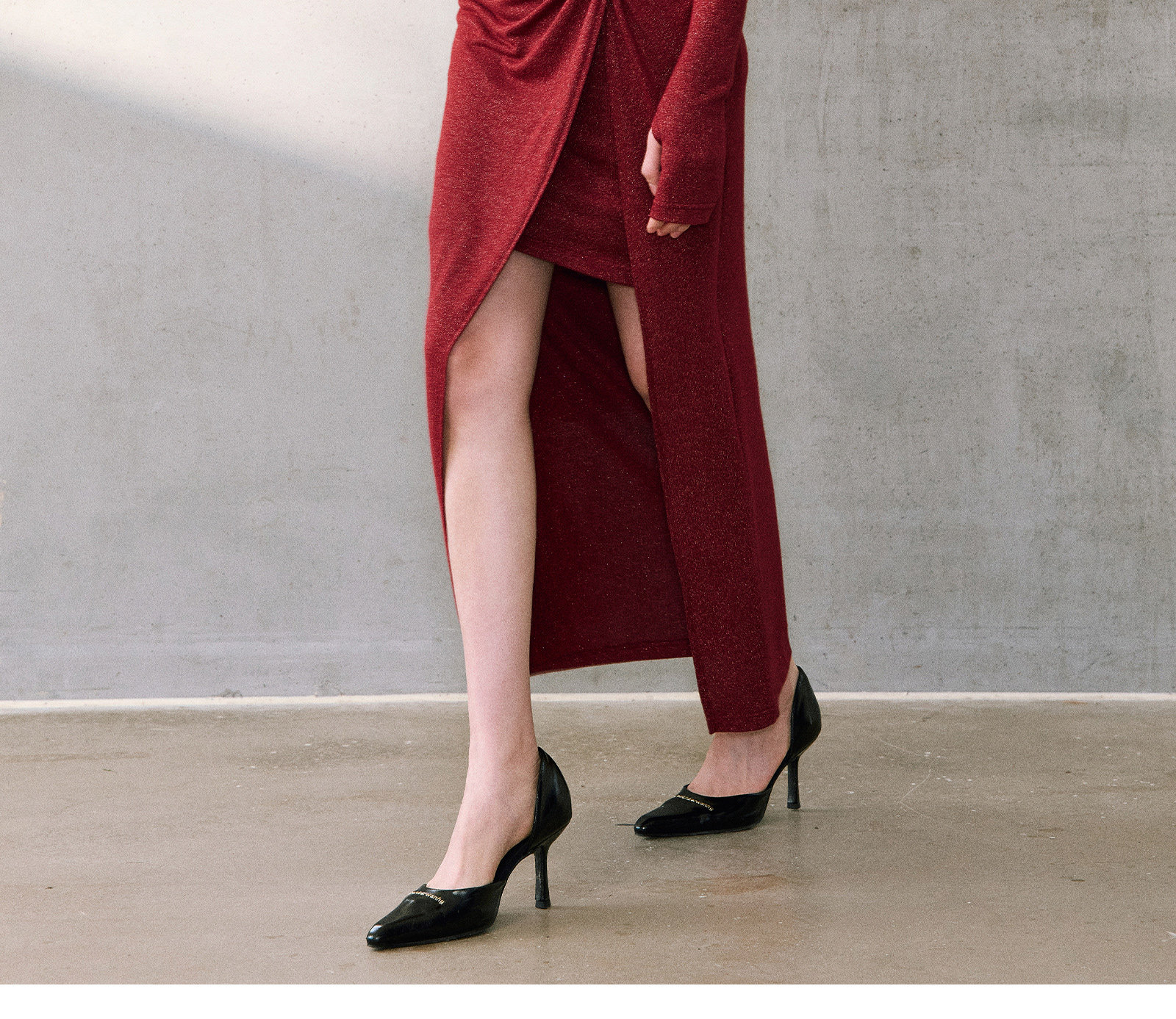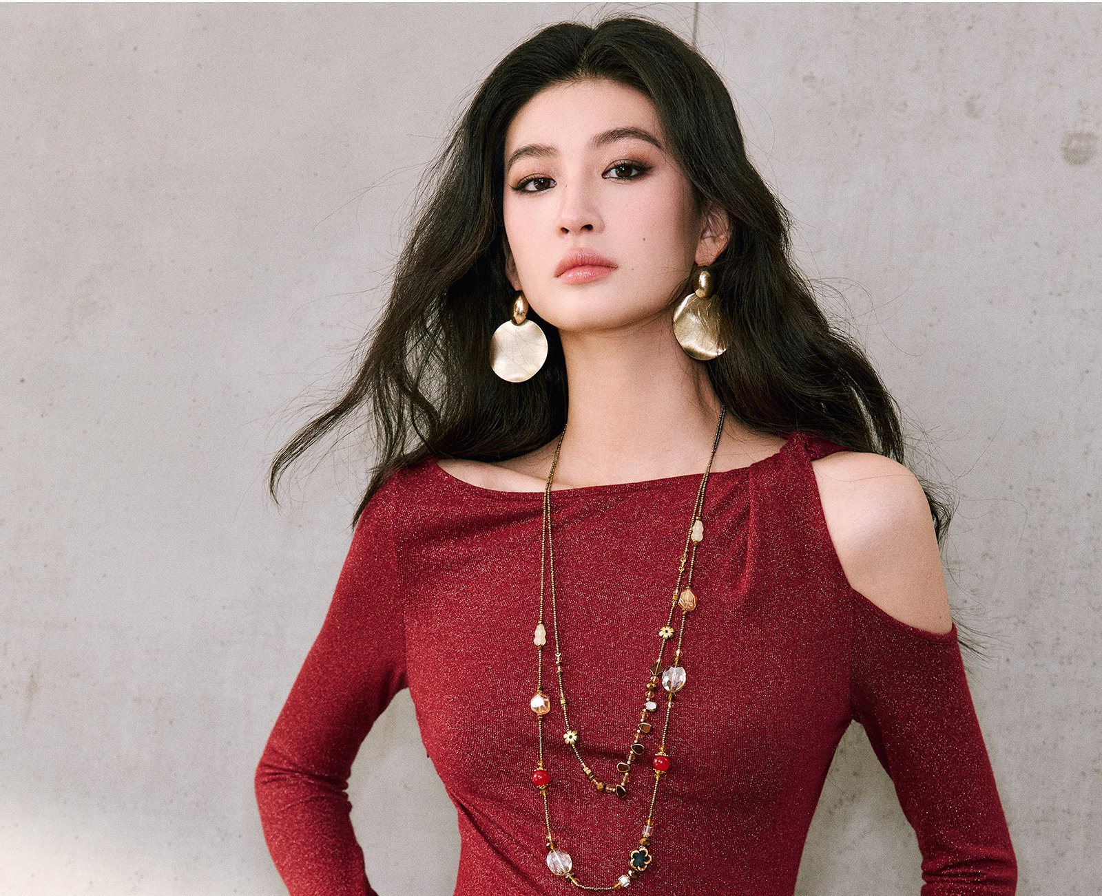 Wangxo[New Arrivals on 01/20 20:00Pm 5% off]Off-Shoulder Twisted Waist-Cinching Slit Dress with Shiny Threads