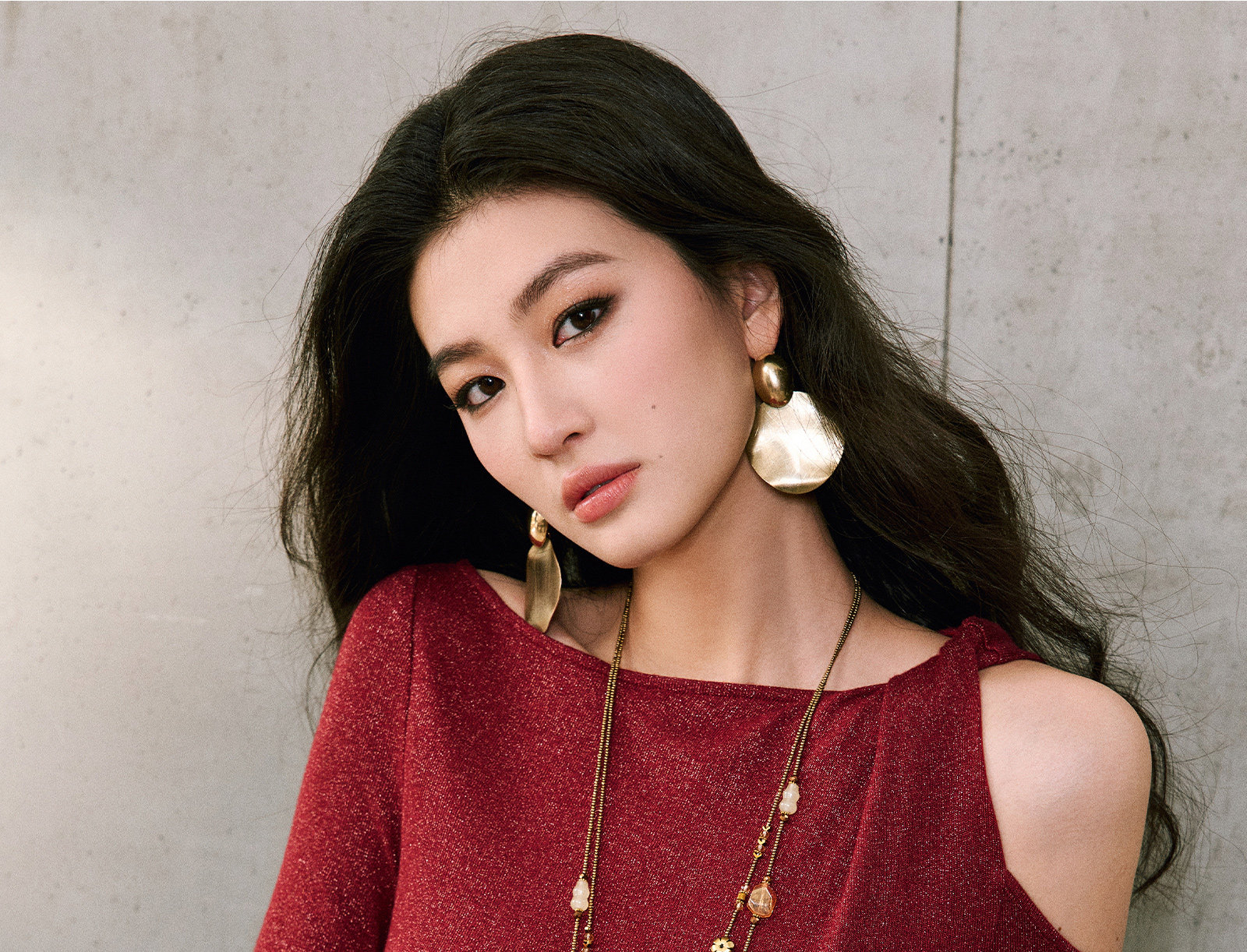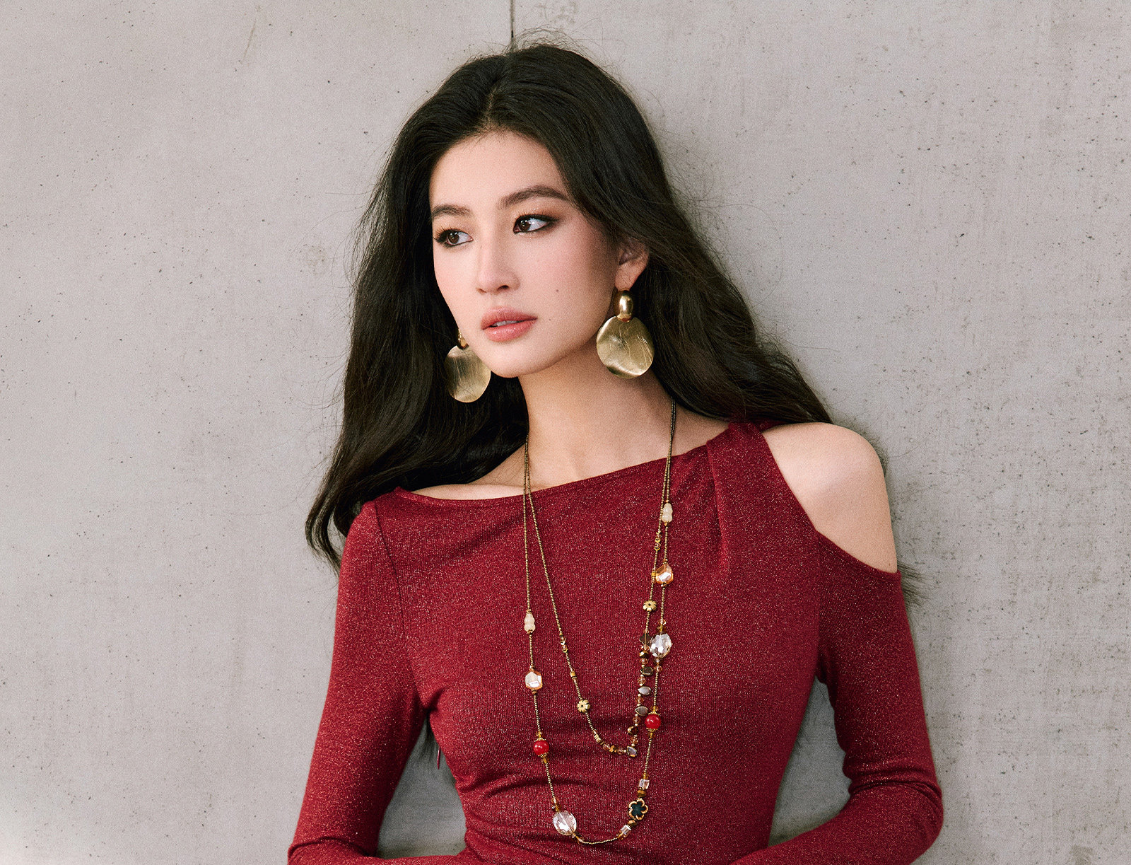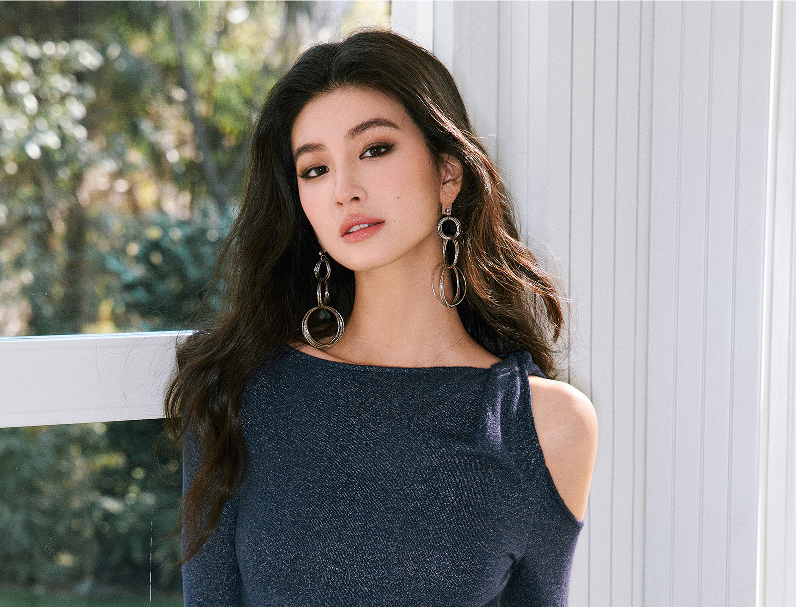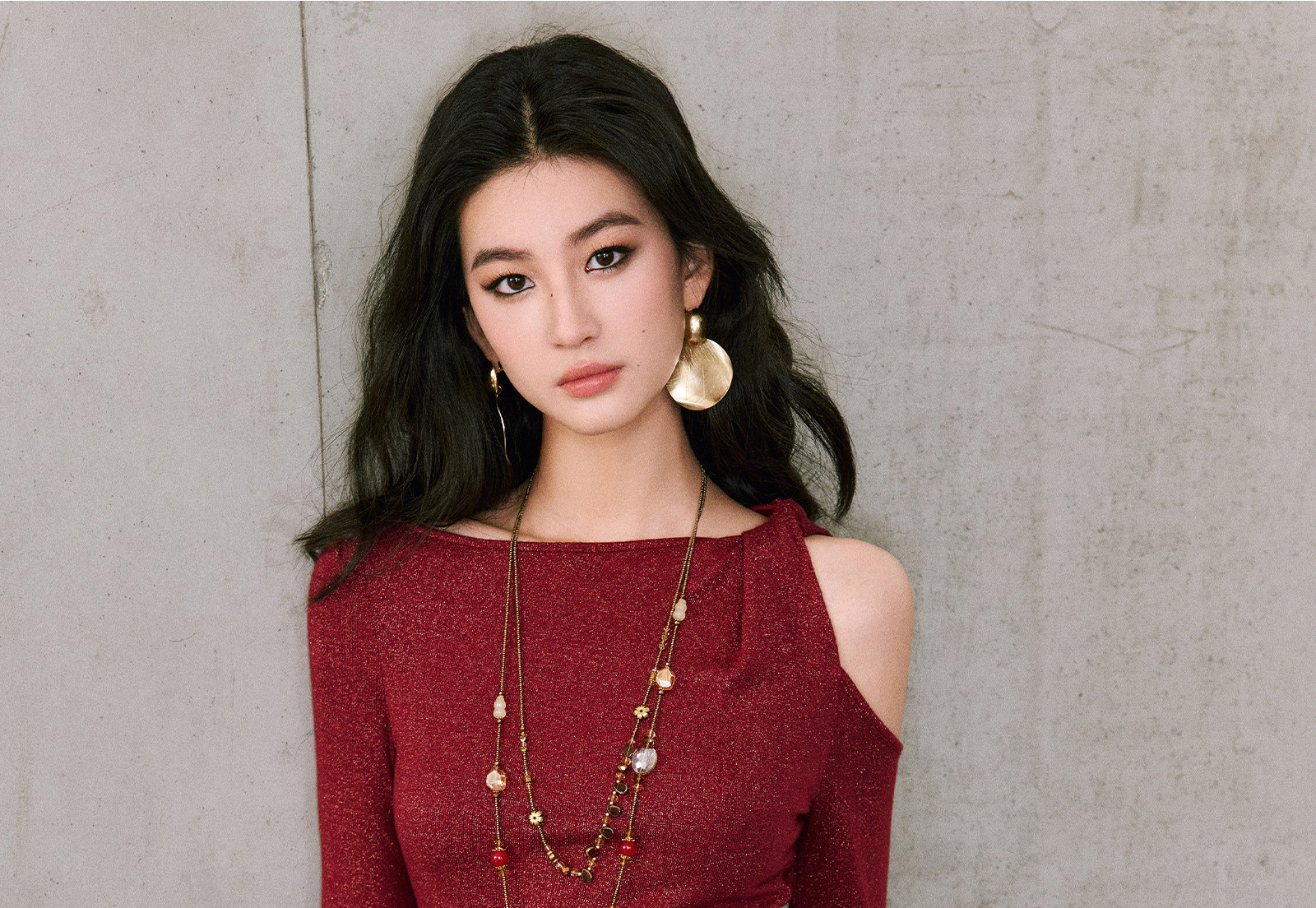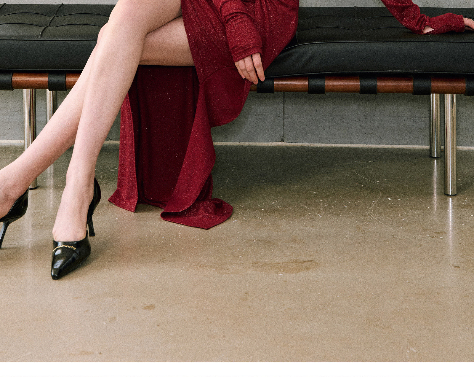 Wangxo[New Arrivals on 01/20 20:00Pm 5% off]Off-Shoulder Twisted Waist-Cinching Slit Dress with Shiny Threads