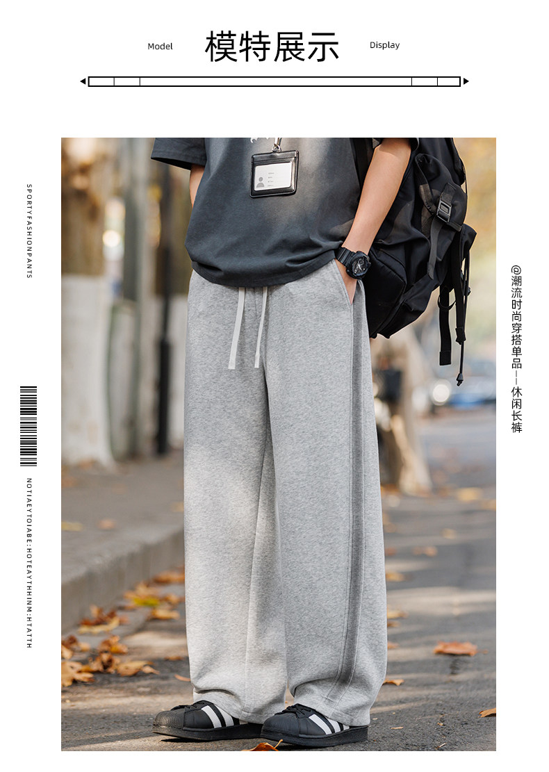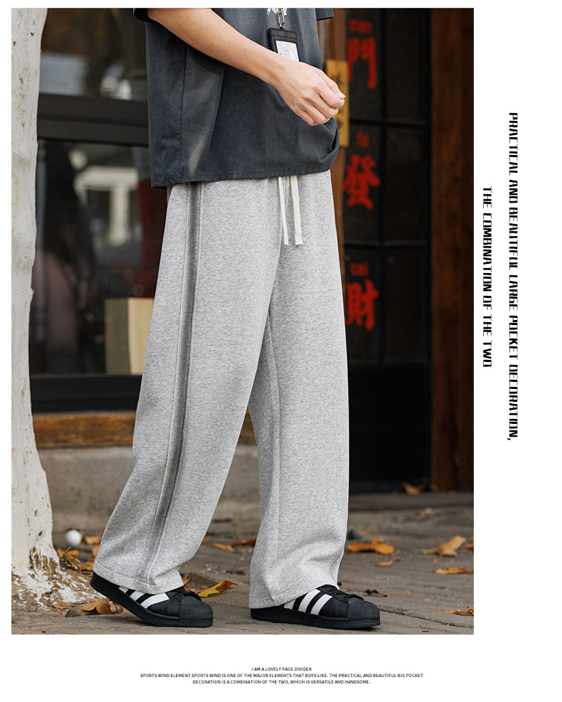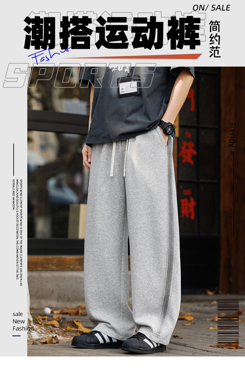 Wassup Dozen Trendy Brand 2026 New Model Curved Hem Sweatpants Unisex Loose Straight Drawstring Casual Pants for Men