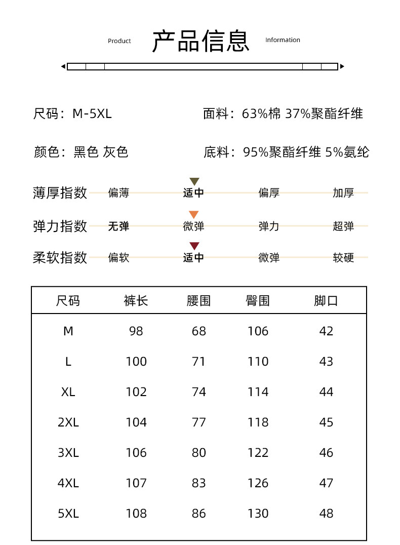 Outseam (cm) 99 cm 101.5 cm 104 cm 106.5 cm 109 cm