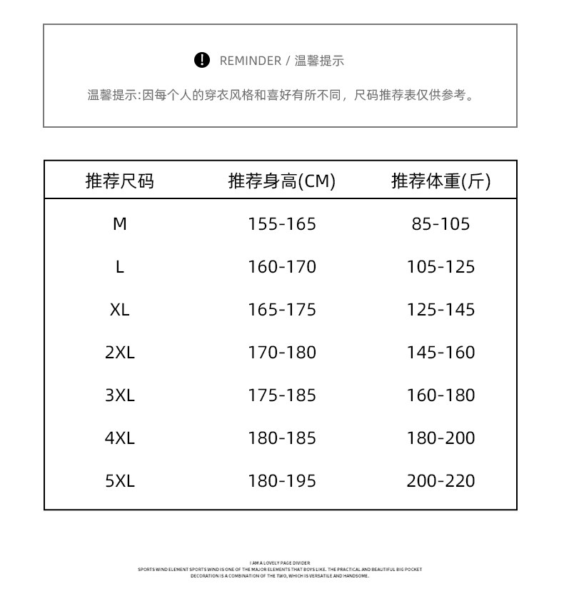 China (cm) 165 / 88-90 170 / 96-98 175 / 108-110 180 / 118-122 185 / 126-130